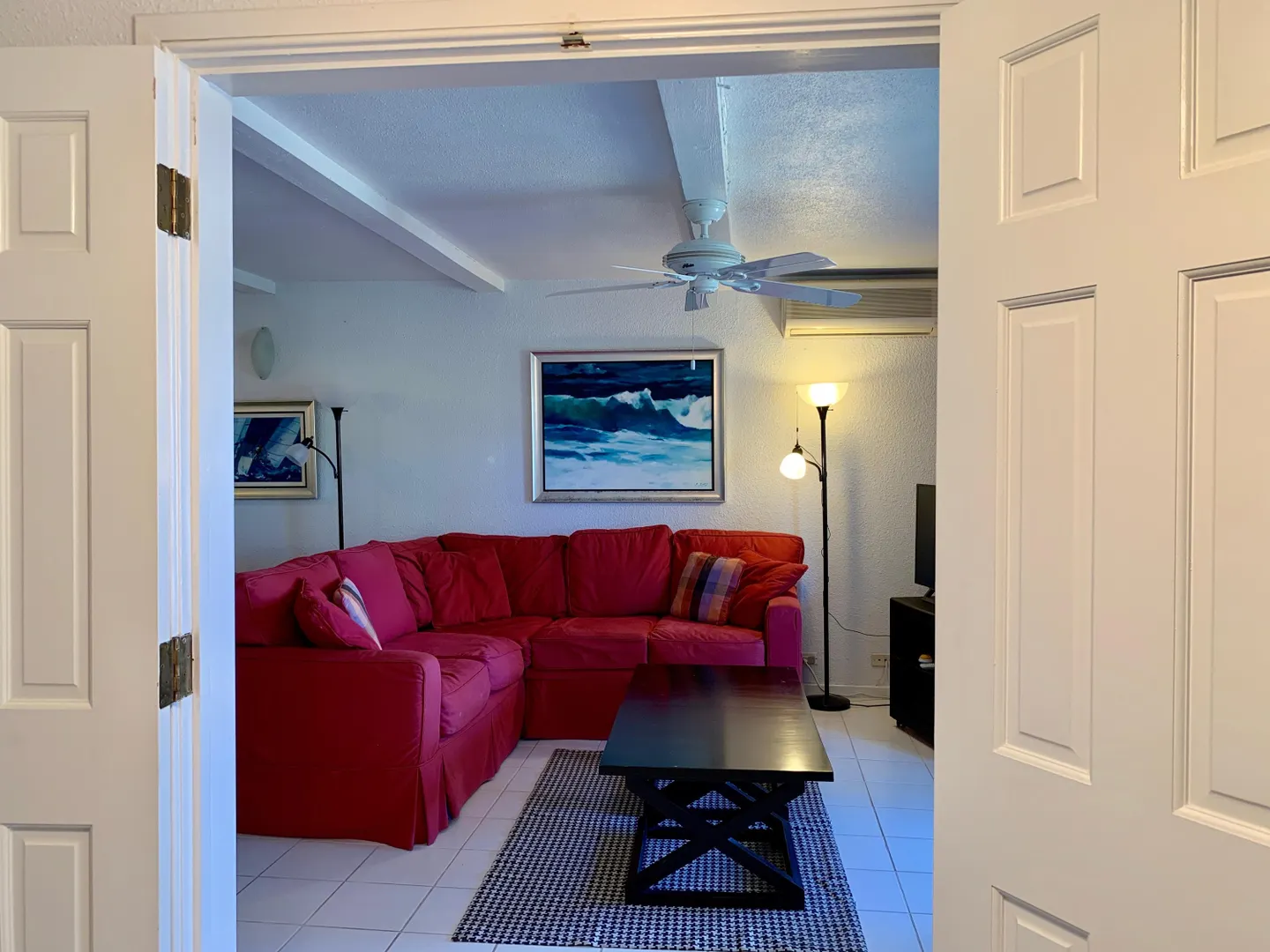 Beachy & Fresh. No better way to describe this delightful 2/2 waterfront condo with a Caribbean resort view - palms, umbrellas and the ocean in the distance. Located on the Windward tier of CBWest, you are just steps from the beach. The interior is done in a white, beachy decor, featuring a modernized kitchen and master bath. Split ACs to keep you cool when the breeze isn't calling you to the shore beyond. Minutes from restaurants, the Ritz, a ferry to St John, and the many other amenities of Red Hook. Gated community. Generator powers the complex when necessary. Hurricane shutters in place.