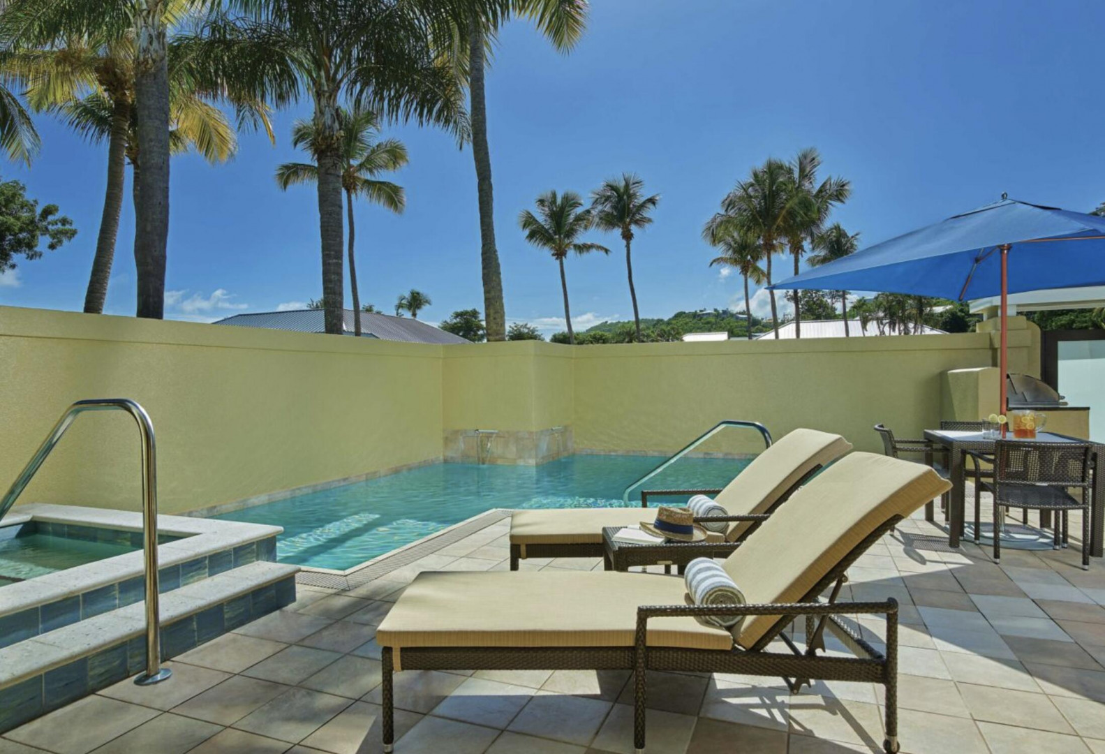 Memorial day at the Westin STJ with private pool! Located in the highly sought Virgin Grande Villas section of the Westin, the professionally landscaped courtyard and private pool highlight the comfort and privacy provided. This 3 bed/3bath pool villa is furnished with Westin Heavenly Beds, full kitchen, and all the added amenities the Westin provides: common pools, hot tubs, beach, tennis & pickleball courts, health club, restaurants, ferry transportation and maid service. Annual condo fee includes: Maintenance Fee, Replacement Fee, & SNV Dues. **Photo may not be of actual unit.