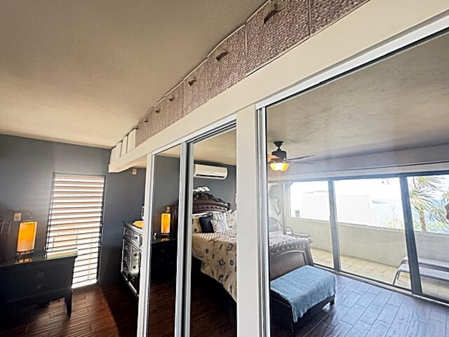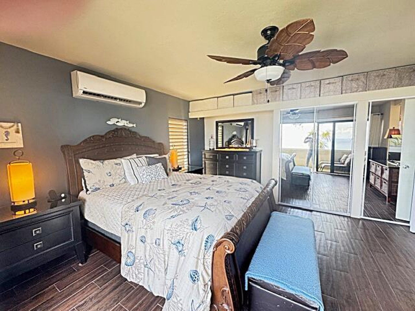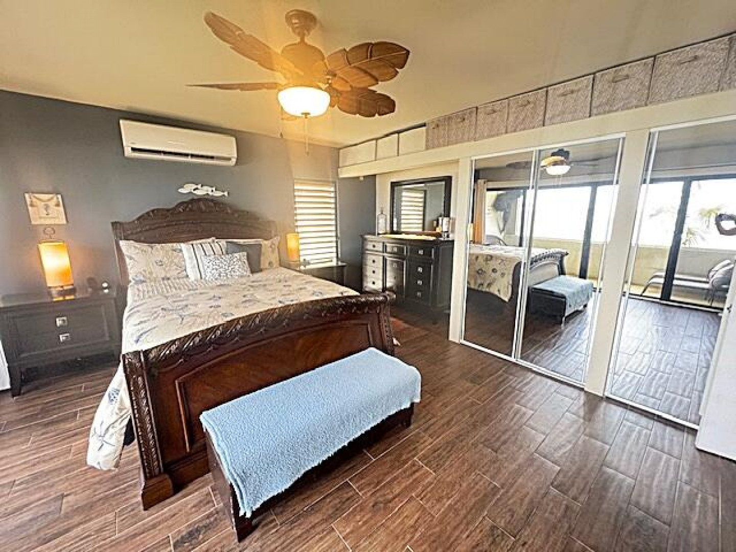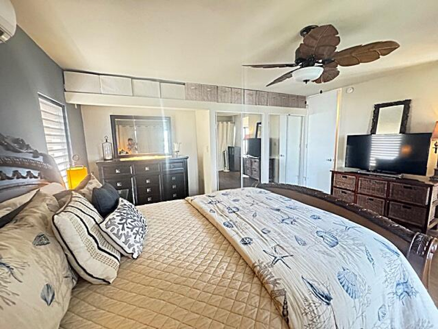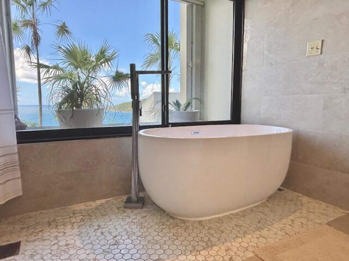 Located in Mahogany Run, one of the island's premier gated residential communities, this spacious one-bedroom condo offers panoramic ocean views and beautiful sunsets. The main patio is 32 feet in length and the bedroom has its own patio. It comes fully furnished and a kitchen with granite counter tops equipped with all appliances. The bedroom has a generous amount of closet and storage space and the beautifully remodeled bathroom is filled with light from large windows that enjoy the same ocean views. It comes with a Delta Pro Ultra Eco-Flow backup generator. Mahogany Run has a large pool and services include the security gate, trash pickup and exterminating. It's conveniently located for the east end or town and a five minute drive to St. Thomas's iconic Magens Bay Beach.The Sellers have been told by M Run COA they are on the list for new windows and sliding glass doors in 2026. The Sellers have no control over when this will be done.