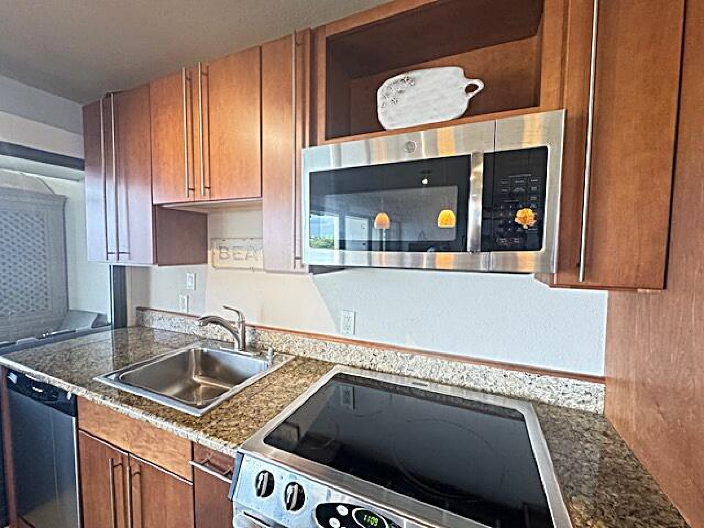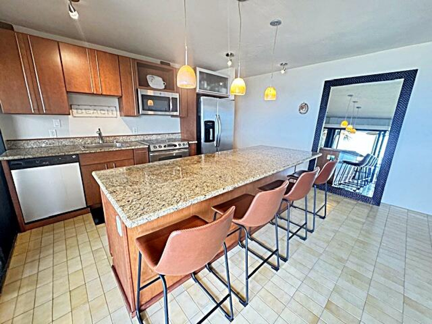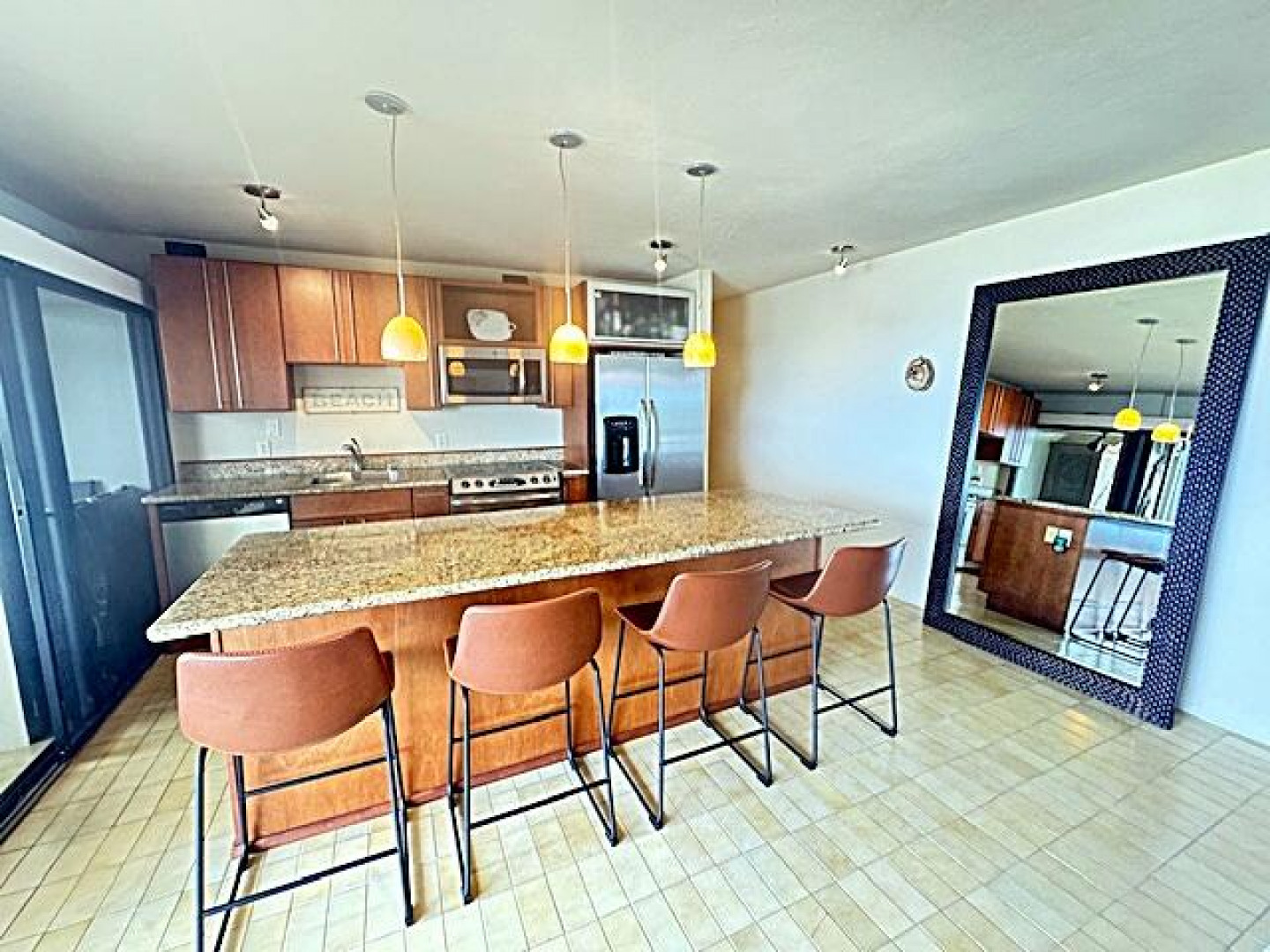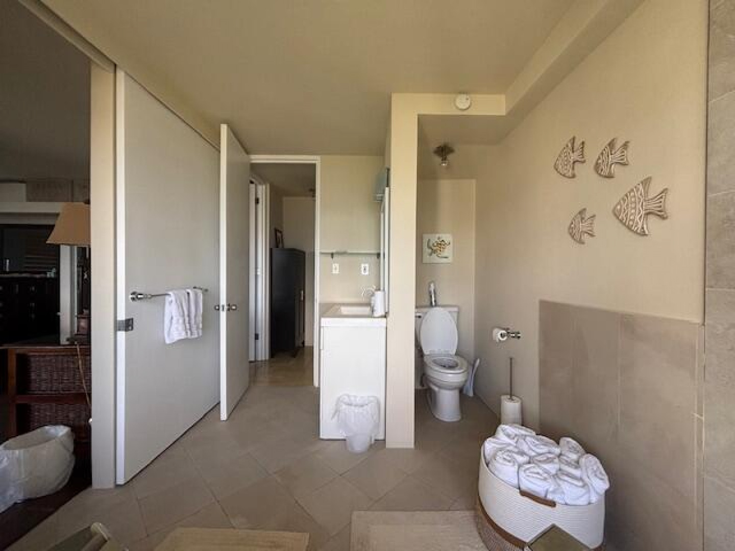 Located in Mahogany Run, one of the island's premier gated residential communities, this spacious one-bedroom condo offers panoramic ocean views and beautiful sunsets. The main patio is 32 feet in length and the bedroom has its own patio. It comes fully furnished and a kitchen with granite counter tops equipped with all appliances. The bedroom has a generous amount of closet and storage space and the beautifully remodeled bathroom is filled with light from large windows that enjoy the same ocean views. It comes with a Delta Pro Ultra Eco-Flow backup generator. Mahogany Run has a large pool and services include the security gate, trash pickup and exterminating. It's conveniently located for the east end or town and a five minute drive to St. Thomas's iconic Magens Bay Beach.The Sellers have been told by M Run COA they are on the list for new windows and sliding glass doors in 2026. The Sellers have no control over when this will be done.