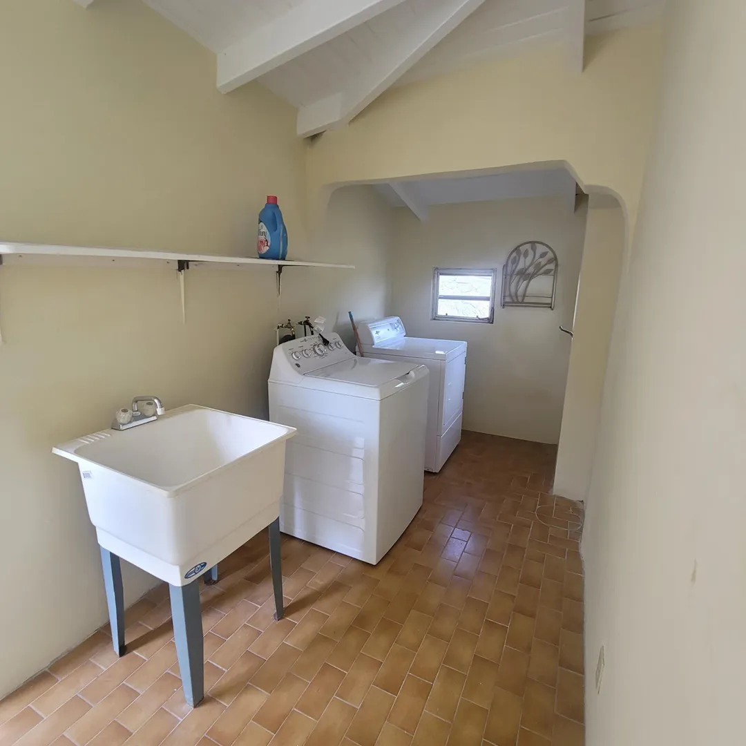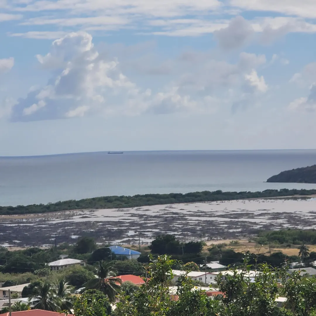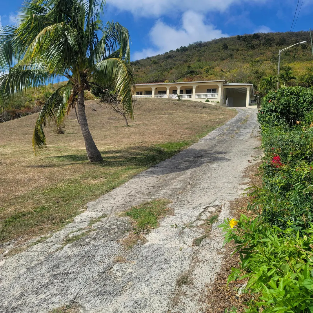Looking for peace, privacy and a dynamic sea view, well this beautiful three bedroom two bath home has it all. Semi furnished. Enjoy the sweeping ocean view of the south shore, and of Great pond from this magnificent home. Watch the ships sail by while sipping a cup of coffee or tea in the morning on the lovely porch, or an afternoon cocktail. Nice spacious living room/kitchen and dining with great sea view, laundry room and carport. well manicured lawn, with nice paved driveway. situated in the hills among some lovely homes. Beaches, and fine dining restaurants are near by, just a few mins from Christiansted town. Like golfing, private golf course nearby. Make this beauty you dream.