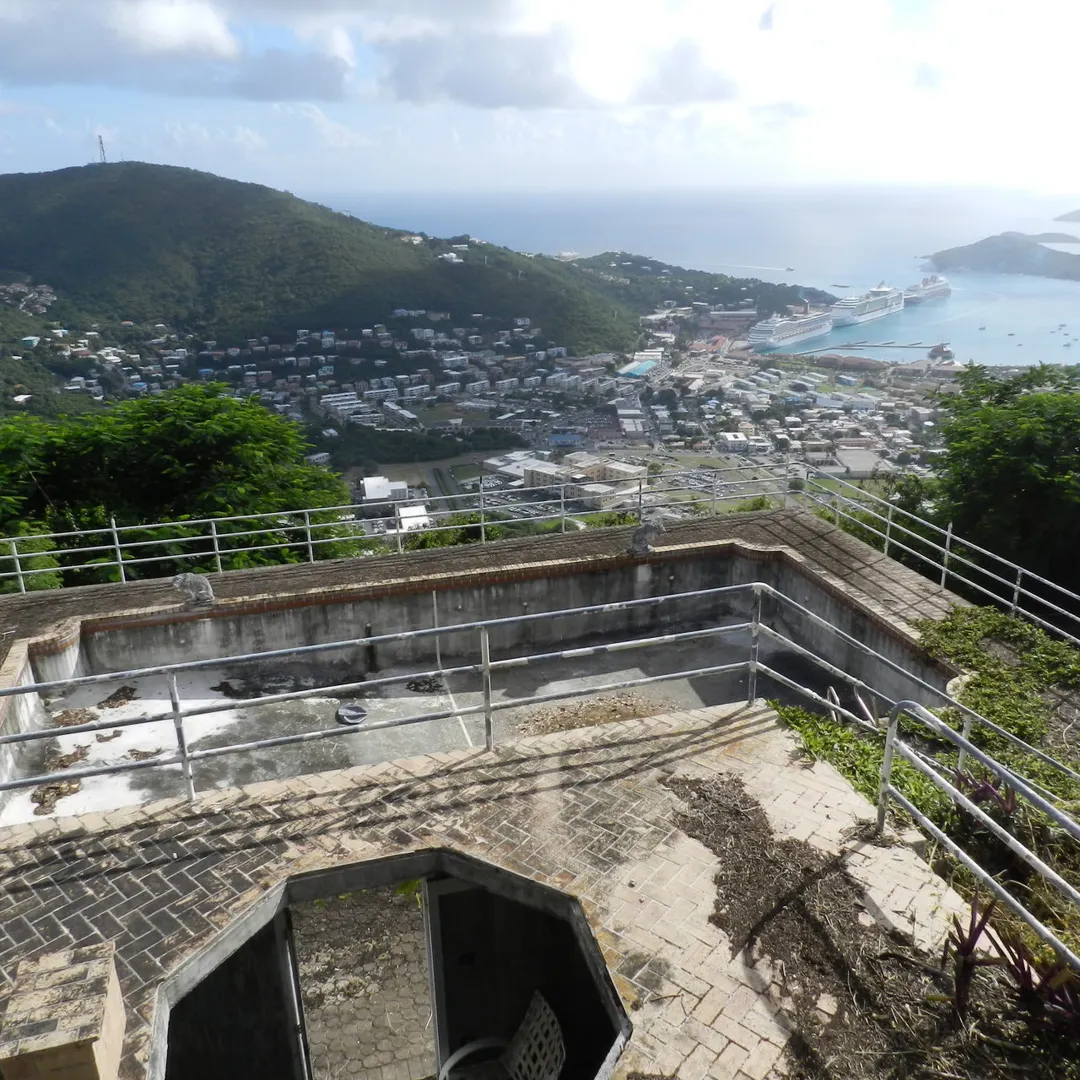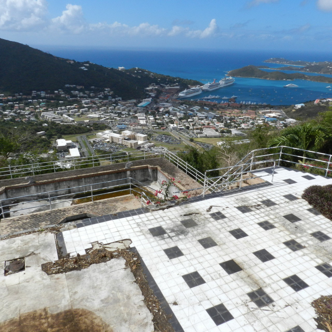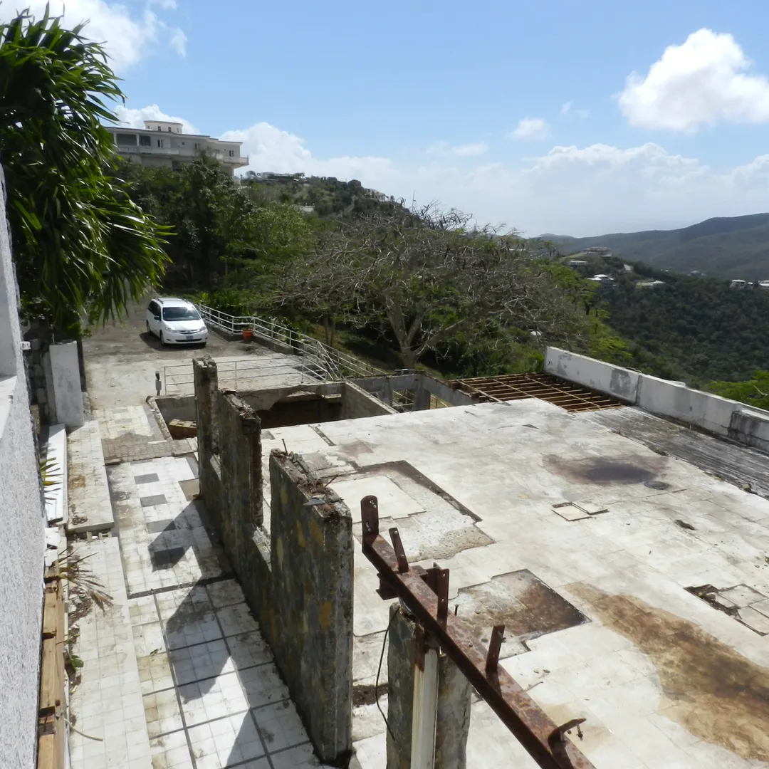 OWN A PIECE OF ST THOMAS HISTORY! Fabulous, one of a kind, 1.16 acre, walled,gated crest lot with nearly 360 degree views. Property enjoys awesome sunrises & sunsets. Formerly the Herman Wouk Estate, author of ''Don't Stop the Carnival''.Huge, multilevel,some useable structures. Habitable 1BR pool house on level with huge pool. Live in cottage while planning a grand Villa. Zoned 4 units potential