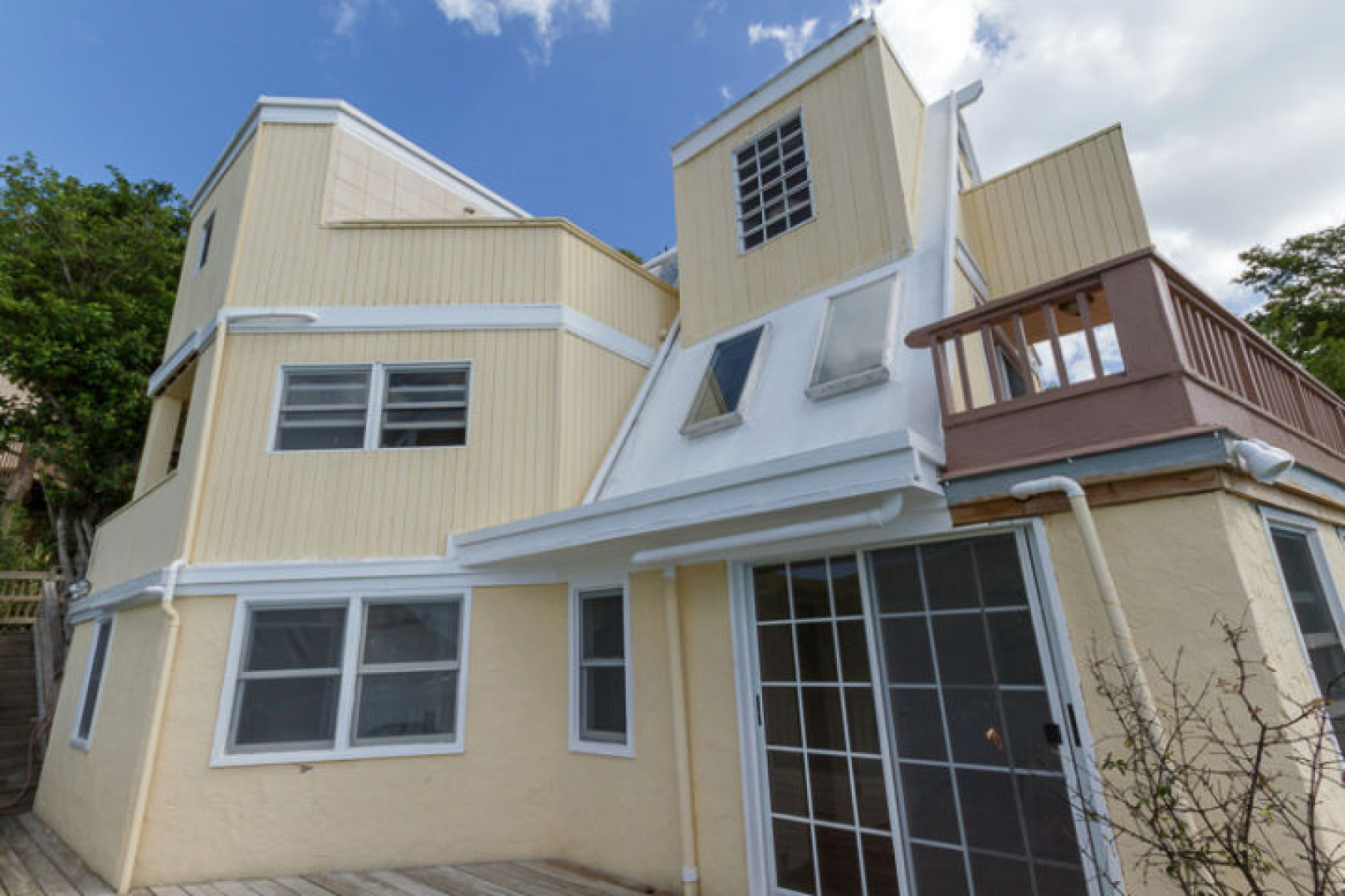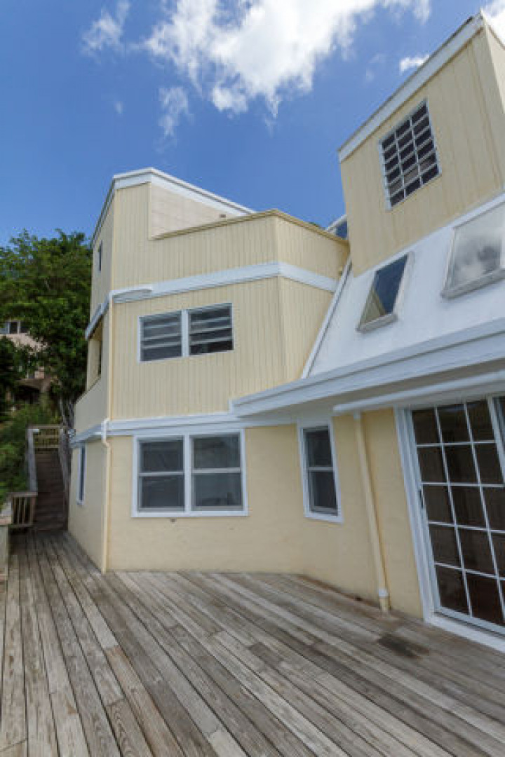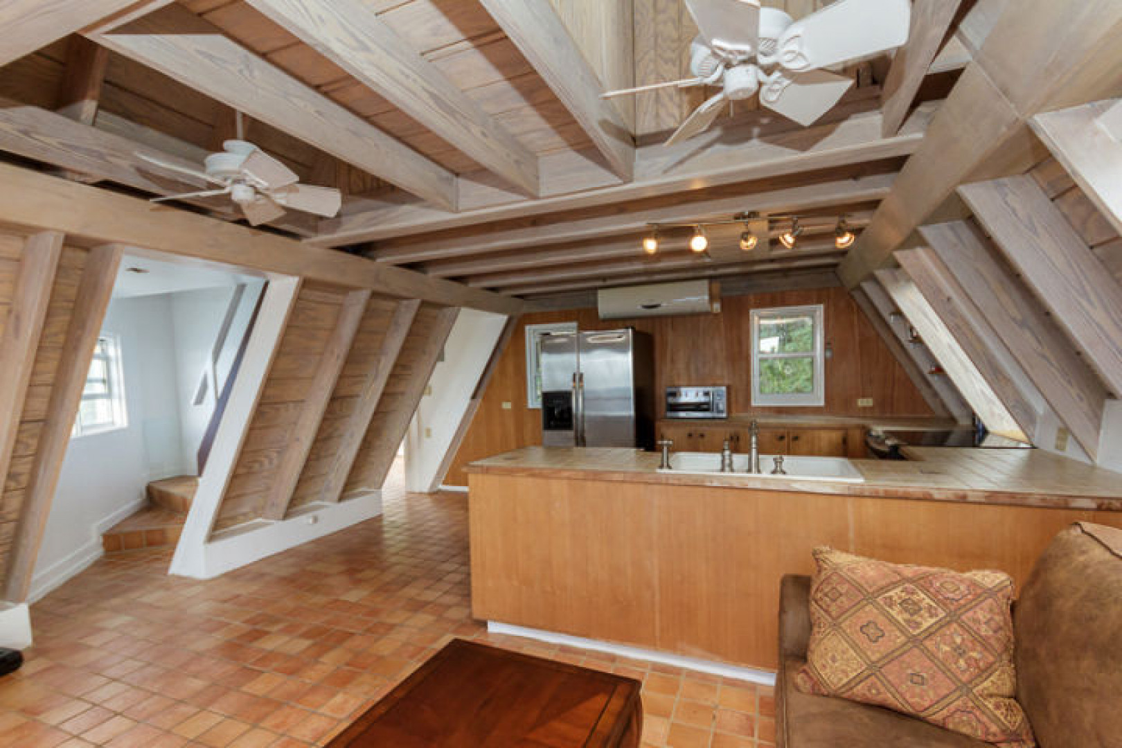Great waterfront rental on the quiet west end. This house is not suitable for small children as the main bedroom is outside and down stairs. You could sleep 1 or 2 people upstairs as there is a bathroom and outdoor shower. Main kitchen up and half down. Creative layout but think ''waterfront''...paddle boarding, kayaking, swimming, snorkeling...