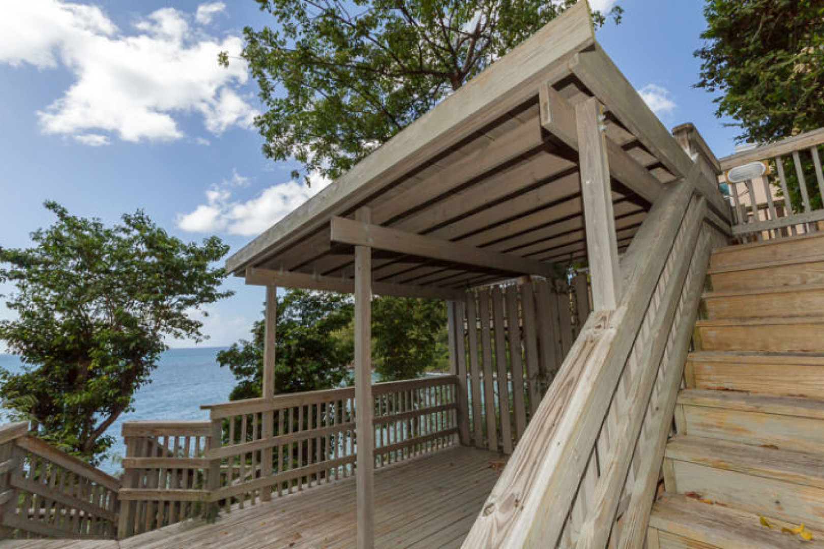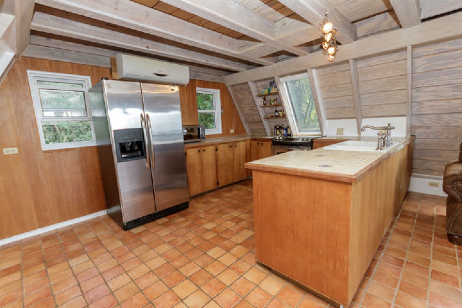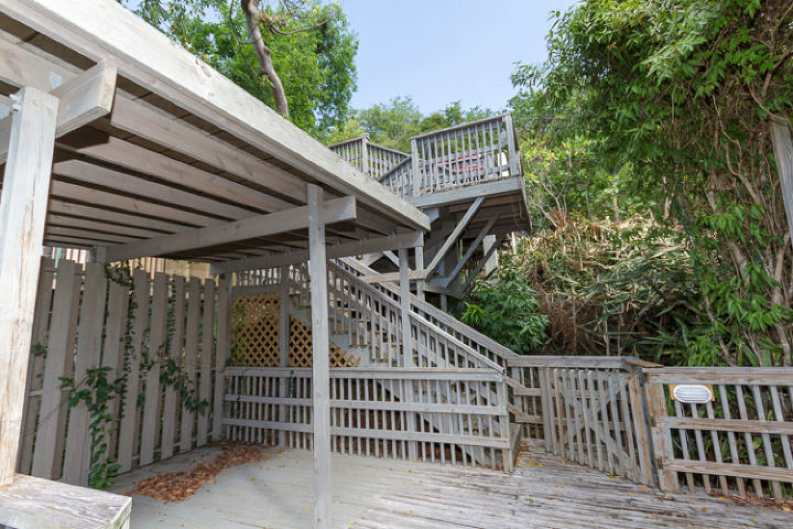Great waterfront rental on the quiet west end. This house is not suitable for small children as the main bedroom is outside and down stairs. You could sleep 1 or 2 people upstairs as there is a bathroom and outdoor shower. Main kitchen up and half down. Creative layout but think ''waterfront''...paddle boarding, kayaking, swimming, snorkeling...
