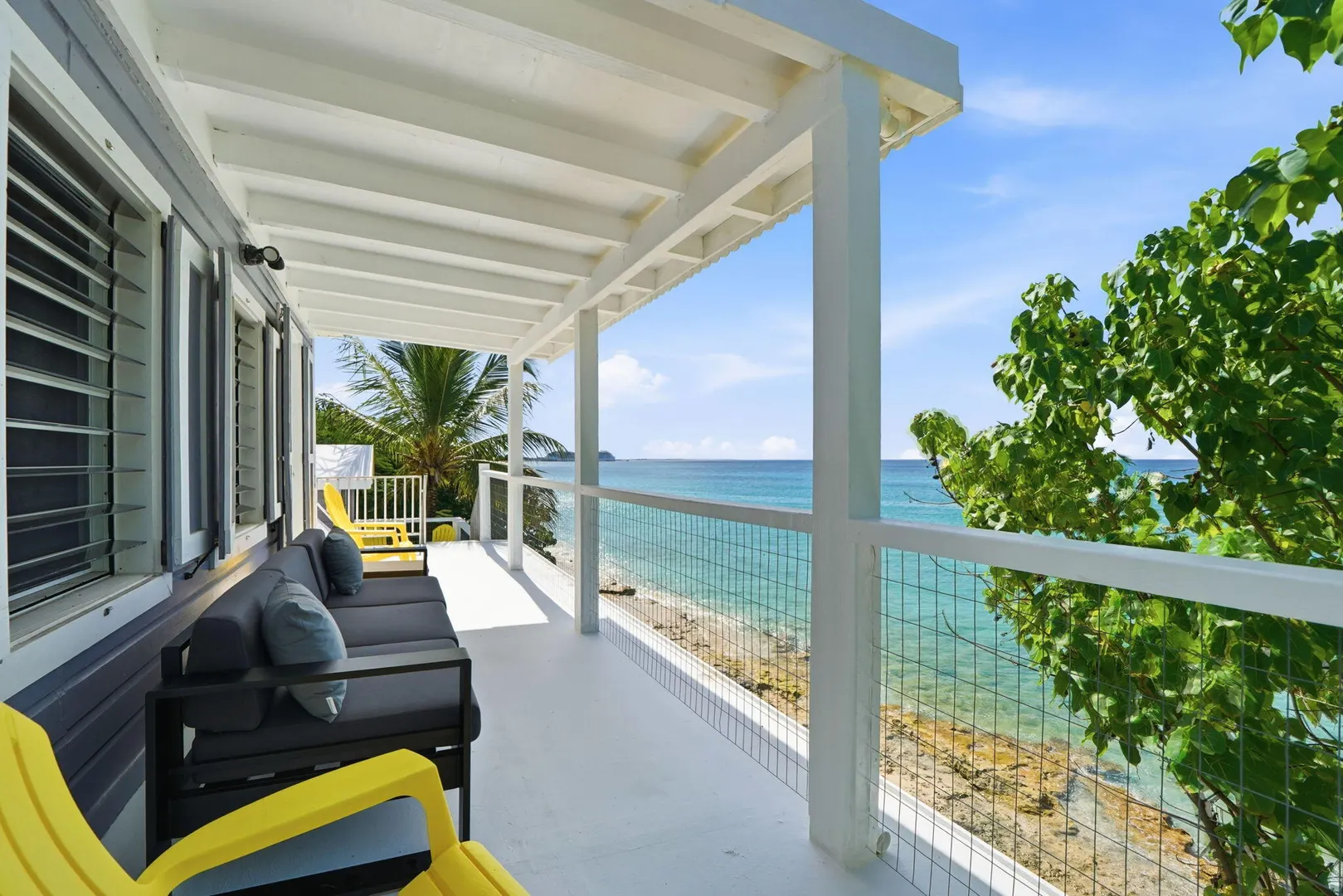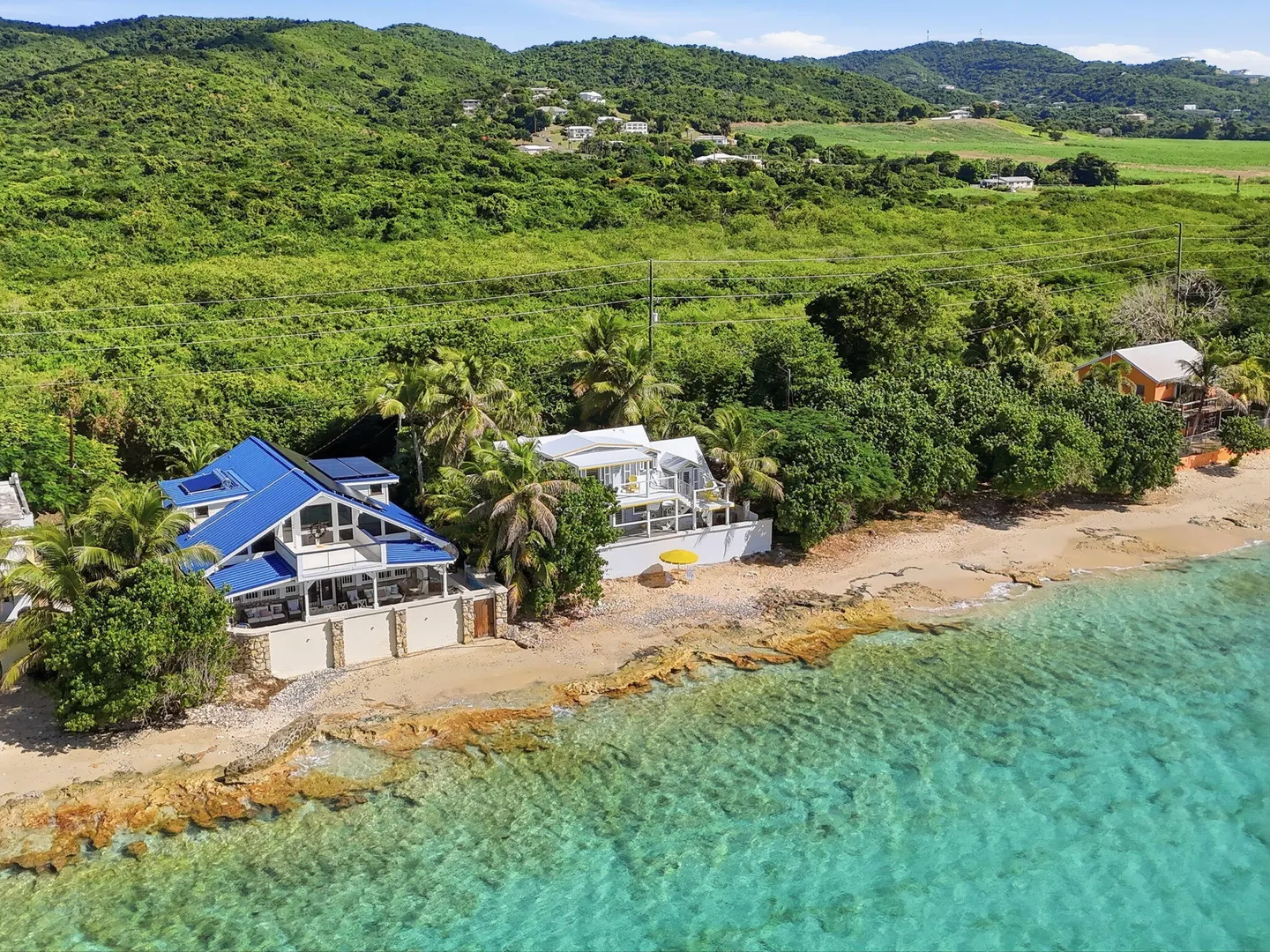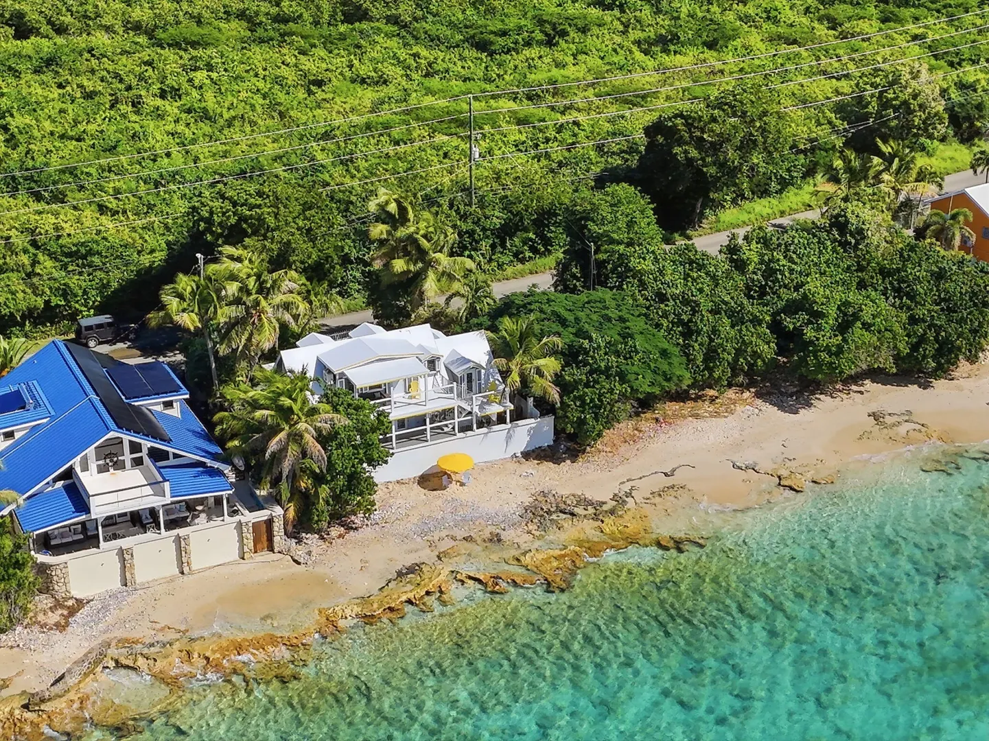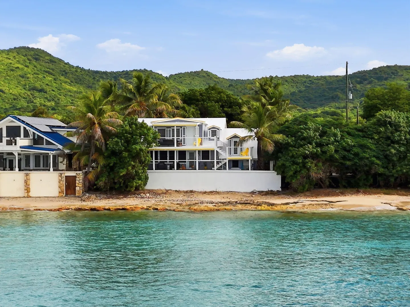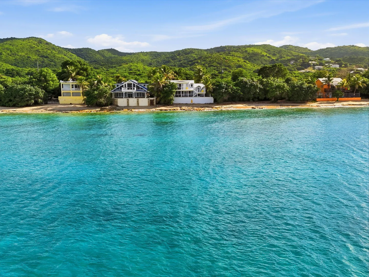 Rare opportunity to own this Caribbean inspired Beach Front home! Sitting only steps from one of the most beautiful beaches in St.Croix with the crystal clear Caribbean waters waiting for you. The house has been updated inside in and out with everything from electrical to plumbing, to furnishings . Designer flooring from Karastan LVP , George Nelson's Bubble Lamps , high end GE appliances adds more charm to this home The house features a king bed & full bath downstairs and a large ,beautifully finished loft style primary suite with a sitting area, full bath, private deck and amazing views of the sea & stunning sunsets upstairs. There's a separate entrance for the loft style apt. A basement, fenced courtyard ,& ample parking rounds out the property. Your dream home is right here.Your front row seat to the magical Caribbean is waiting just for you. Your day begins with a quick swim, maybe the dolphins will join you. Followed by a lazy kayak trip down to the pier for a cup of coffee and a sweet tart. Later in the week you might decide to take your tanks and go for a dive, walk right into the cool waters from your beachfront home! This home feature a large king size guest room downstairs with full bath, upstairs ensuite loft with sitting area, full bath, and a gorgeous deck to view the setting sun. The loft style apartment has a queen bed, with ensuite bath, a full living room and kitchen downstairs with a half bath. There are three cisterns, triple filter system, and elastomeric roof that has survived numerous hurricanes . Fully walled and very private, the front gate slides open for extra parking. The lot next door belongs to the VI Government for beach access, insuring lots of extra parking for your get togethers. Next door to the north is owned by state siders who do high end short term rentals occasionally . This is a turnkey property just waiting for you.