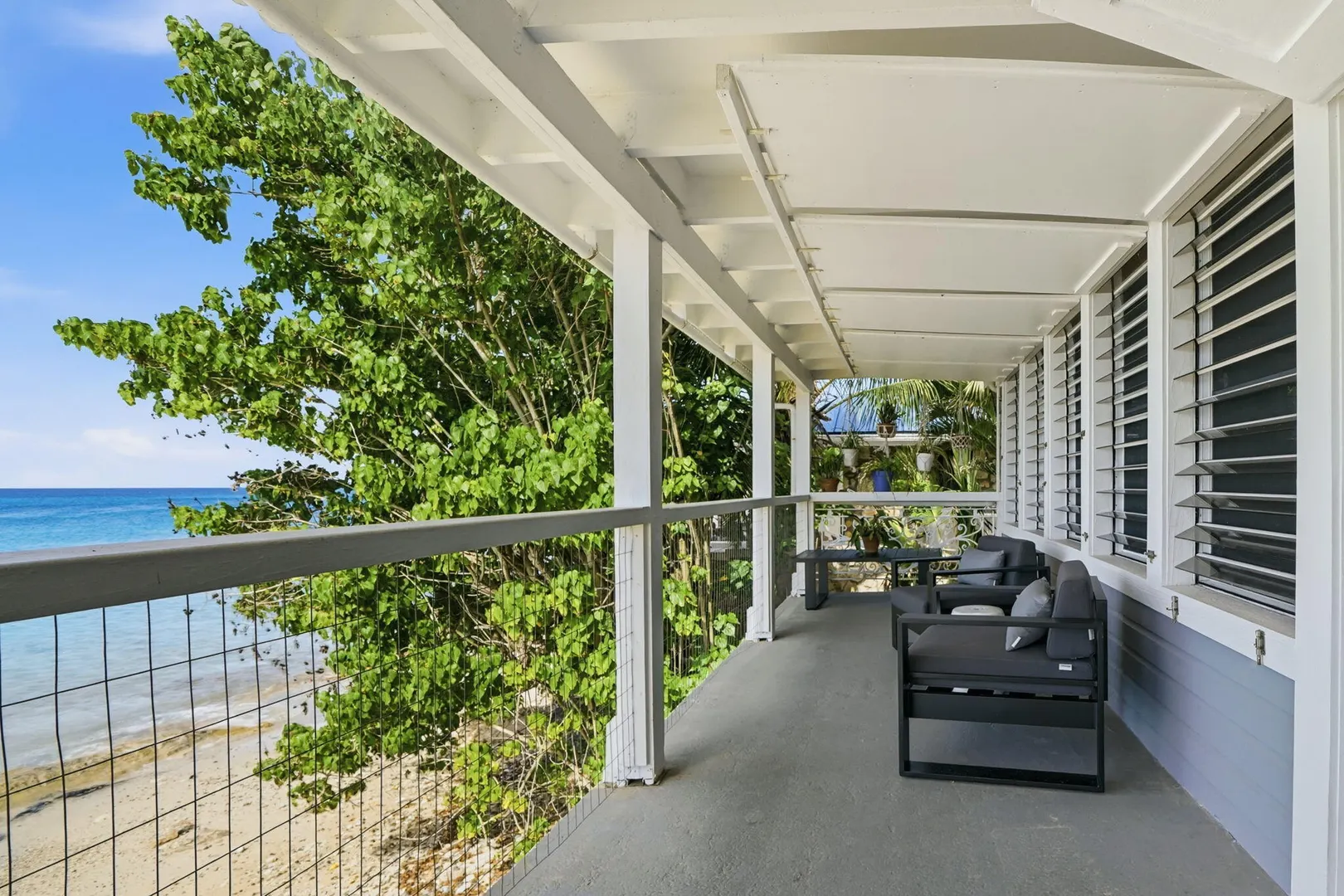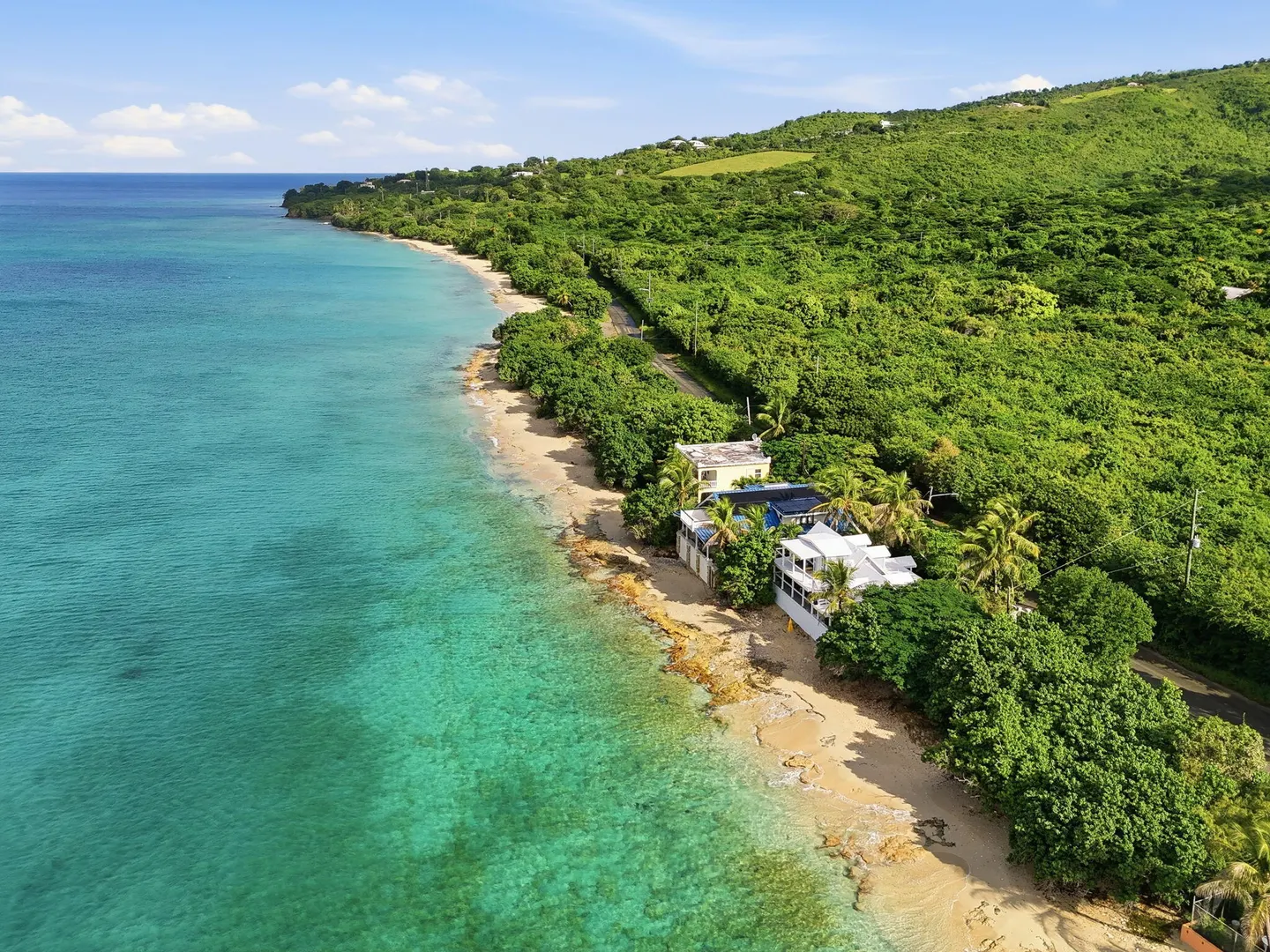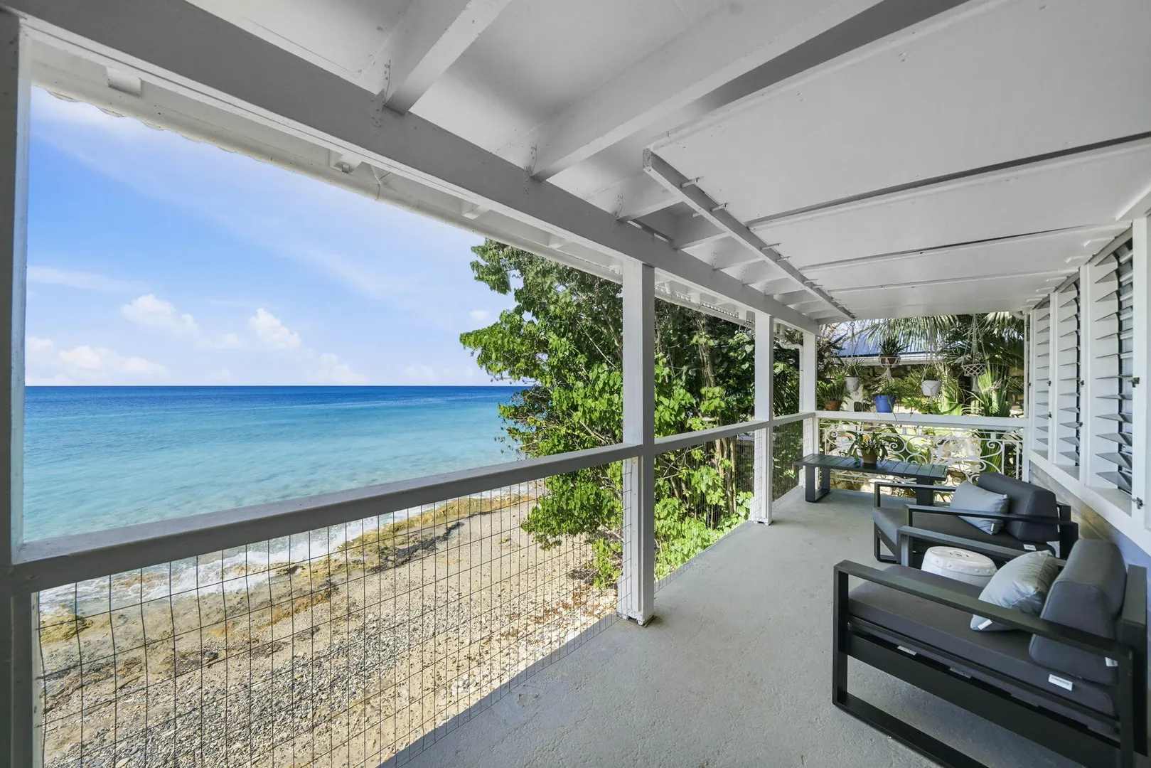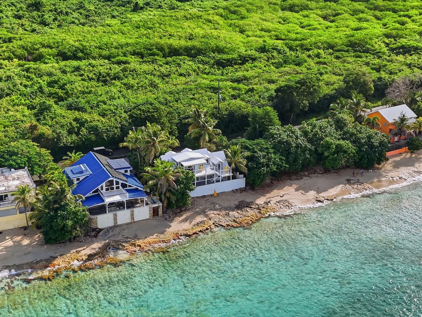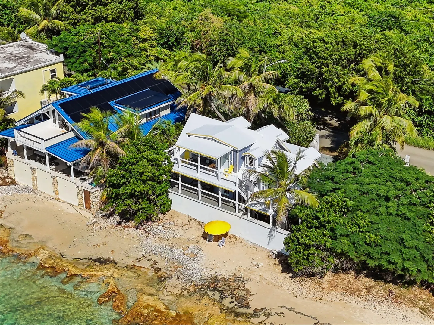 Rare opportunity to own this Caribbean inspired Beach Front home! Sitting only steps from one of the most beautiful beaches in St.Croix with the crystal clear Caribbean waters waiting for you. The house has been updated inside in and out with everything from electrical to plumbing, to furnishings . Designer flooring from Karastan LVP , George Nelson's Bubble Lamps , high end GE appliances adds more charm to this home The house features a king bed & full bath downstairs and a large ,beautifully finished loft style primary suite with a sitting area, full bath, private deck and amazing views of the sea & stunning sunsets upstairs. There's a separate entrance for the loft style apt. A basement, fenced courtyard ,& ample parking rounds out the property. Your dream home is right here.Your front row seat to the magical Caribbean is waiting just for you. Your day begins with a quick swim, maybe the dolphins will join you. Followed by a lazy kayak trip down to the pier for a cup of coffee and a sweet tart. Later in the week you might decide to take your tanks and go for a dive, walk right into the cool waters from your beachfront home! This home feature a large king size guest room downstairs with full bath, upstairs ensuite loft with sitting area, full bath, and a gorgeous deck to view the setting sun. The loft style apartment has a queen bed, with ensuite bath, a full living room and kitchen downstairs with a half bath. There are three cisterns, triple filter system, and elastomeric roof that has survived numerous hurricanes . Fully walled and very private, the front gate slides open for extra parking. The lot next door belongs to the VI Government for beach access, insuring lots of extra parking for your get togethers. Next door to the north is owned by state siders who do high end short term rentals occasionally . This is a turnkey property just waiting for you.