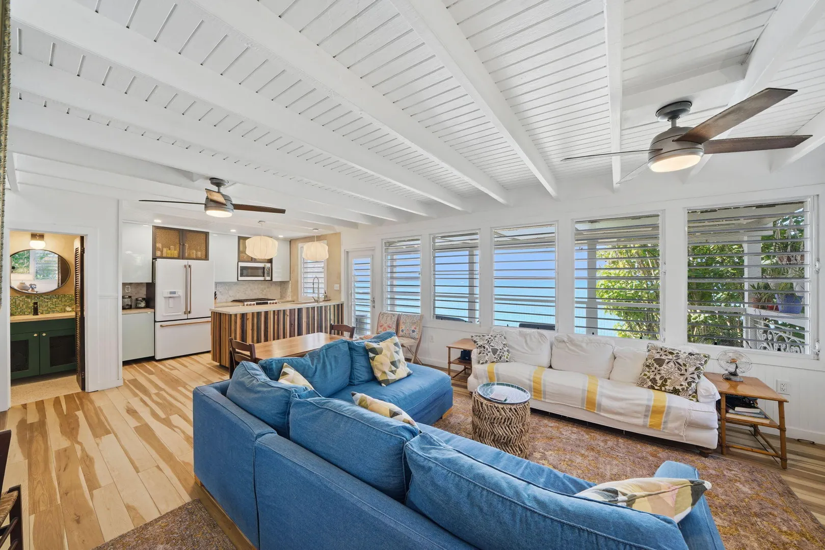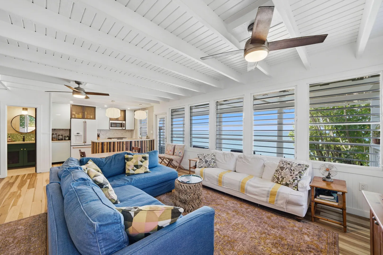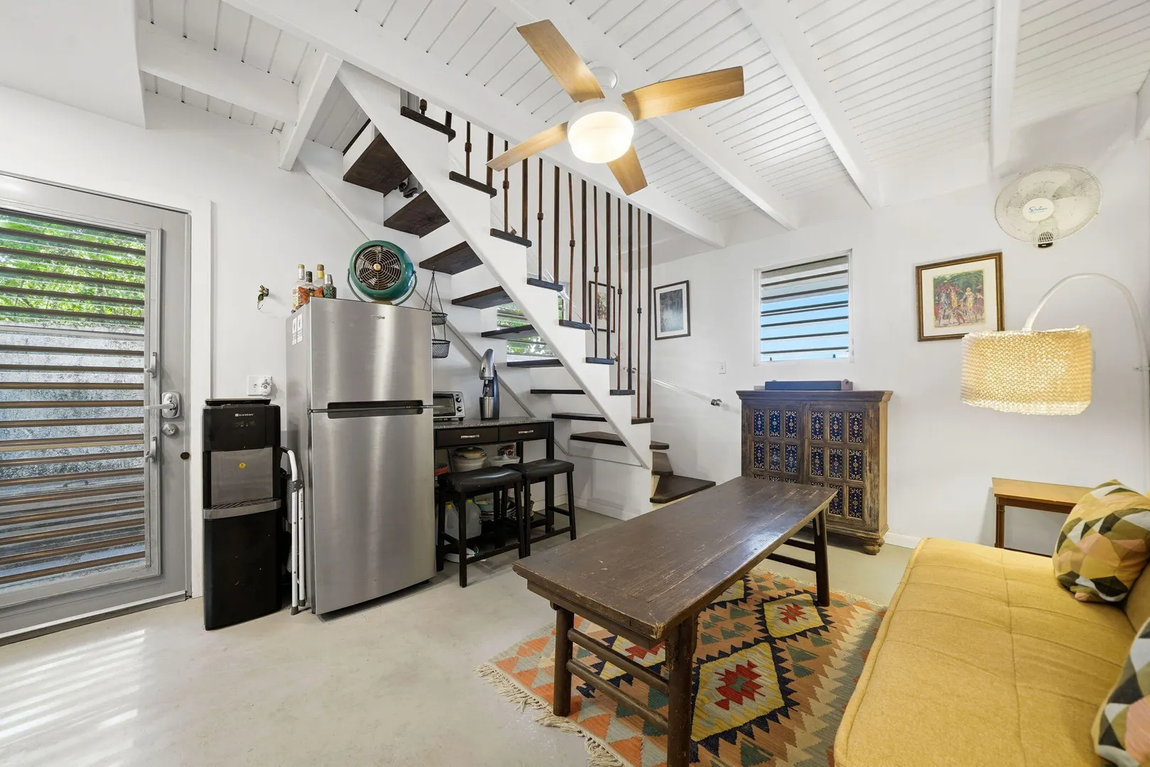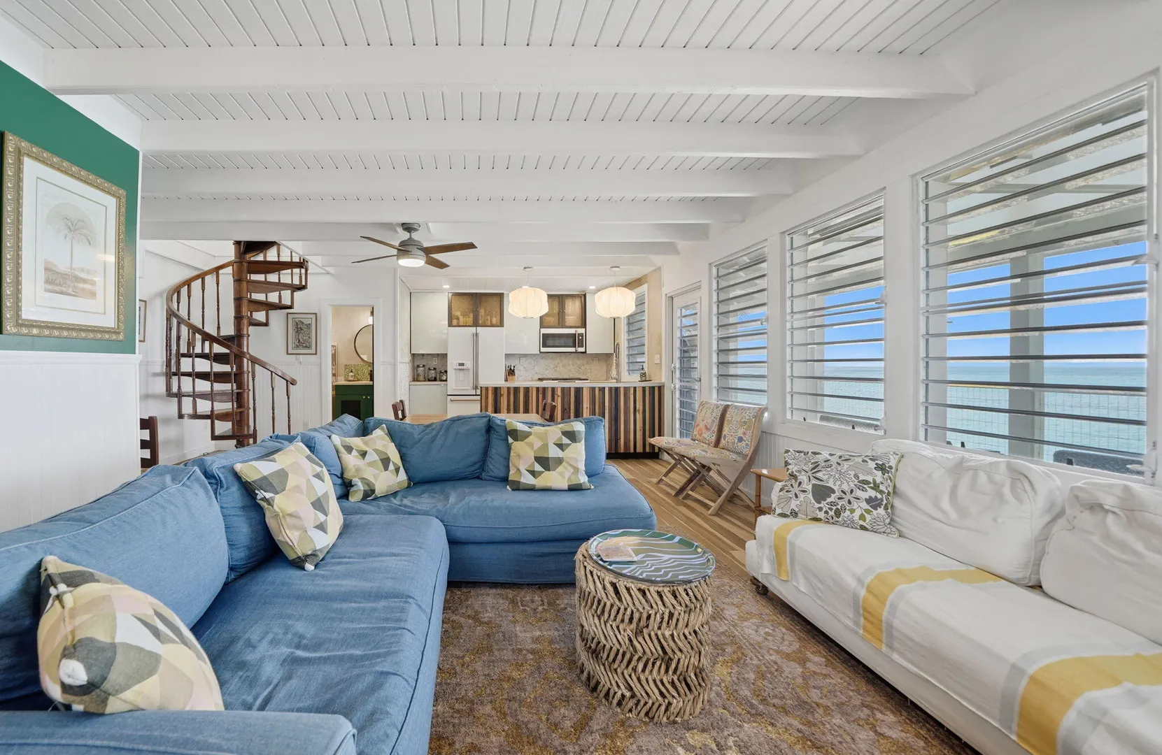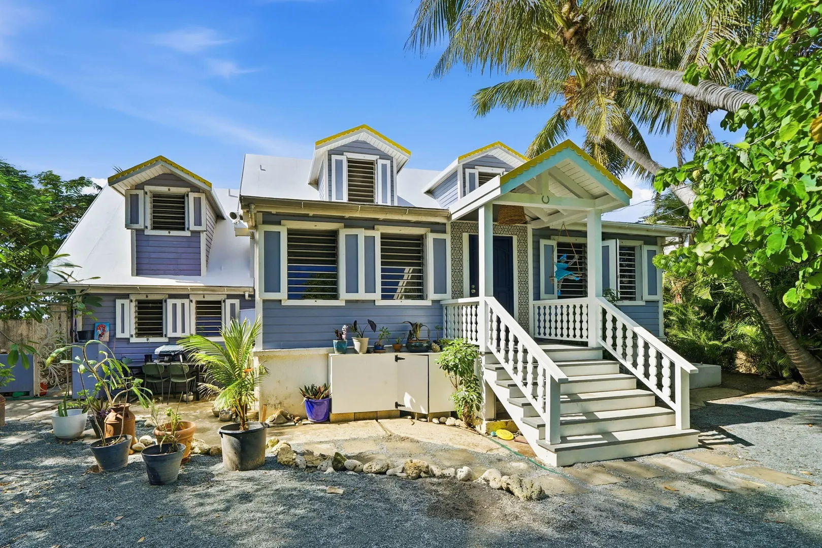 Rare opportunity to own this Caribbean inspired Beach Front home! Sitting only steps from one of the most beautiful beaches in St.Croix with the crystal clear Caribbean waters waiting for you. The house has been updated inside in and out with everything from electrical to plumbing, to furnishings . Designer flooring from Karastan LVP , George Nelson's Bubble Lamps , high end GE appliances adds more charm to this home The house features a king bed & full bath downstairs and a large ,beautifully finished loft style primary suite with a sitting area, full bath, private deck and amazing views of the sea & stunning sunsets upstairs. There's a separate entrance for the loft style apt. A basement, fenced courtyard ,& ample parking rounds out the property. Your dream home is right here.Your front row seat to the magical Caribbean is waiting just for you. Your day begins with a quick swim, maybe the dolphins will join you. Followed by a lazy kayak trip down to the pier for a cup of coffee and a sweet tart. Later in the week you might decide to take your tanks and go for a dive, walk right into the cool waters from your beachfront home! This home feature a large king size guest room downstairs with full bath, upstairs ensuite loft with sitting area, full bath, and a gorgeous deck to view the setting sun. The loft style apartment has a queen bed, with ensuite bath, a full living room and kitchen downstairs with a half bath. There are three cisterns, triple filter system, and elastomeric roof that has survived numerous hurricanes . Fully walled and very private, the front gate slides open for extra parking. The lot next door belongs to the VI Government for beach access, insuring lots of extra parking for your get togethers. Next door to the north is owned by state siders who do high end short term rentals occasionally . This is a turnkey property just waiting for you.