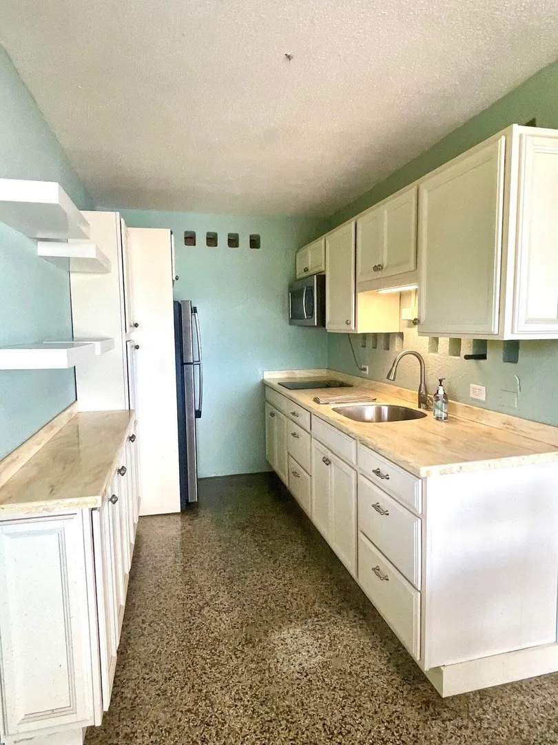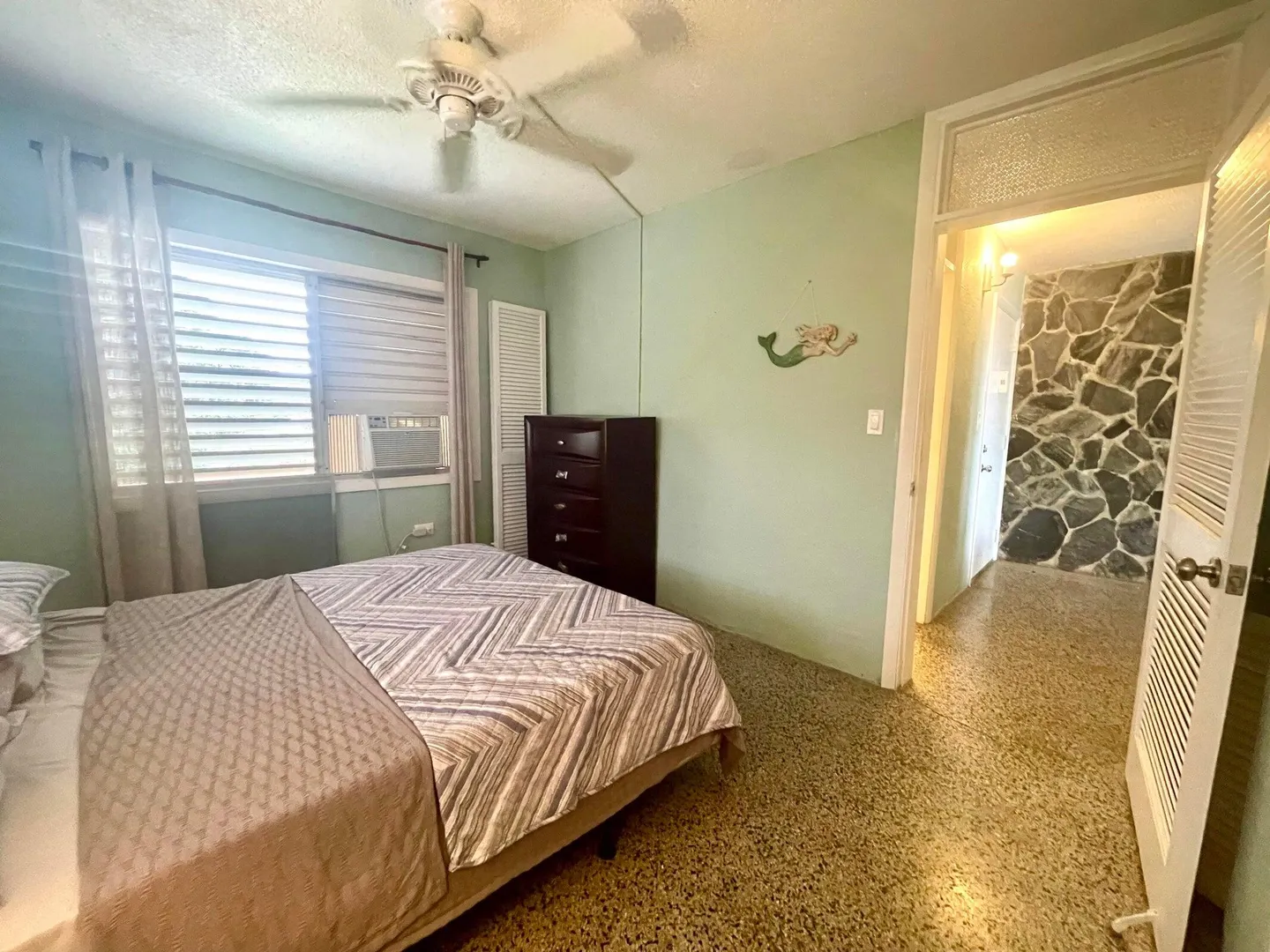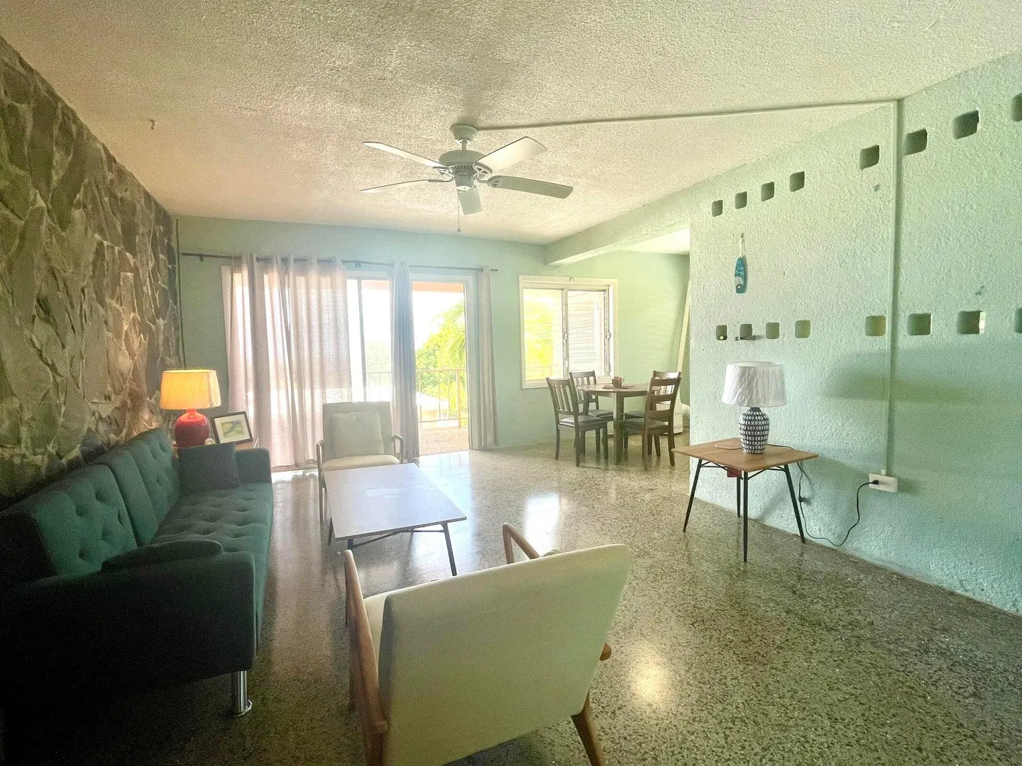 This furnished one bedroom condo features a beautiful stone accent wall and terrazzo flooring. The end unit location allows for additional windows that make the space bright and breezy, and you will enjoy the amazing views from the patio. The community has a refreshing swimming pool, on site laundry, and plenty of parking right outside the entrance. Convenient mid island location. Tenant responsible for electric, internet, cable and water.