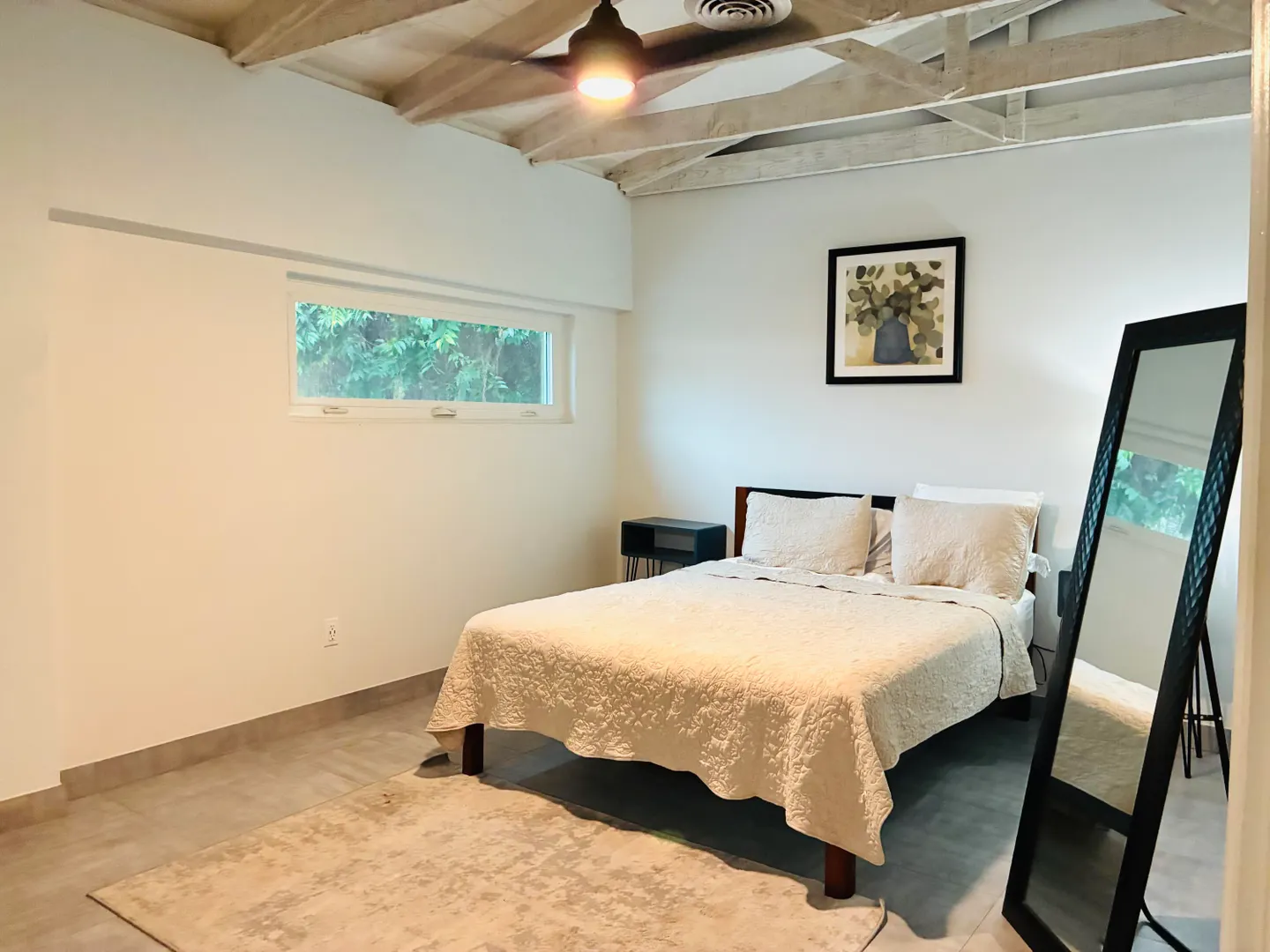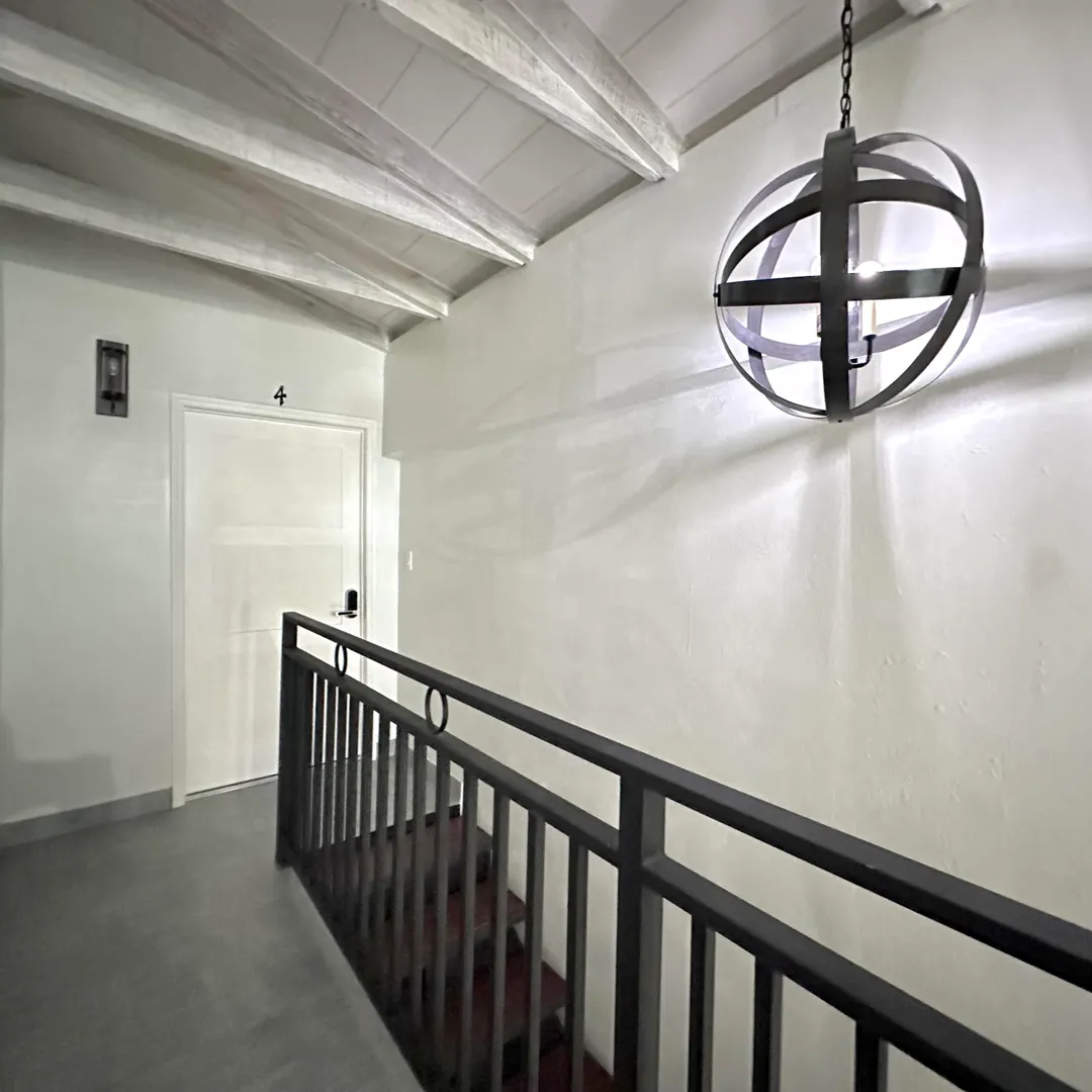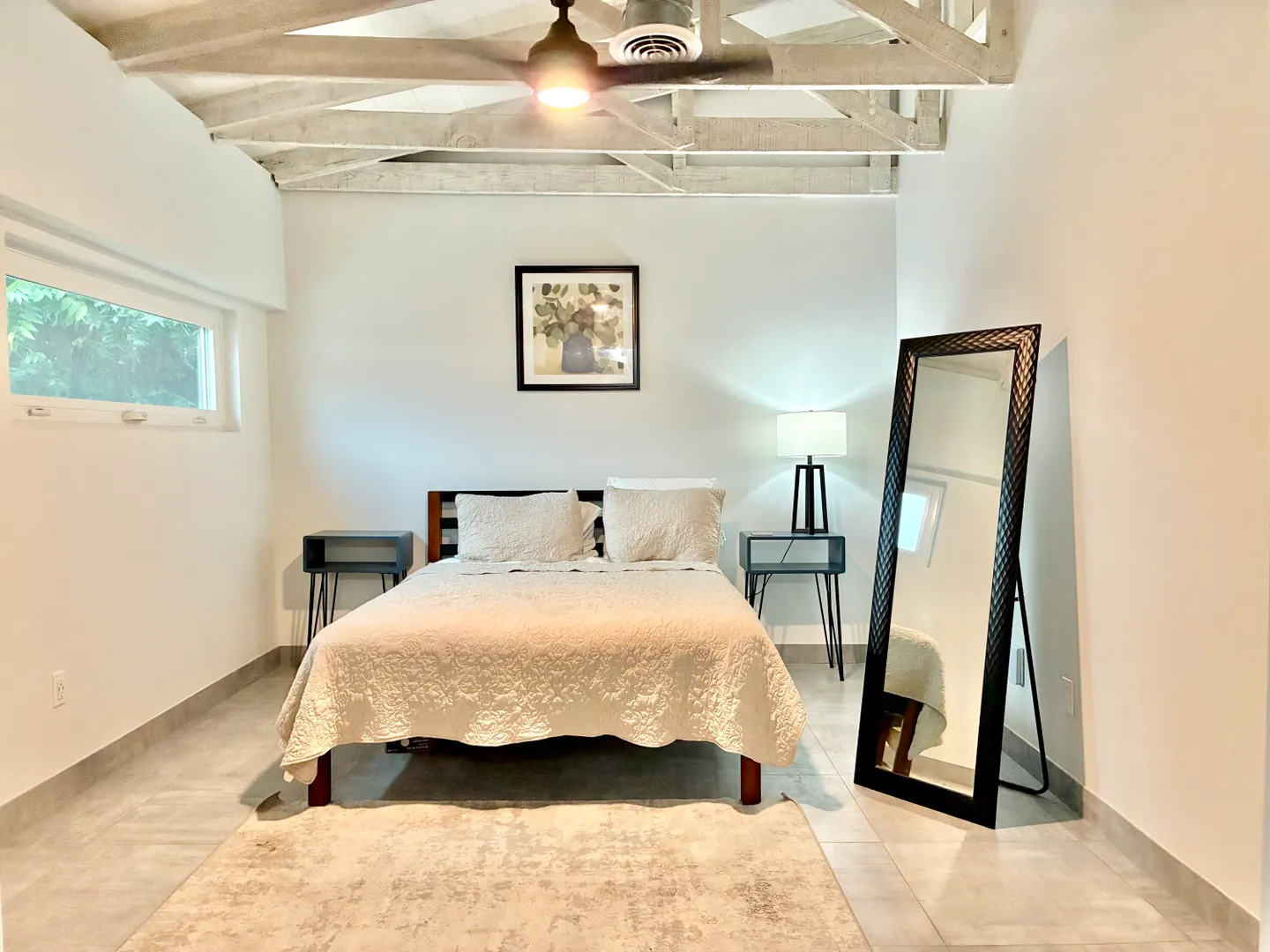 Luxury 1 Bedroom/1 Bath penthouse apartment replete with central A/C, like-new appliances, smart TV, WiFi, Trash Pick Up, monthly pest control, full furnishings, washer/dryer. Small pets considered with fee, subject to Landlord approval. $50/MO flat rate water fee. 1 Private parking space provided to Tenant on private property. Cozy, quaint, upscale unit in the heart of Christiansted Town feels private yet is just minutes to the beach, great cuisine, restaurants, banks, convenience stores, and more. 50 Cafe coffee shop, smoothie bar & work space, The Social Beer Garden, craft cocktails & great food located just downstairs.