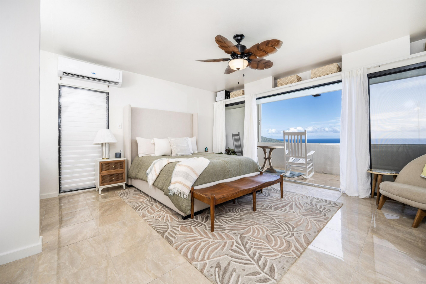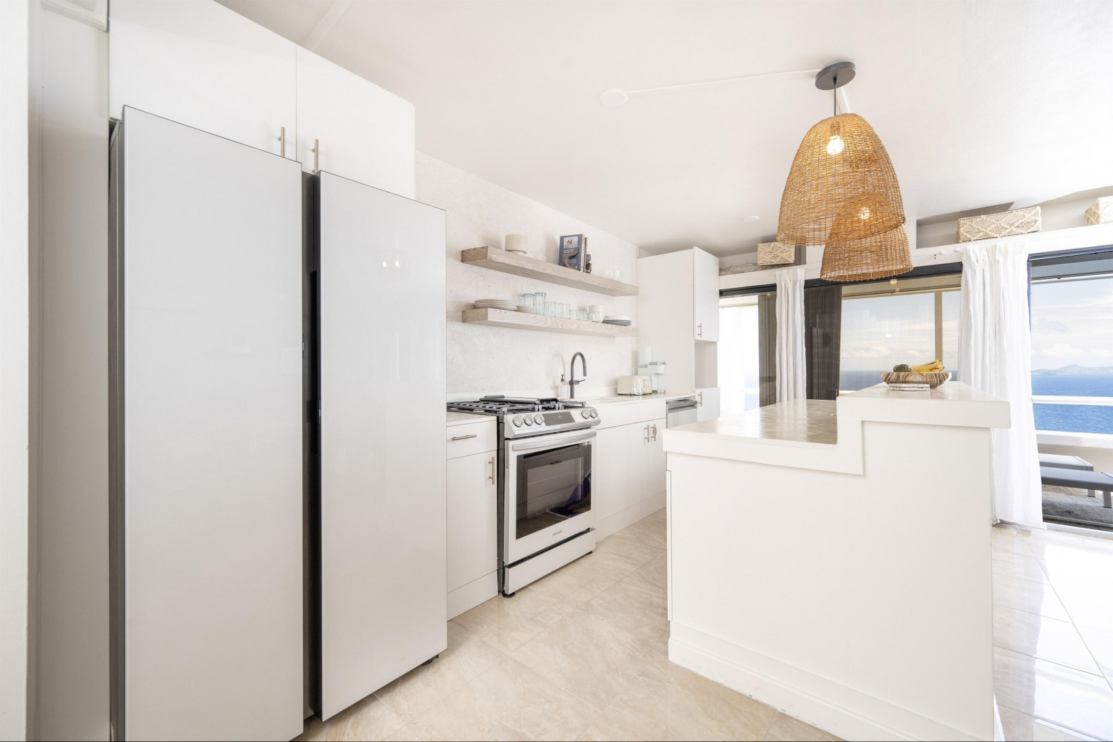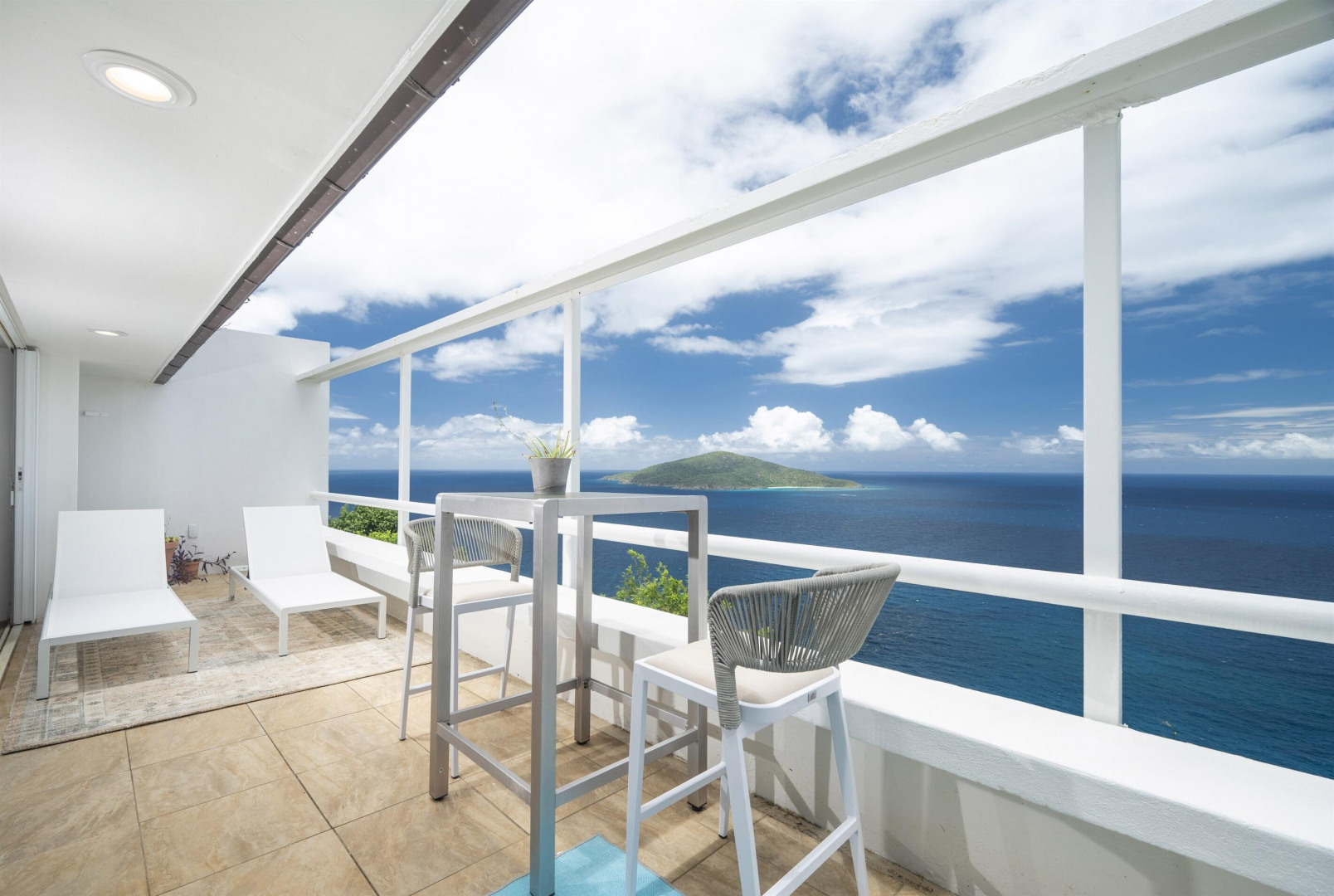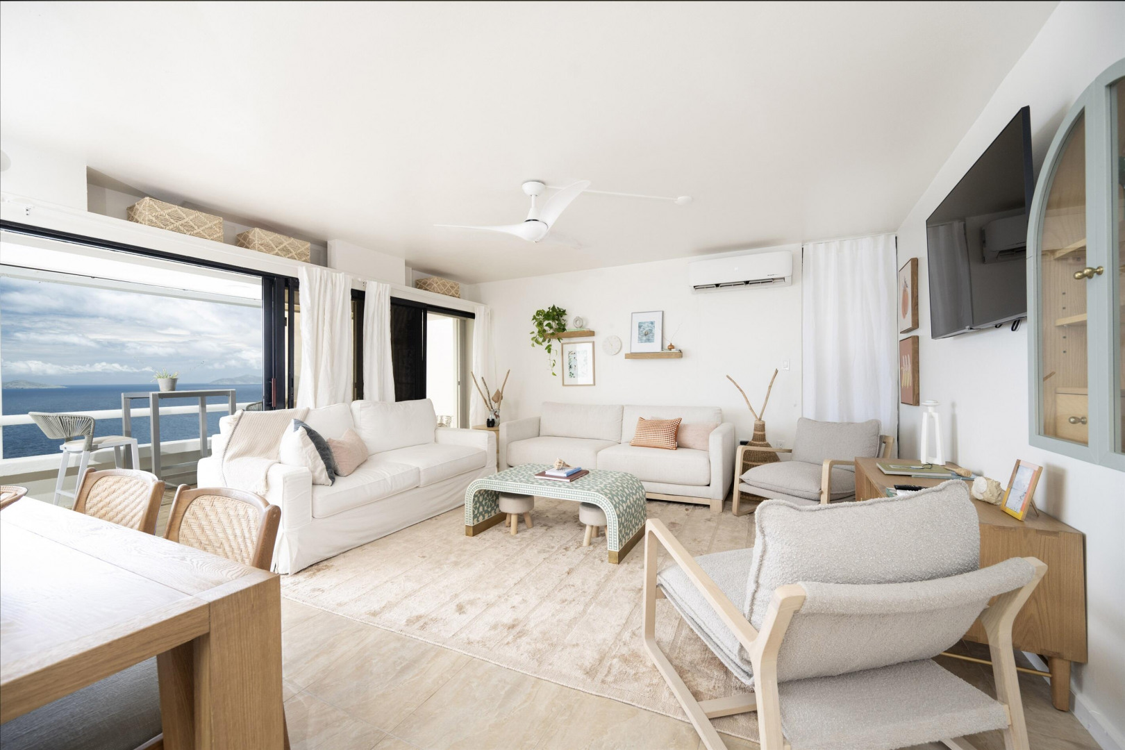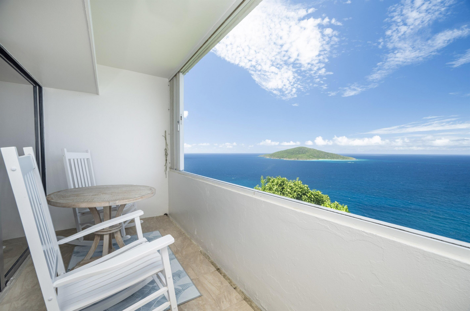 This beautifully remodeled and fully-furnished 2-bedroom, 2-bathroom condo offers unparalleled luxury and style, paired with panoramic views of the Atlantic Ocean, Hans Lollik, and the British Virgin Islands. The large master suite offers a comfortable lounge seating, a work or study area, and a private balcony. The second bedroom is fully prepared and equipped to be a self-sufficient separate unit. This is one of only four units in the entire association to have a deeded separate unit! The second bedroom comes with a kitchenette, full-sized fridge, and a separate washer and dryer!Enjoy the numerous amenities of Mahogany Run including gated access, trash service, security, landscaping, and a beautiful community pool.