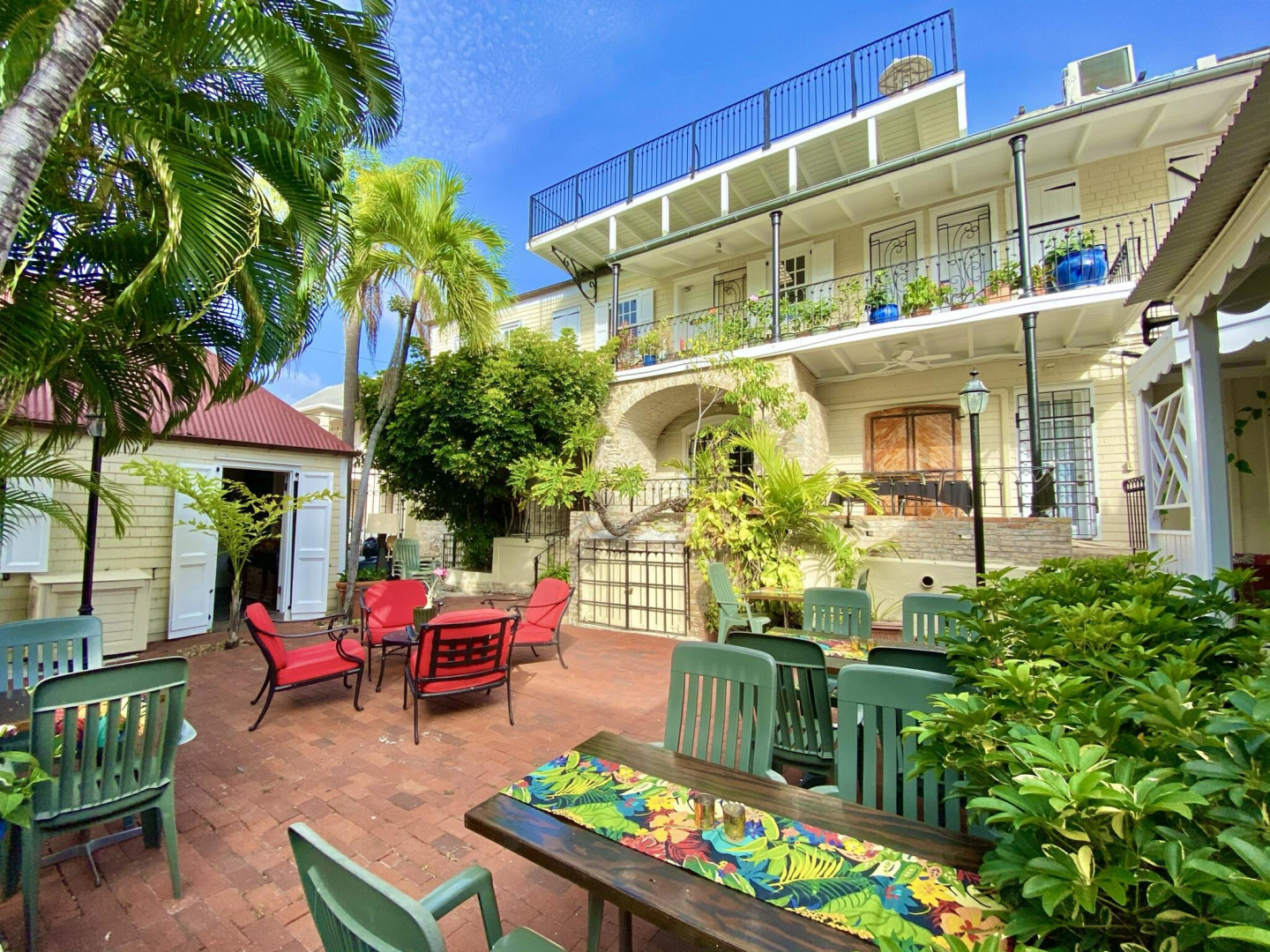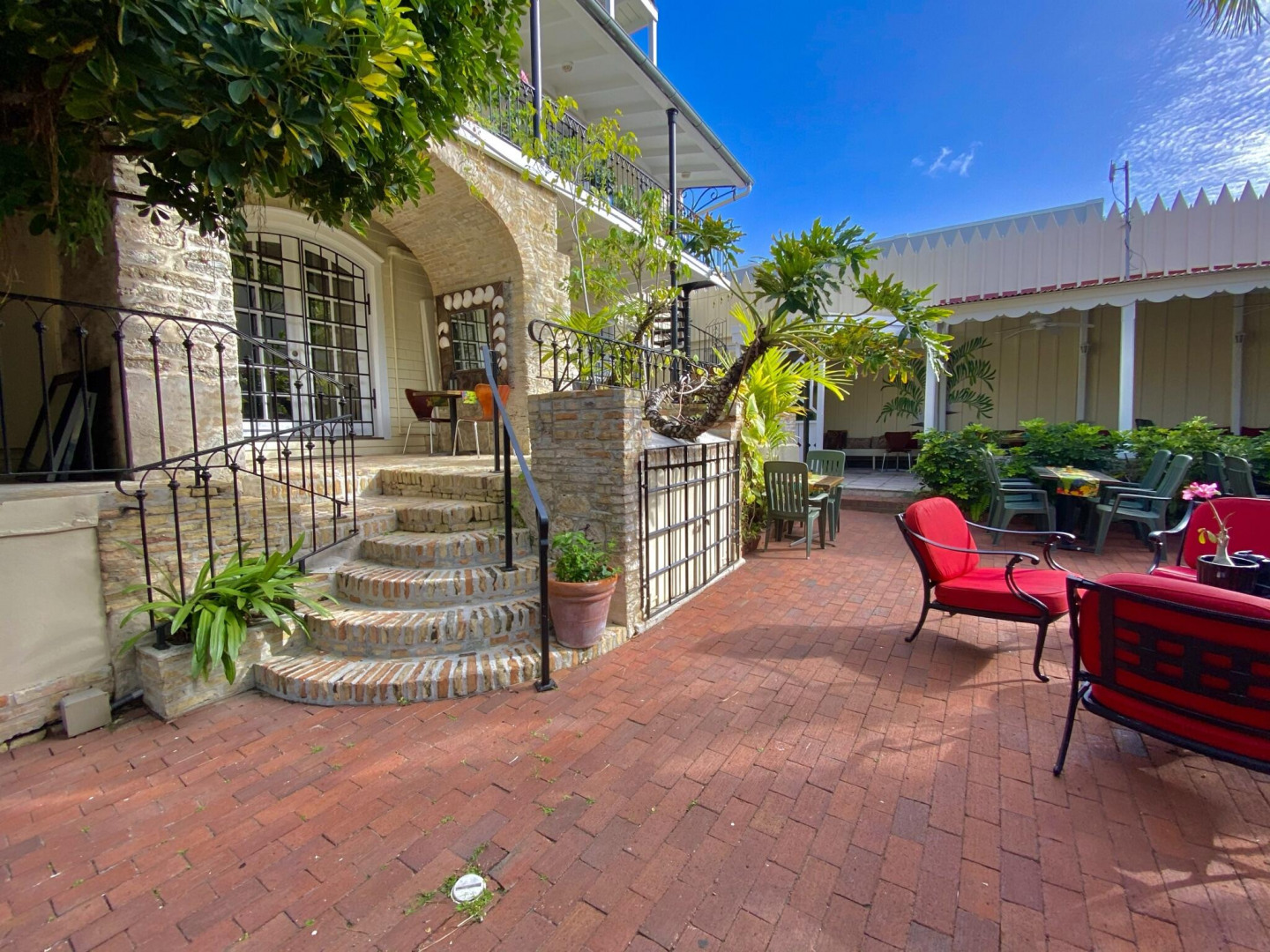 The Quin House located in the heart of Christiansted town is one of the most iconic historic properties in the US Virgin Islands. While it has been restored and meticulously maintained, the property retains its historic architectural features. The property features a romantic courtyard that is enclosed by structures including open air seating and a satellite bar, street level bar with professional kitchen & a three-story building that has commercial/restaurant space with a half bath on the first level, office space on the second floor with five offices and two half baths, and an upper level two-bedroom, two-bathroom condo with a rooftop deck overlooking the historic town and Christiansted harbor. The courtyard & lower level has housed some of the most well-known & successful restaurants-including Kendricks, Zion Modern Kitchen and Too Chez (currently in-house, great tenants!). The lower-level space is not only beautiful, but also flexible to maximize rental returns. One can easily rent out the entire space to one-tenant (as it is now) or to multiple tenants by closing off the rooms (doors already in place to do so). This corner property has multiple access points from the high-traffic arcades along Company Street and King Cross street, making this a highly desirable space for any commercial tenant. The space would be great for a boutique, restaurant (as proven and current), wine bar, coffee shop, boutique hotel/airbnb and/or art gallery - AND SO MUCH MORE!