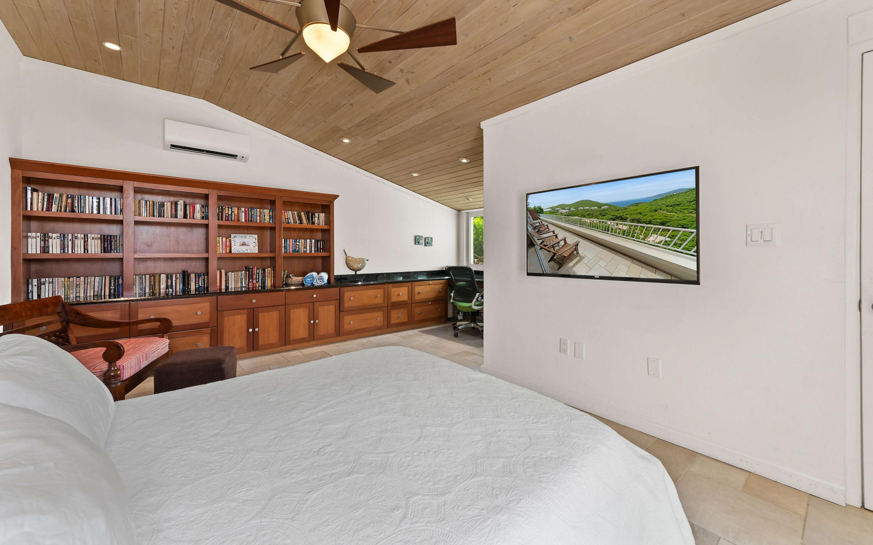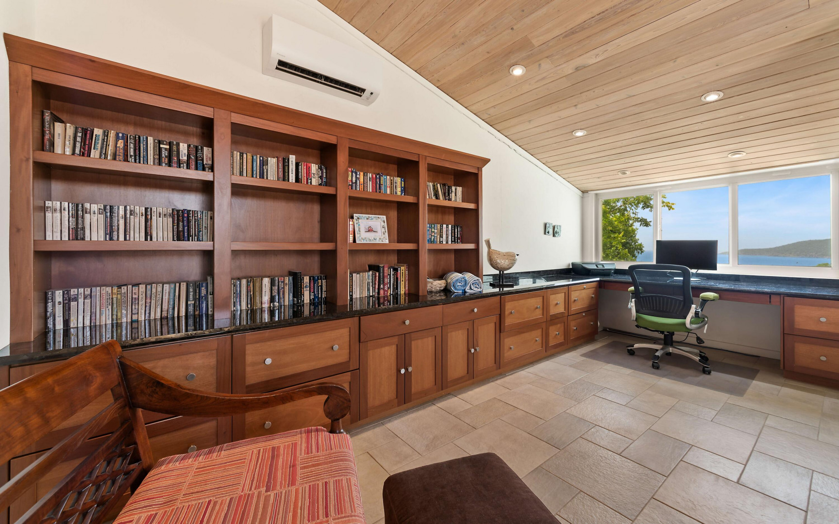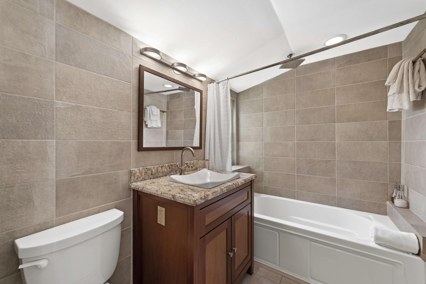 This beautifully renovated, turnkey luxury property is a rare find--blending high-end design, thoughtful upgrades, and true peace of mind. A major renovation approximately 10 years ago brought elegant hardwood-clad vaulted ceilings, custom lighting, and Italian tile throughout the interior and balcony. The spacious, open-concept great room flows into a chef's dream kitchen designed for entertaining, alongside a full-size laundry room for everyday convenience. The primary suite is a serene retreat with ample storage and a spa-like bathroom featuring an oversized walk-in shower and scenic views. Both the primary and secondary bedrooms are en suite with generous closets.The third bedroom, with high-quality built-in bookshelves, desk, and storage, is located next to a full hallway bath, perfect as a guest suite or office.