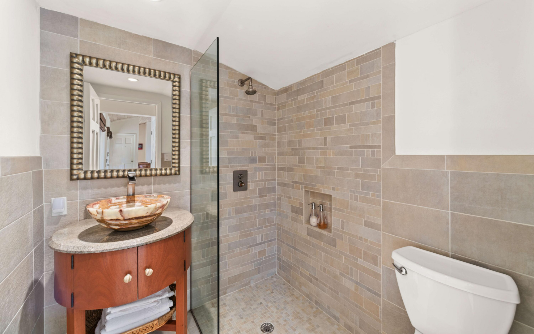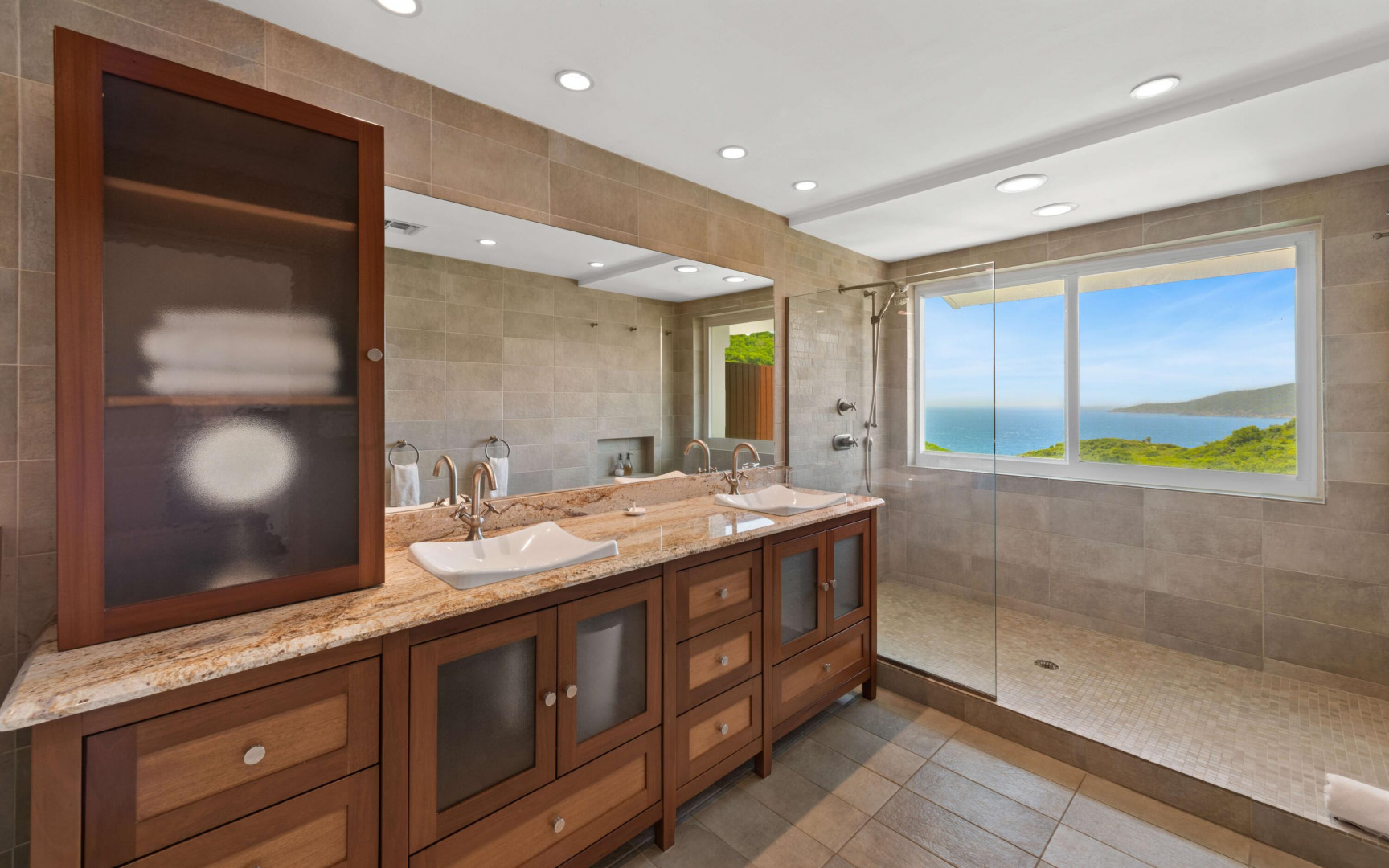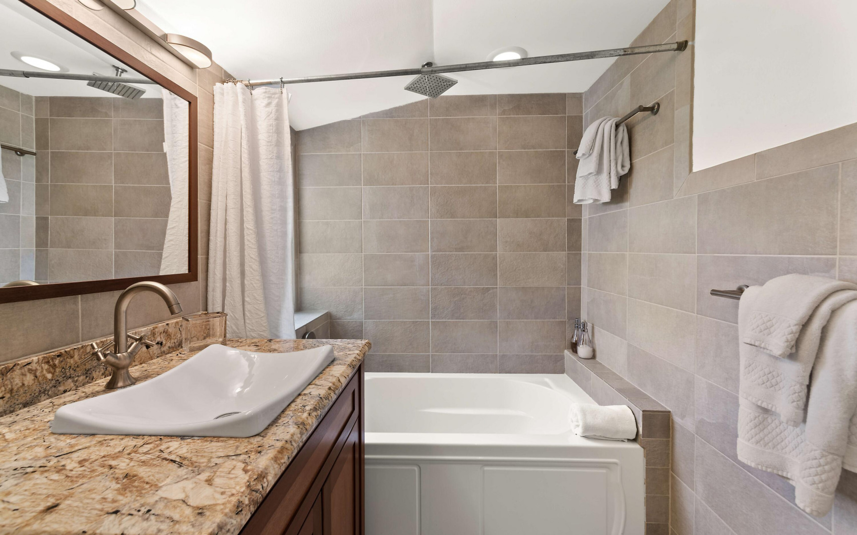 This beautifully renovated, turnkey luxury property is a rare find--blending high-end design, thoughtful upgrades, and true peace of mind. A major renovation approximately 10 years ago brought elegant hardwood-clad vaulted ceilings, custom lighting, and Italian tile throughout the interior and balcony. The spacious, open-concept great room flows into a chef's dream kitchen designed for entertaining, alongside a full-size laundry room for everyday convenience. The primary suite is a serene retreat with ample storage and a spa-like bathroom featuring an oversized walk-in shower and scenic views. Both the primary and secondary bedrooms are en suite with generous closets.The third bedroom, with high-quality built-in bookshelves, desk, and storage, is located next to a full hallway bath, perfect as a guest suite or office.