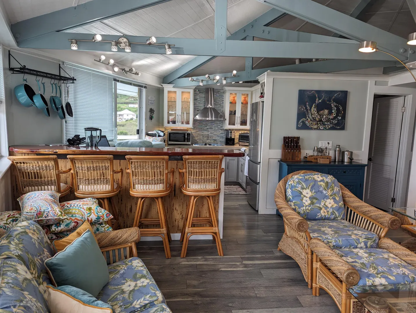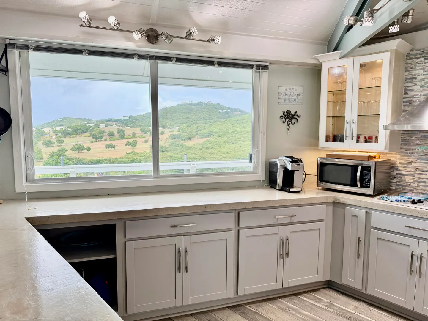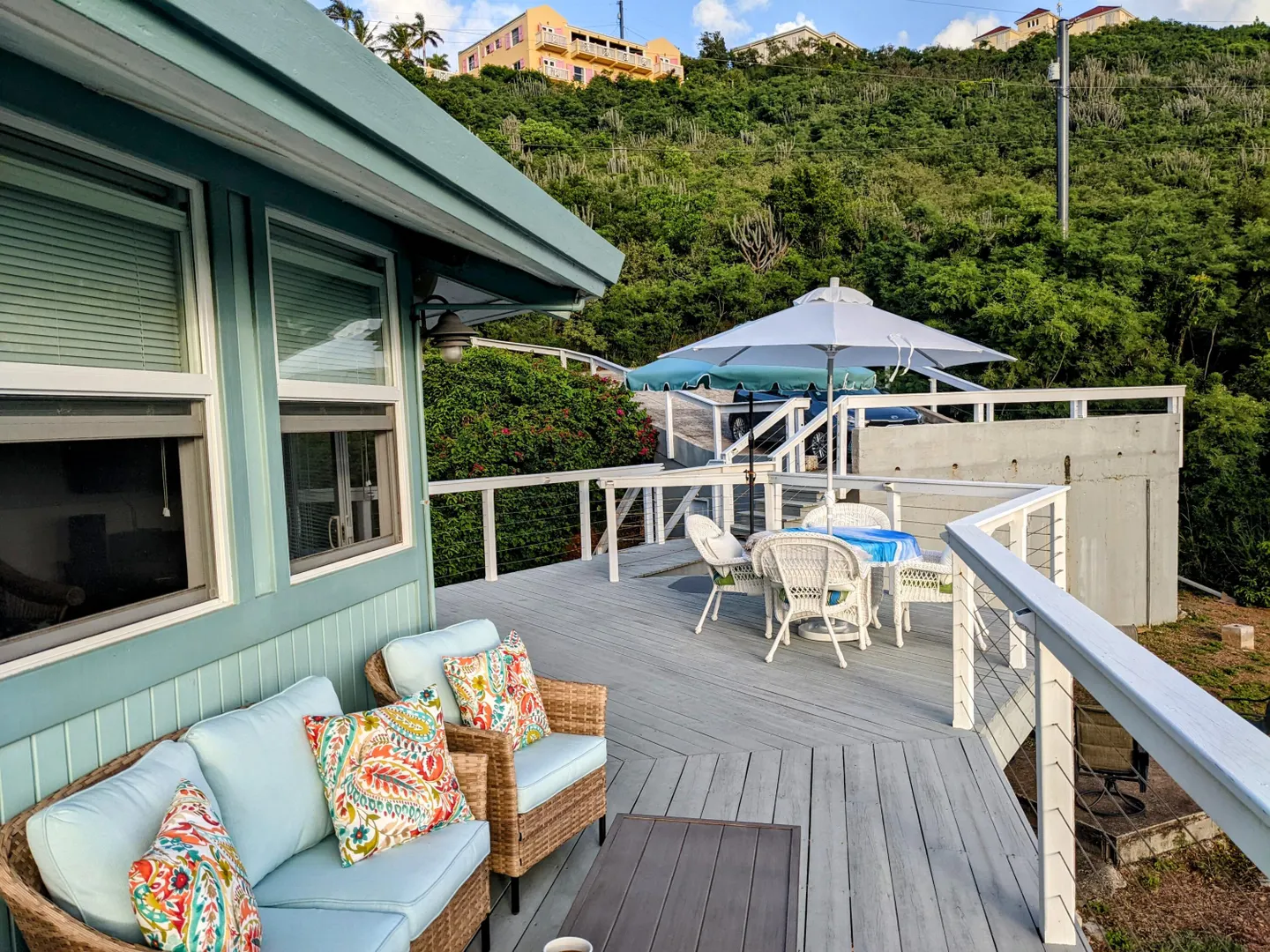 This beautifully furnished, meticulously kept, 2 bedroom/2 bathroom home on the East End of St Croix has a spacious porch to enjoy the Caribbean Sea views. The newly renovated kitchen is fully equipped with everything you could need including a window to easily pass a drink out to the outdoor bar. This rental includes a window AC in each bedroom, washer and dryer, and a sound system with indoor and outdoor speakers. WAPA with a cap of $300/month, internet, landscaping and pest control is included in rent.