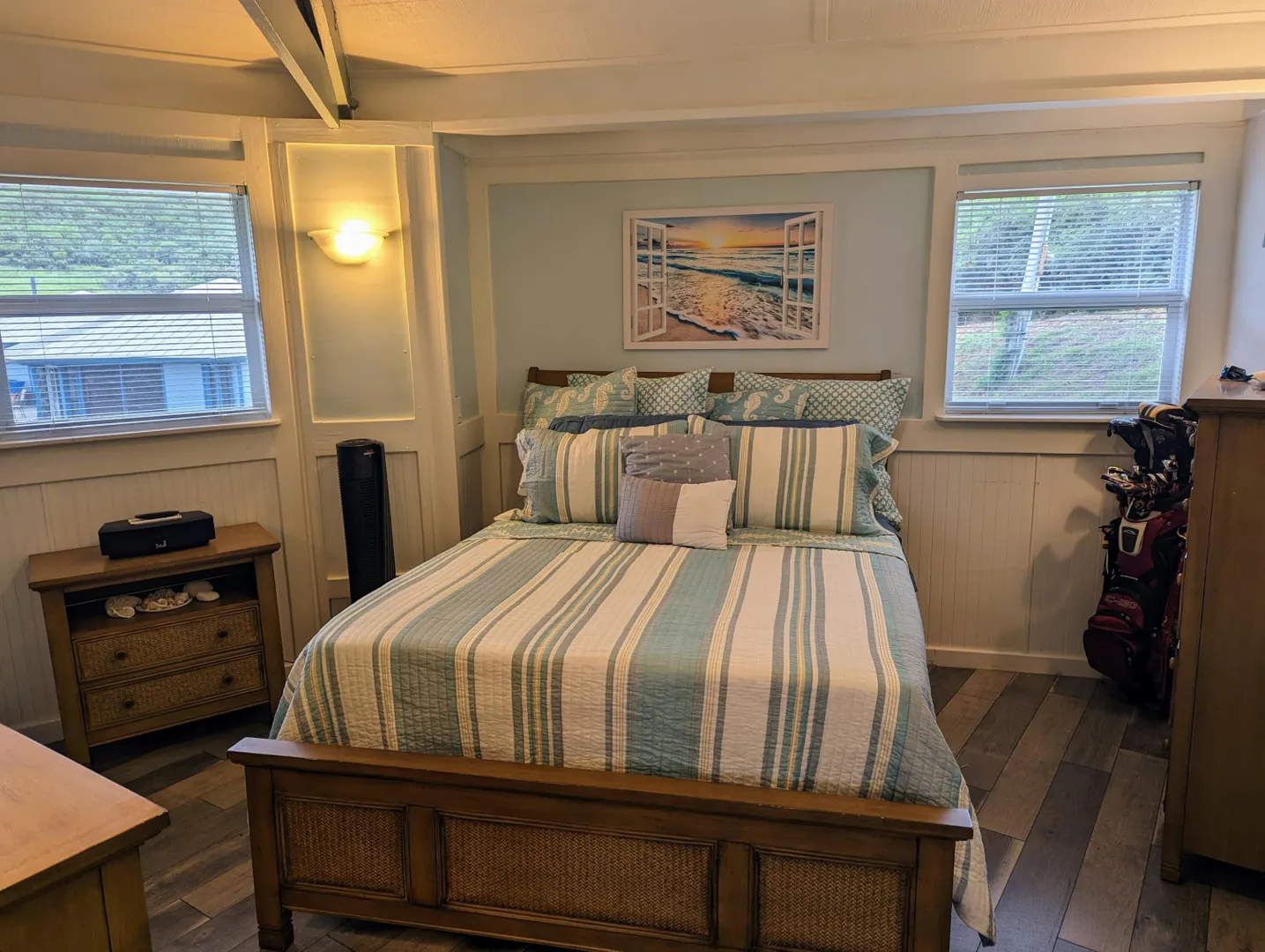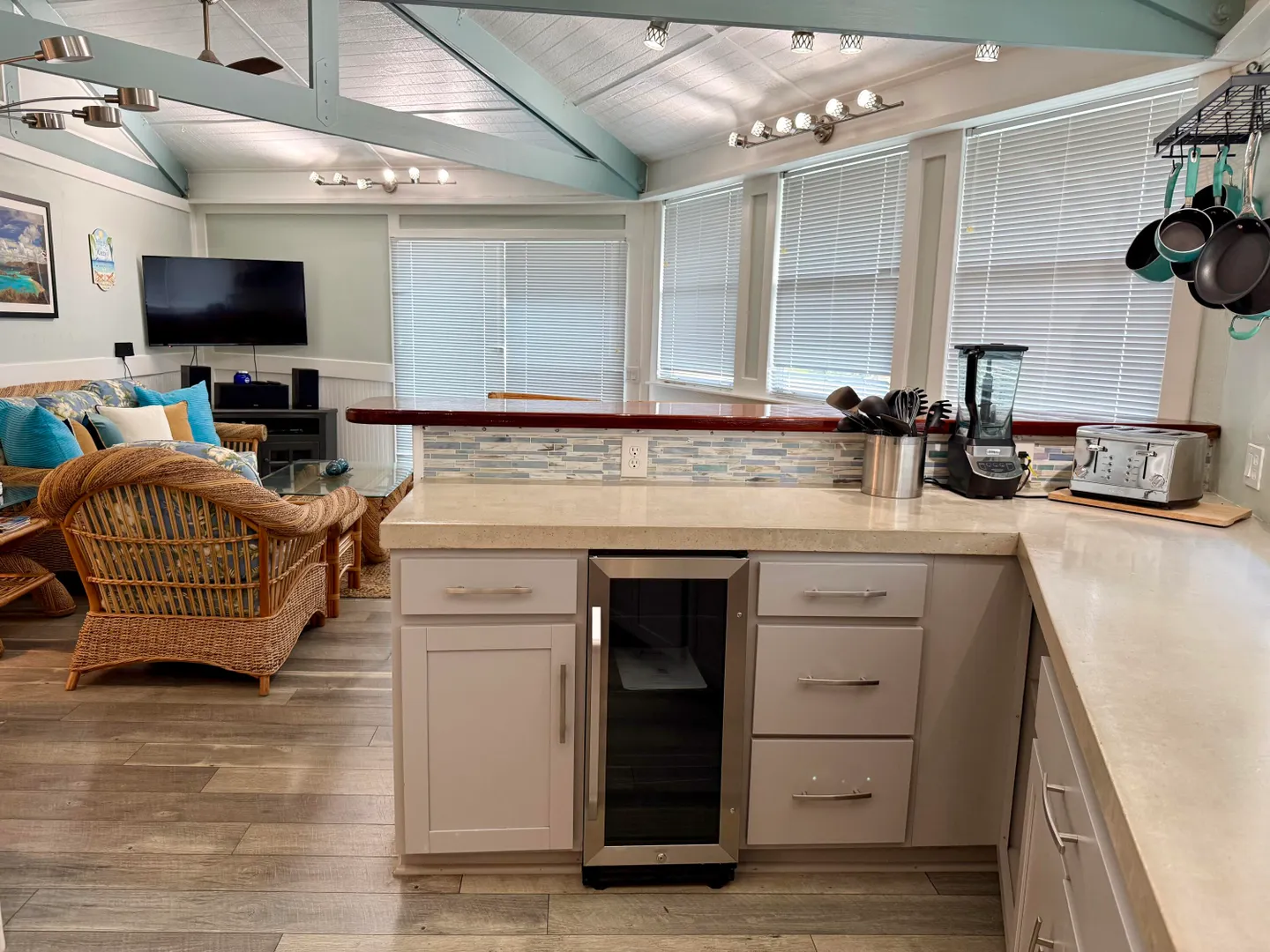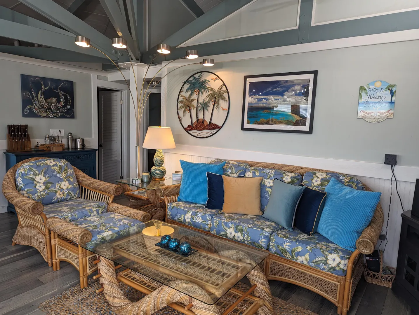 This beautifully furnished, meticulously kept, 2 bedroom/2 bathroom home on the East End of St Croix has a spacious porch to enjoy the Caribbean Sea views. The newly renovated kitchen is fully equipped with everything you could need including a window to easily pass a drink out to the outdoor bar. This rental includes a window AC in each bedroom, washer and dryer, and a sound system with indoor and outdoor speakers. WAPA with a cap of $300/month, internet, landscaping and pest control is included in rent.