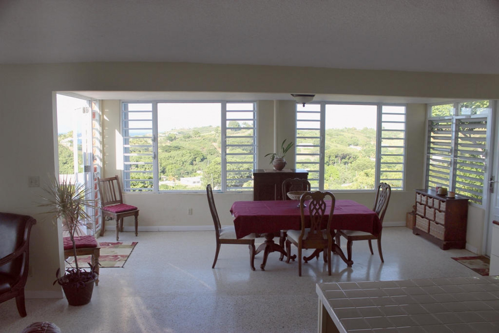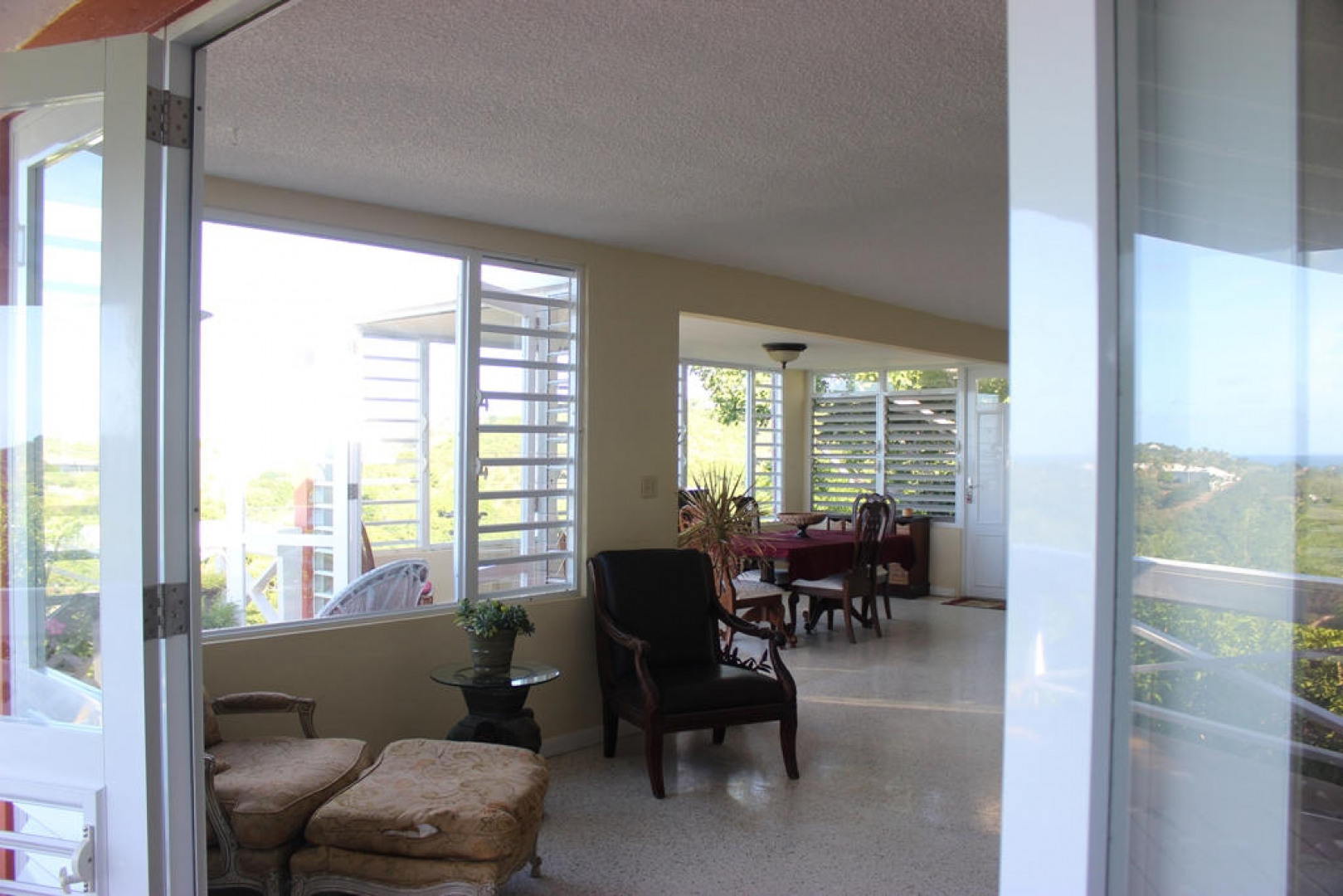 Two magnificent flamboyant trees flank the concrete driveway that leads to this affordable three-bedroom, two-bath home with million dollar panoramic views from Christiansted Harbor to the rolling hills of the Buccaneer golf course. On the crest of the hill in Boetzberg, the location receives cooling easterly trade winds and has a good sized kid and pet friendly rear yard.The home has a large deck/patio area which is wonderful for enjoying the sea view and watching sailboats below. There is a covered portion for relaxing in the shade or dining al fresco and areas that get sun if you want to just catch some rays. The entire deck area has French doors connecting it to the main living area for great flow and easy entertaining. Finish the downstairs apartment and you'll add room for overflow guests, an older parent or a rental unit for extra income. Is also well suited for an in home office or art studio. Plumbing and electrical have been roughed in already. CONSTRUCTION DETAILS: The bulk of the home is concrete including the roof with the exception of the utility room and master bedroom sitting areas which are wood. The downstairs will add an additional 585 square feet of living space when finished. The corners and floor of the downstairs are poured concrete and there is reinforced rebar in the corners as well. RECENT NOTABLE MAINTENANCE - All new doors and windows with impact resistant security glass were added in 2010. - Roof power washed and sealed by Clear Water with 3 year guarantee in November 2013 - Cistern was drained, cleaned, and sealed June, 2010 OTHER INFORMATION: * The property has city trash pickup two times per week. * The 5-kilowatt generator on manual switch runs everything in the house except the washer, dryer and hot water heater. * There is a tri-cartridge water treatment system * The home has a cistern and access to city water as well. The lower level of the home only has access to city water. * No known active homeowners' association. FULL PROPERTY DESCRIPTION: Plot 53 Estate Boetzberg, East End Quarter "A", St. Croix USVIcomprised of 0.3301 US acres more or less as more fully shown on OLG drawing no. 1229-C dated 1/29/63 "House is on Plot 53" Plot 85 and Plot 90 Estate Saint Peters, East End Quarter "A", St. Croix USVI comprised of 0.0123 and 0.0239 US acres more or less, respectively as more fully shown on OLG drawing no. 5136 dated 3/18/99 East End Quarter "A", St. Croix USVI ITEMS THAT ARE NOT INCLUDED: -1 Book Shelf in Bedroom #3 -Sleigh Bed in Bedroom #3 -2 Book Shelves in Bedroom #2 -Half Moon Table in Hallway -Writers Desk in Master Bedroom Sitting Room -All Framed Artwork -All Items in Apartment are not included with the exception of Toilet, Shower, and Stove.