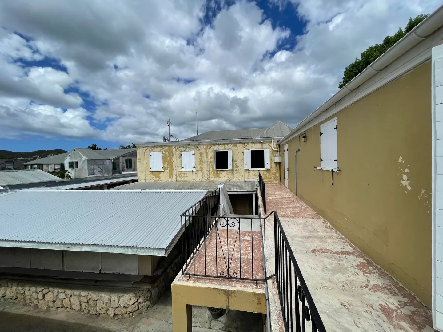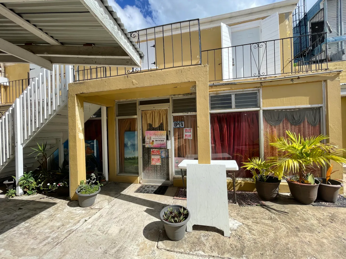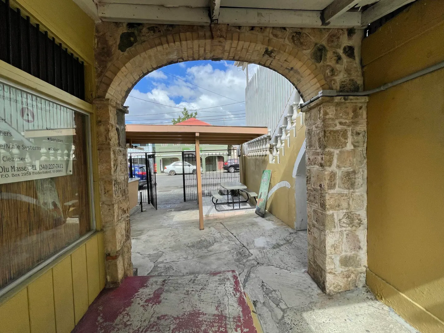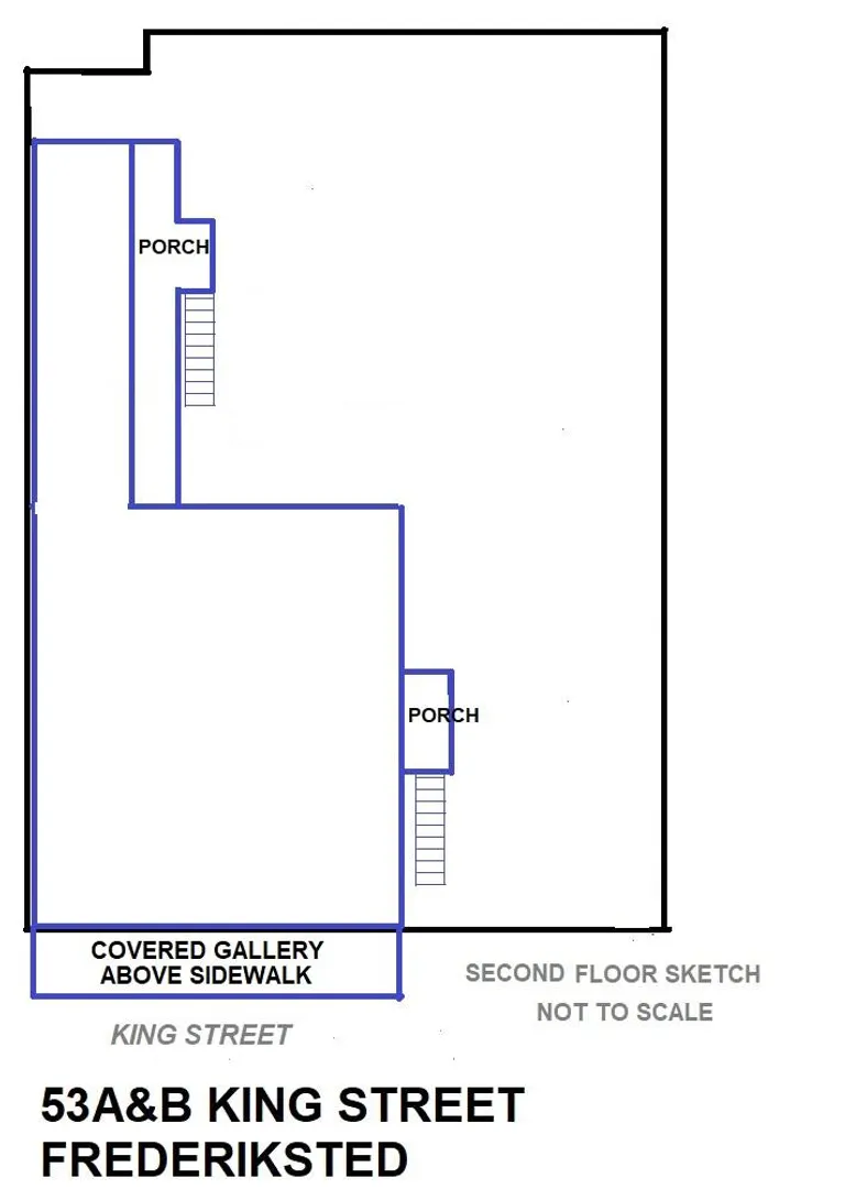 Fantastic opportunity to develop in downtown Frederiksted on high traffic King Street, with very good foot and car visibility. Two story historic property and a charming courtyard with additional buildings offer a multitude of possibilities. The upper level offers large rooms with high ceilings, a historic brick oven, 2 full restrooms and large covered gallery overlooking King Street. Beautiful large windows welcome the sunshine and sea breezes. Peek-a-boo sea view from the back. Multiple lower level units, most of which are currently rented month to month.Wooden shutters and nice iron grillwork. Could be office space, apartments, studio space, shops or cafes. Metered separately for flexibility. Sold as is. Willing to consider Seller Financing.