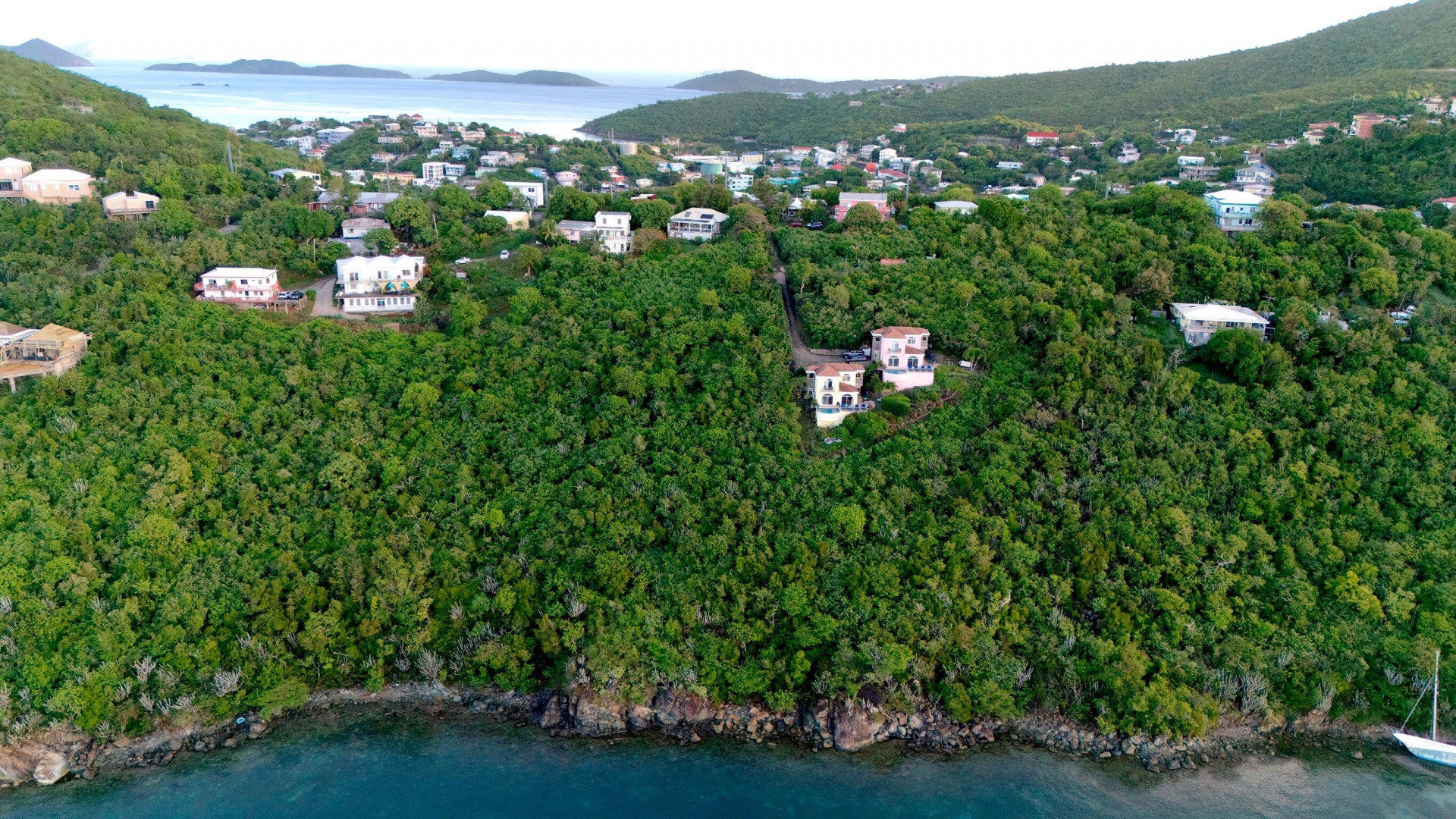Over one acre of privacy close in to Cruz Bay. Enjoy prevailing trade winds from these two southeast facing waterfront parcels totaling 1.26 acres. This level of privacy, within one mile of Cruz Bay, is rare.