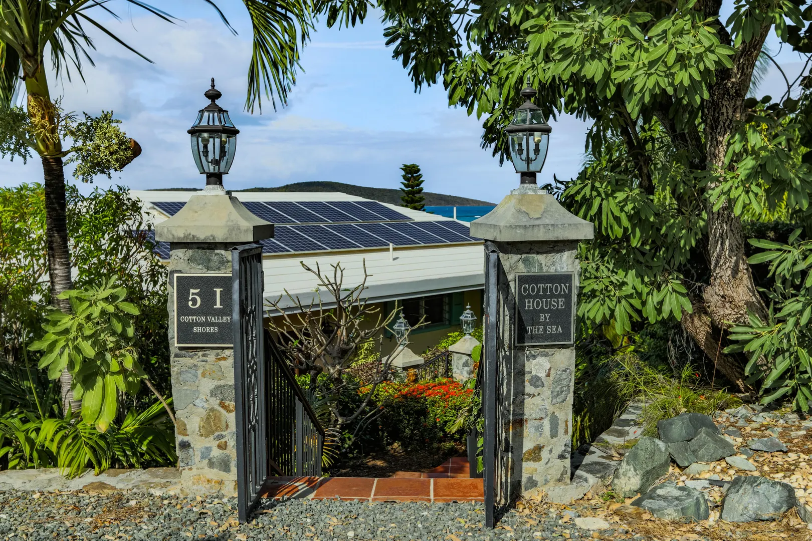 Island living at its best in this beautiful, waterfront villa on the East End. 3-bedrooms, 3-baths, professionally decorated also features solar net-metering, a generator, hand-painted murals by local artist Isabelle Picard, a vaulted ceiling in LR, DR, fully-equipped kitchen which brings the outside in, viewed through the floor-to-ceiling impact glass sliders. All three air-conditioned en-suite bedrooms provide access to outdoor spaces such as an outdoor shower & lounging decks. The spacious main suite includes a sitting area & deck outside. Outdoor living spaces include a large covered gallery w/ dining area and expansive sundeck to enjoy magnificent views over the pool to the Caribbean Sea and Buck Island. HOA is $250/YR