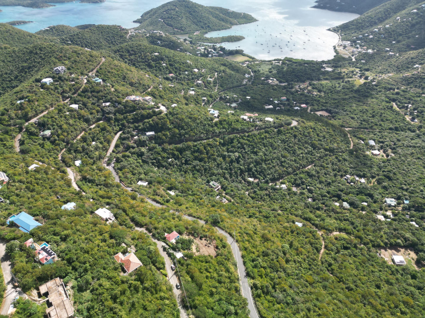 Half acre downhill build situated above Coral Bay Harbor in Upper Carolina subdivision offering expansive sea views, paved access & utilities nearby. Deeded beach rights to Johnson Bay