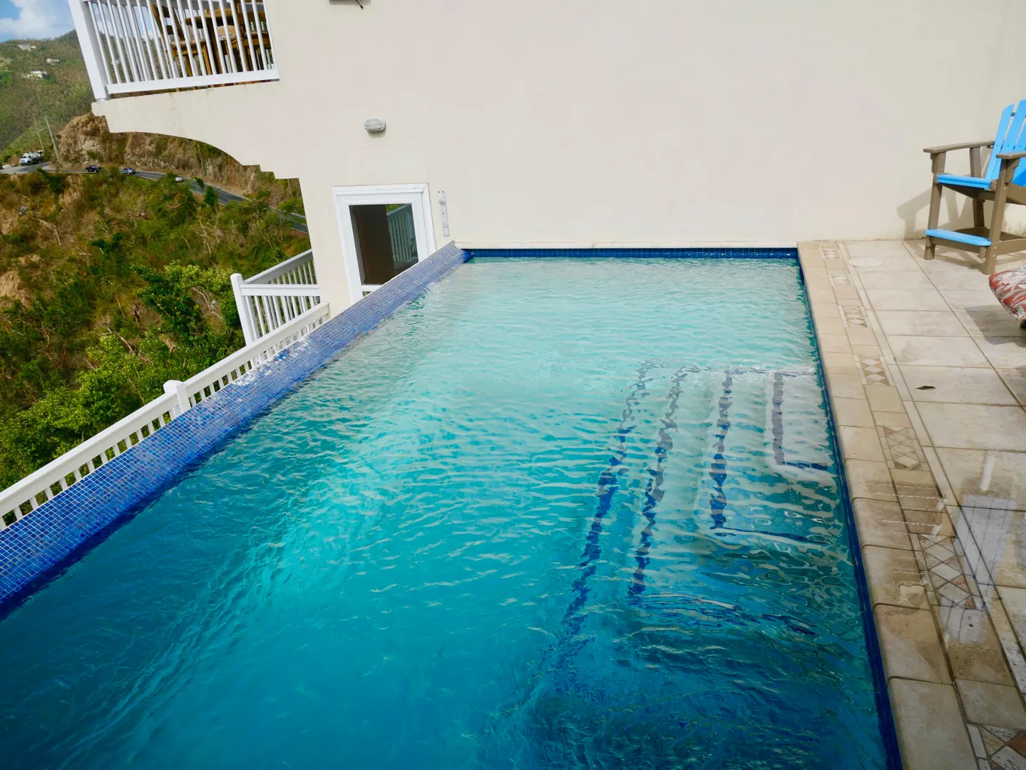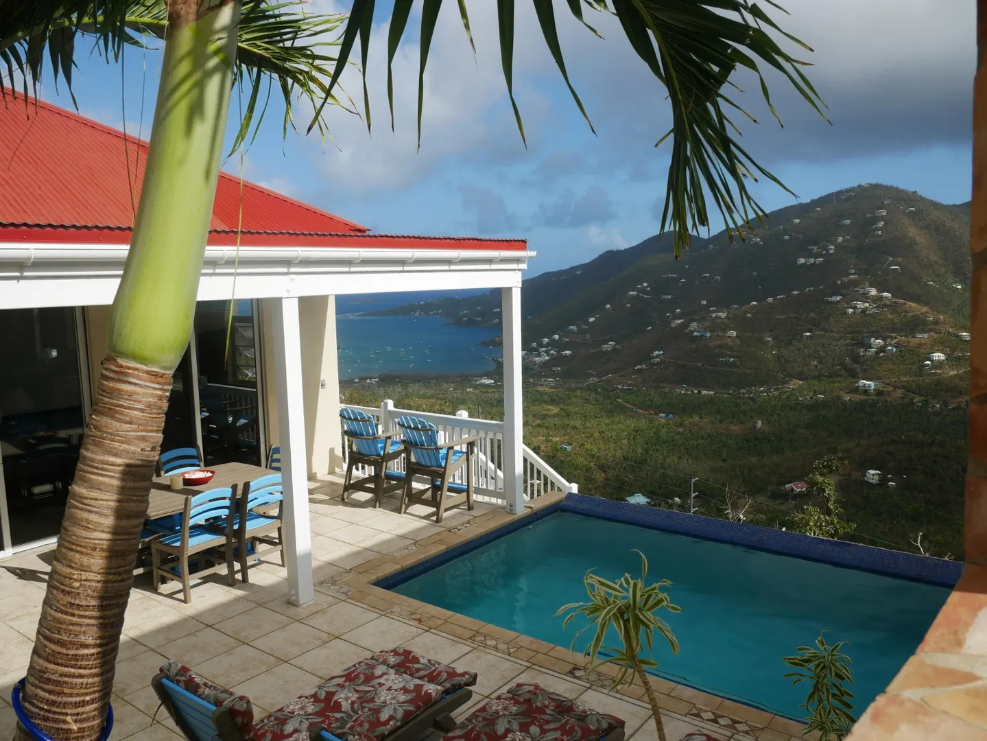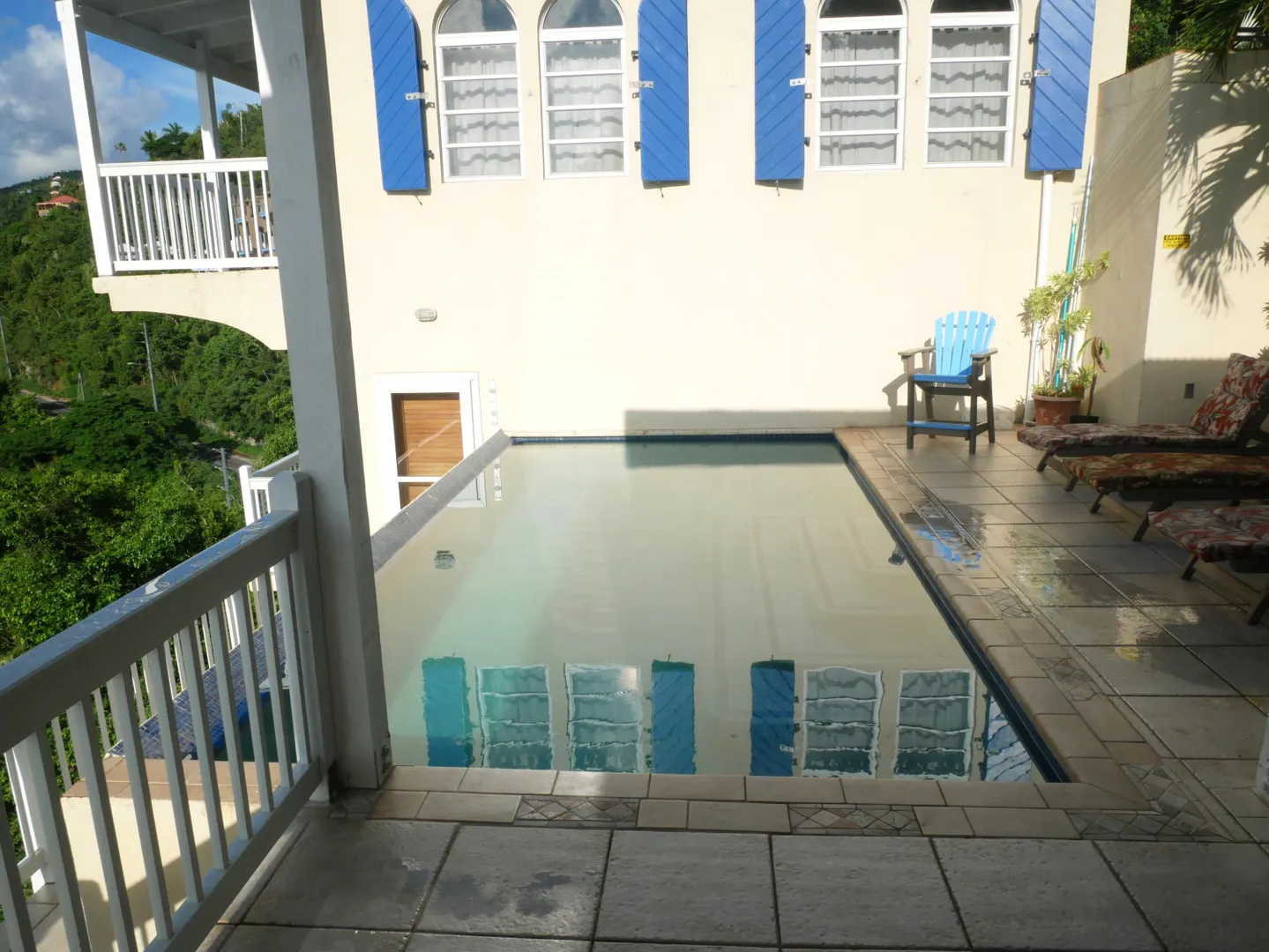 Blue Palm Villa, a custom masonry pool villa, located in Upper Carolina offers it all! Descend the curved walkway to be greeted by an inviting masonry pool & covered patio overlooking Coral Bay Harbor. The main pod offers a spacious great room w/Italian tile floors, beautiful kitchen w/mahogany cabinets & granite counter tops along w/the master bedroom & bath with private balcony. The 2 story guest pod offers 2 bedrooms with en-suite baths each offering private balconies. The upper level guest bedroom also boasts a complete kitchen with mahogany cabinets & granite counter tops. All 3 bathrooms offer Italian marble showers & countertops along with mahogany vanities. A/C throughout, 22kw propane generator w/transfer switch & gated driveway finish off this successful short term rental Villa.
