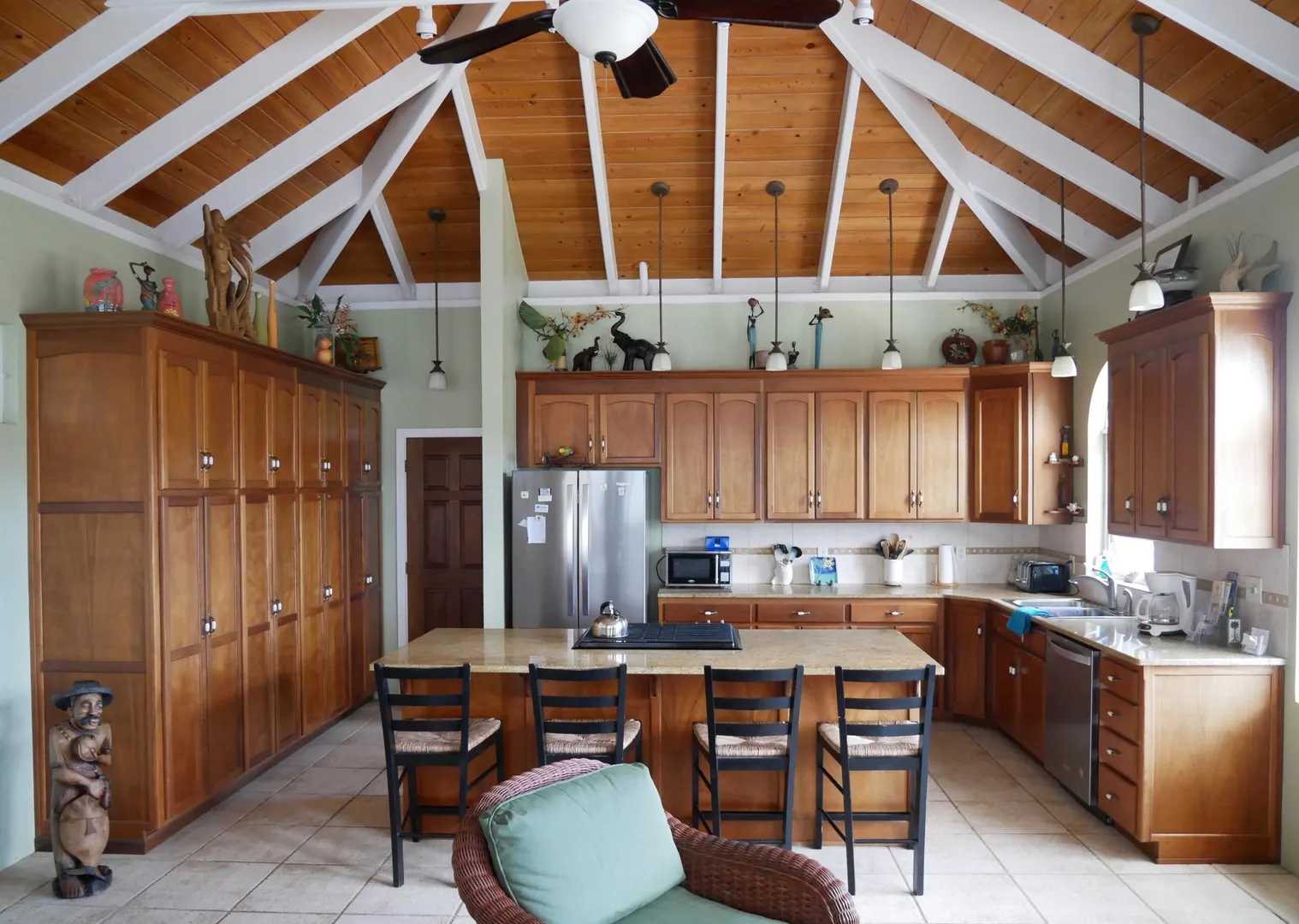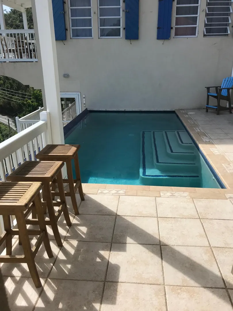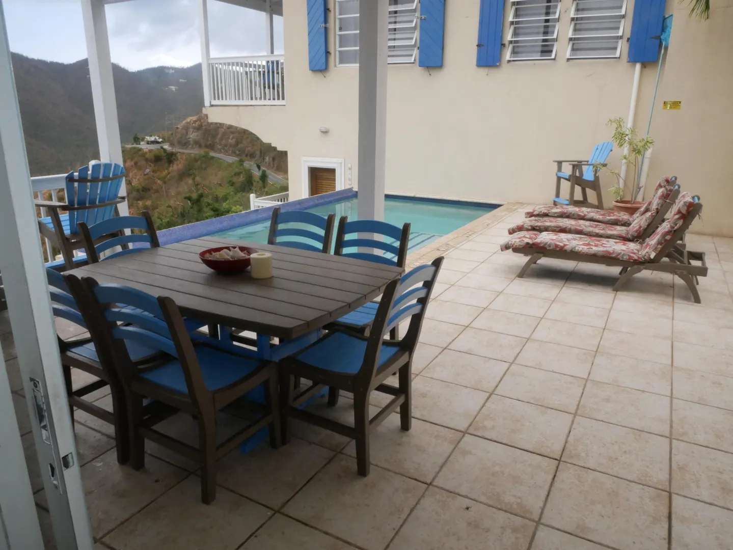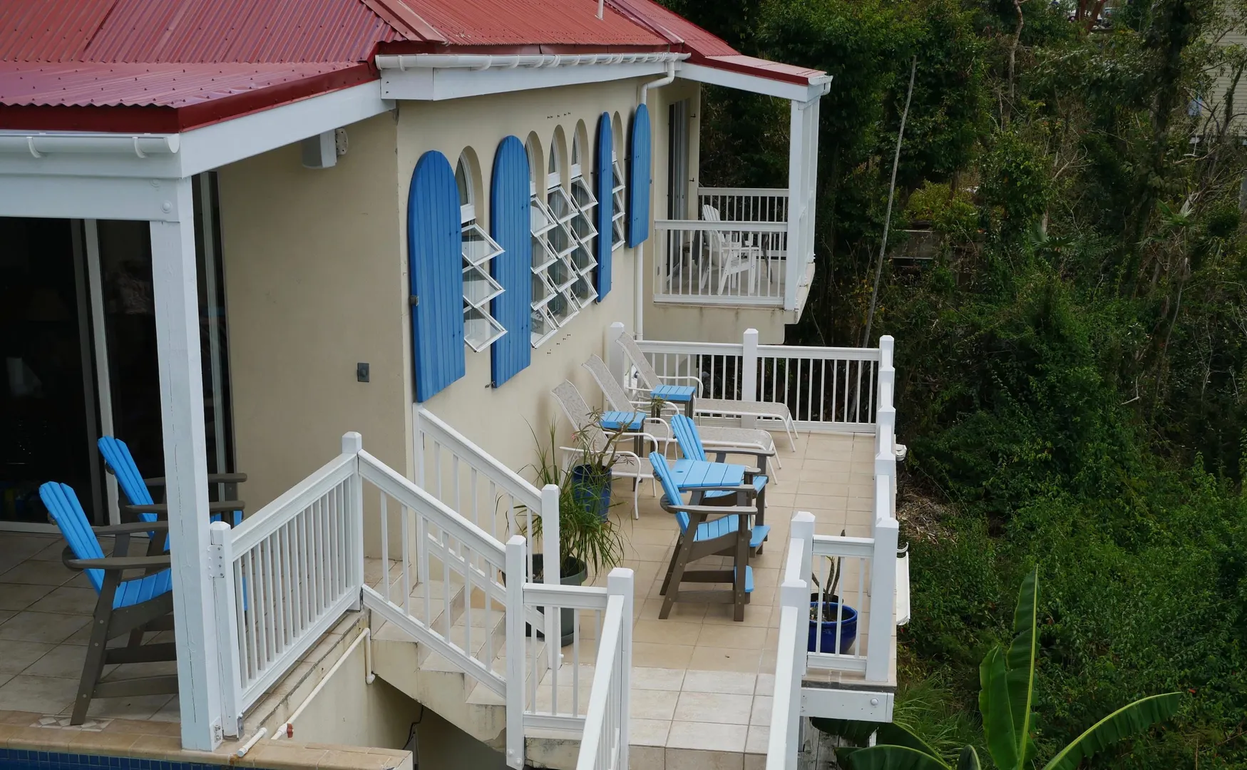Blue Palm Villa, a custom masonry pool villa, located in Upper Carolina offers it all! Descend the curved walkway to be greeted by an inviting masonry pool & covered patio overlooking Coral Bay Harbor. The main pod offers a spacious great room w/Italian tile floors, beautiful kitchen w/mahogany cabinets & granite counter tops along w/the master bedroom & bath with private balcony. The 2 story guest pod offers 2 bedrooms with en-suite baths each offering private balconies. The upper level guest bedroom also boasts a complete kitchen with mahogany cabinets & granite counter tops. All 3 bathrooms offer Italian marble showers & countertops along with mahogany vanities. A/C throughout, 22kw propane generator w/transfer switch & gated driveway finish off this successful short term rental Villa.