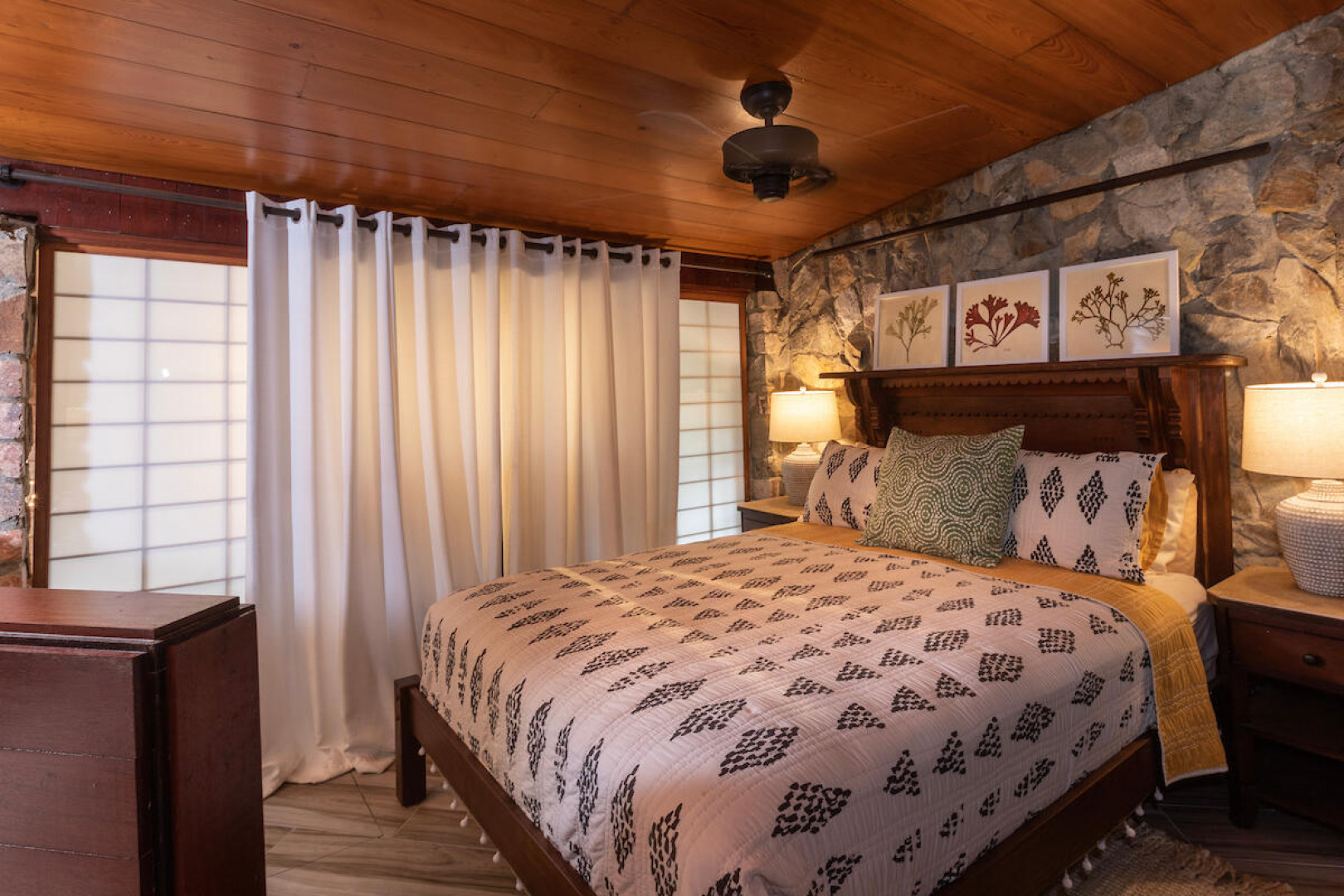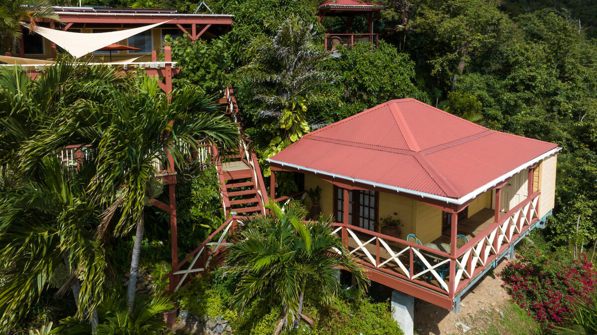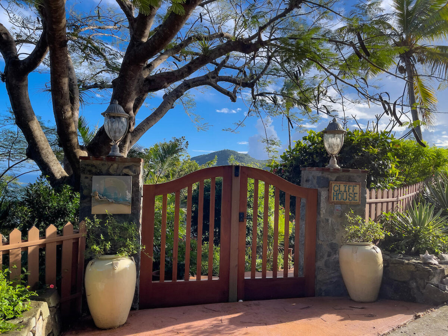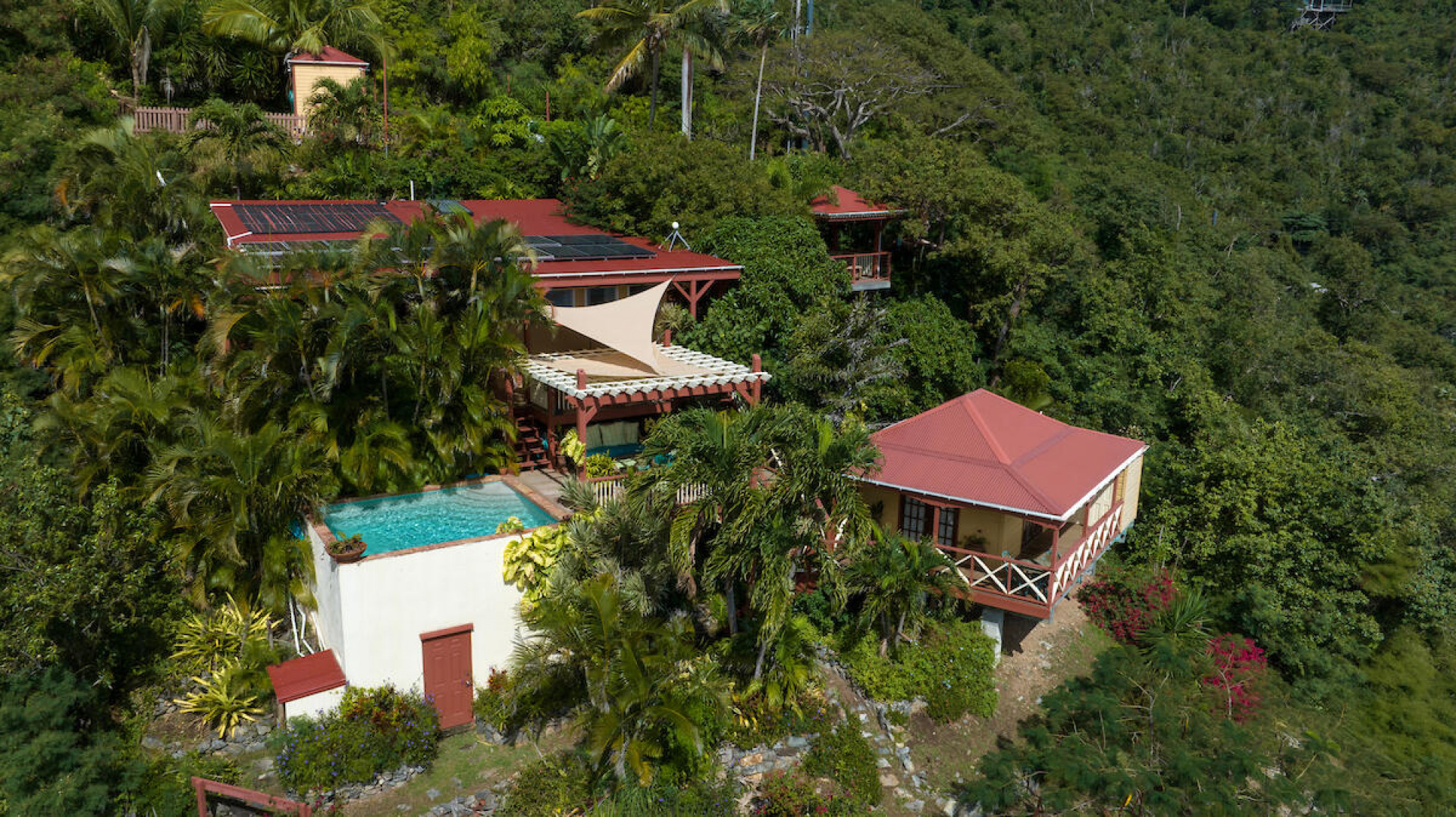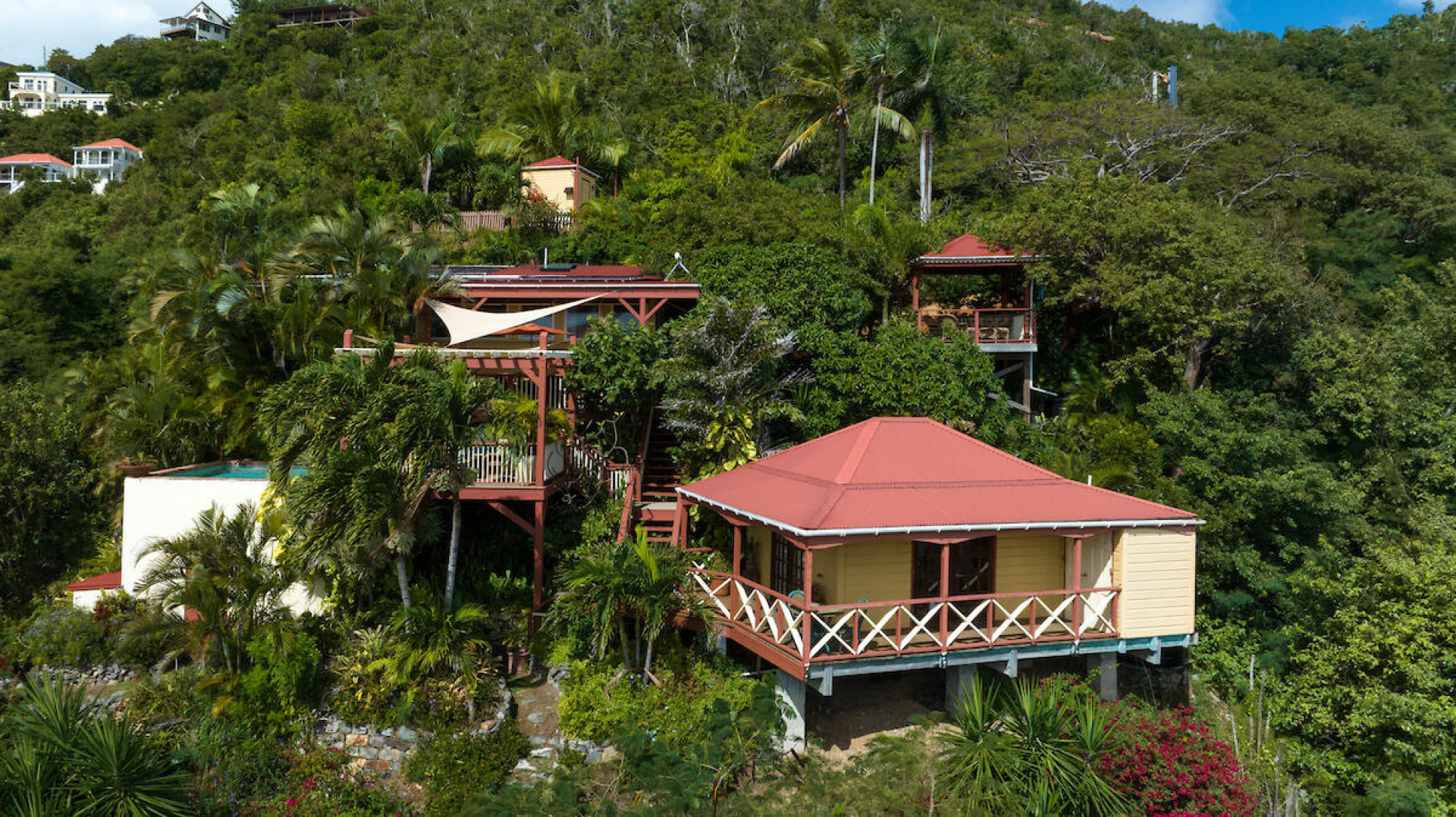 ''Cliff House'' is a lovely jewel box of a home sited on a lushly landscaped half acre that offers a picture perfect framed view of Coral Harbor and beyond. Architect designed, the cozy inviting interior is crafted of stone and rich, warm woods. It features a gated entry in a private ''end of road'' setting located in Upper Carolina with deeded beach access to Johnson's bay. This well-maintained home consists of a beautifully furnished main house with open floor plan, main house and outdoor gazebo joined together by a solar-heated saltwater dipping pool and trellised sundeck. There are multiple outdoor areas from which to enjoy the views and breezes. Currently used as a secondary private residence but could be a short-term rental if desired.