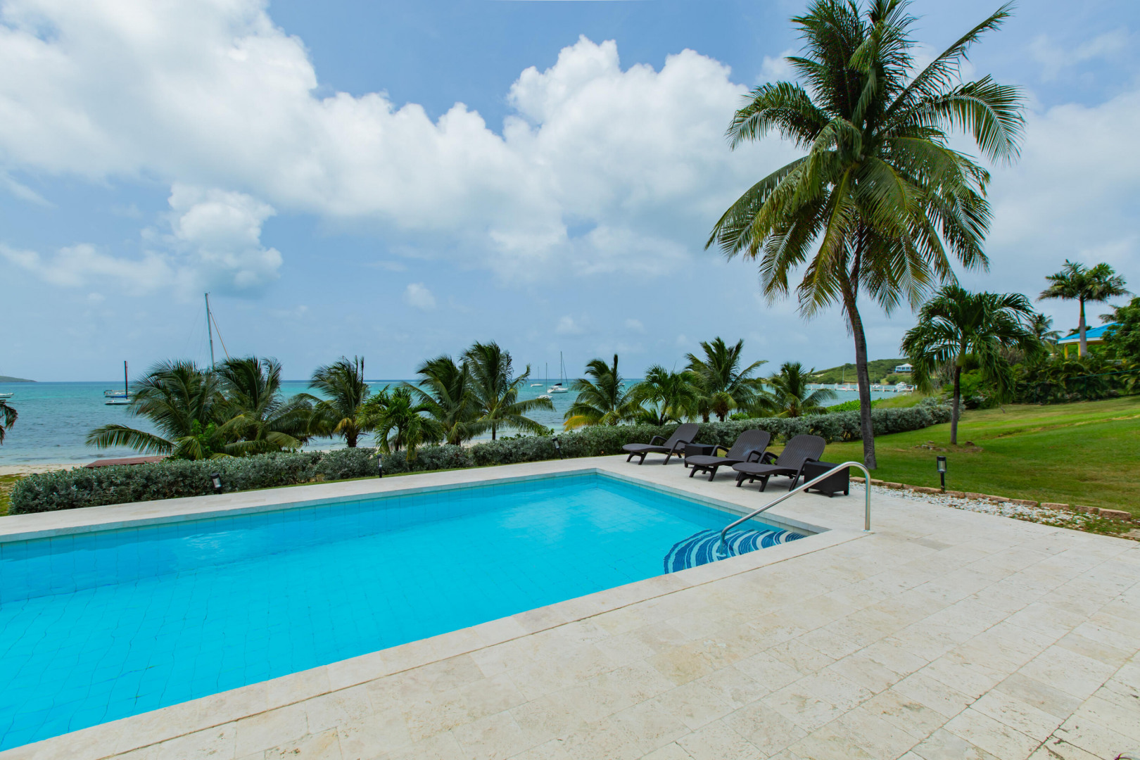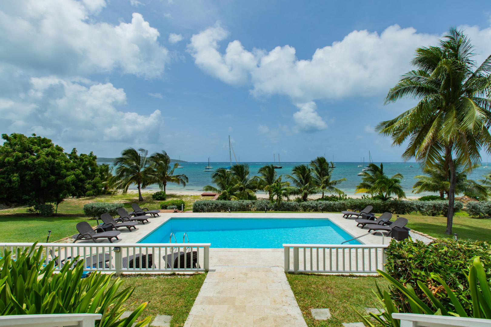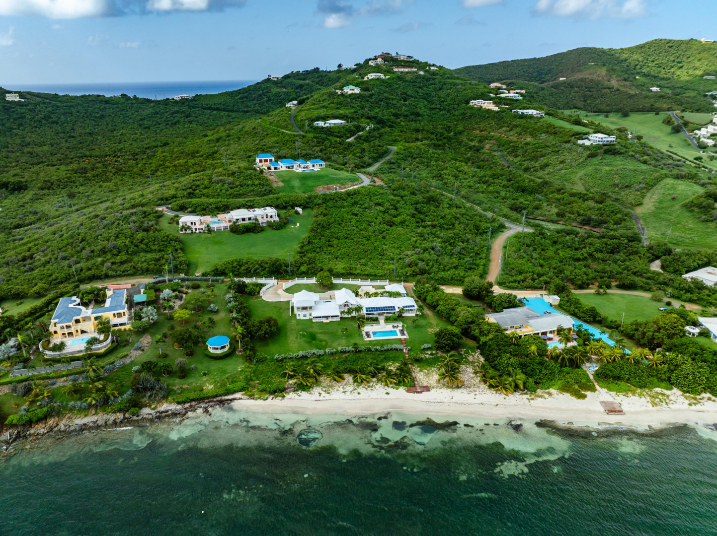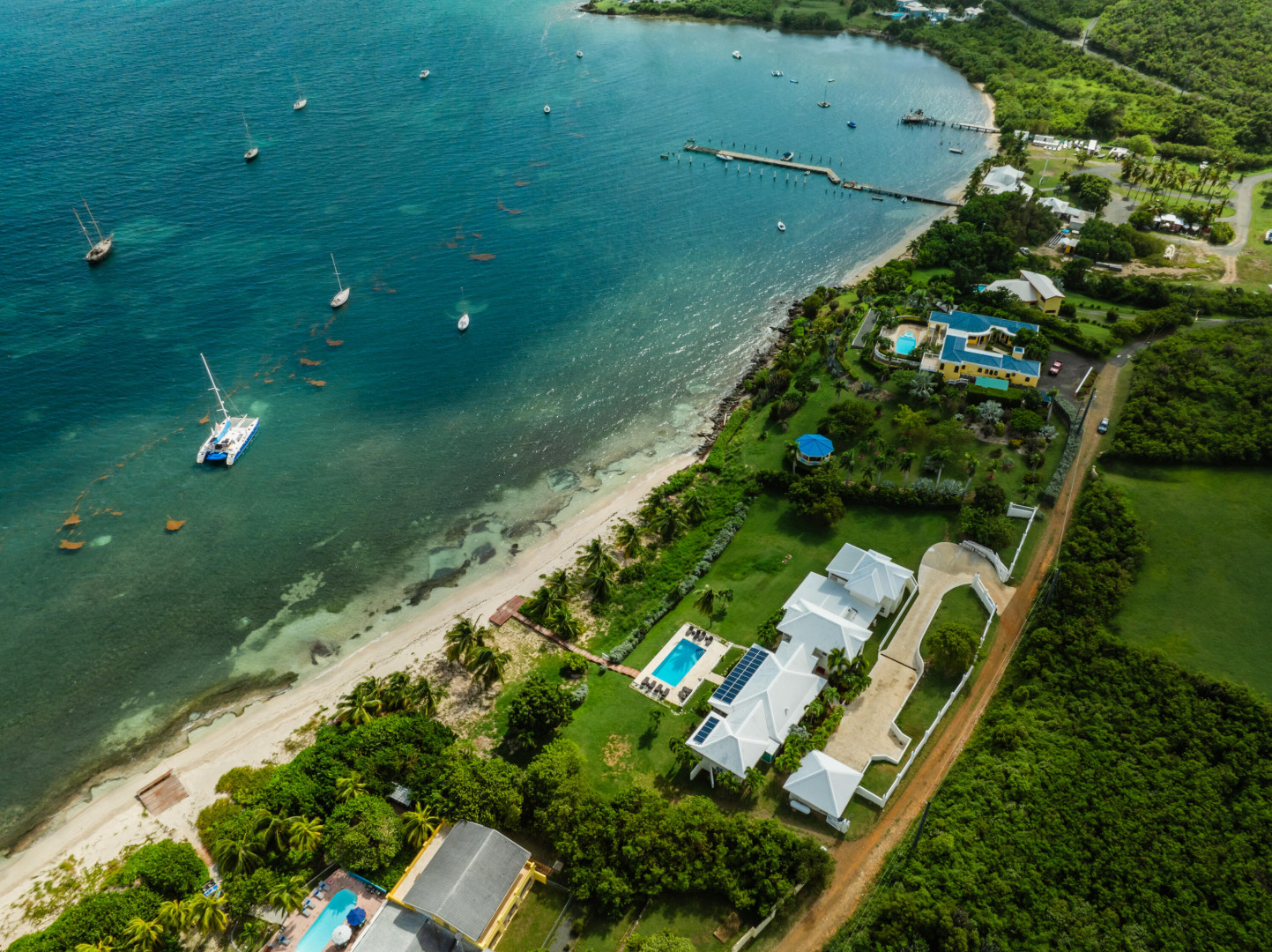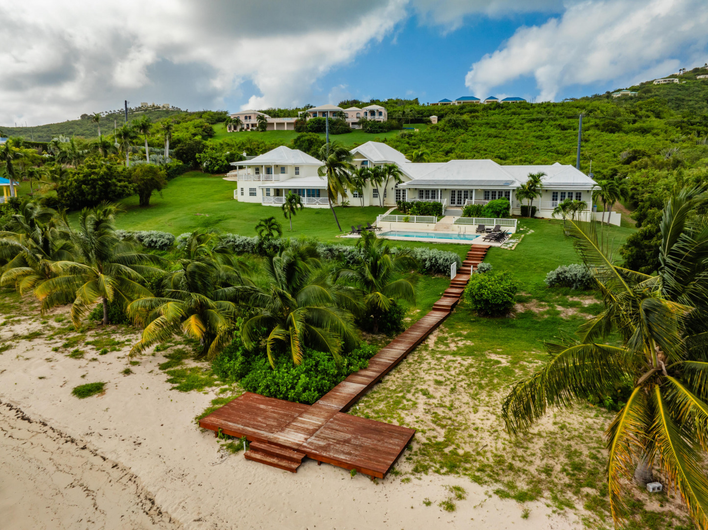 ** RECENTLY UPDATED with new furnishings inside and out, repaired windows, solar panels installed, putting tiles on the concrete driveway, freshly painted inside, cleaning & re-grouting the showers, and new exterior lighting fixtures! This is stunning beach front home w/ over an acre of land located directly on a gorgeous sandy beach. Beautiful views of Buck Island & all of Teague Bay from every room & patio. Featuring chefs kitchen, pool, automatic generator, 2 master bedrooms w/ en-suite baths and balconies. 4 additional bedrooms (including a bunk room) & 3 additional bathrooms. This home makes for a perfect family retreat, vacation home (rents for over $1500 per night!) . Excellent opportunity to take over the existing rental income flow and book out the weeks you want for yourself!