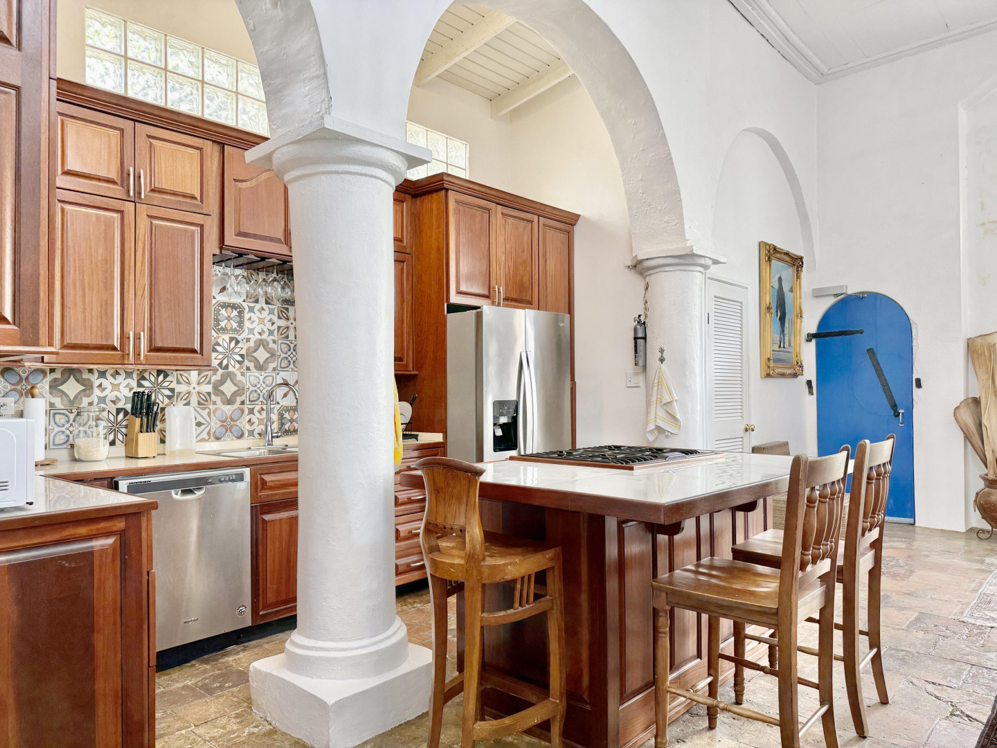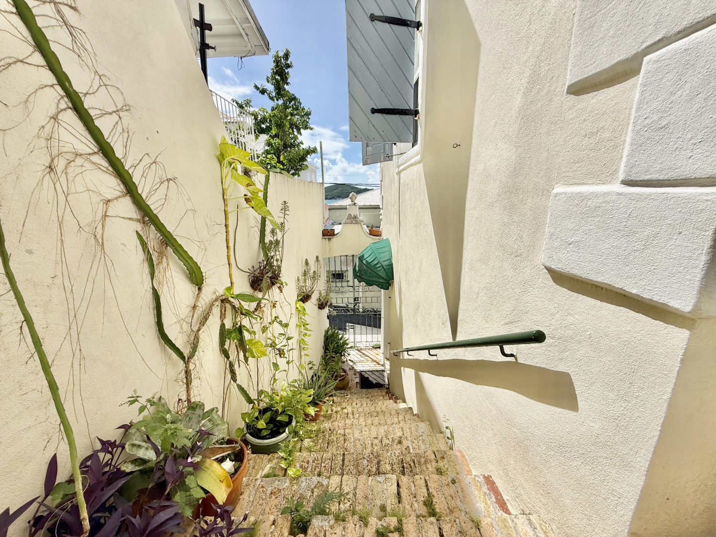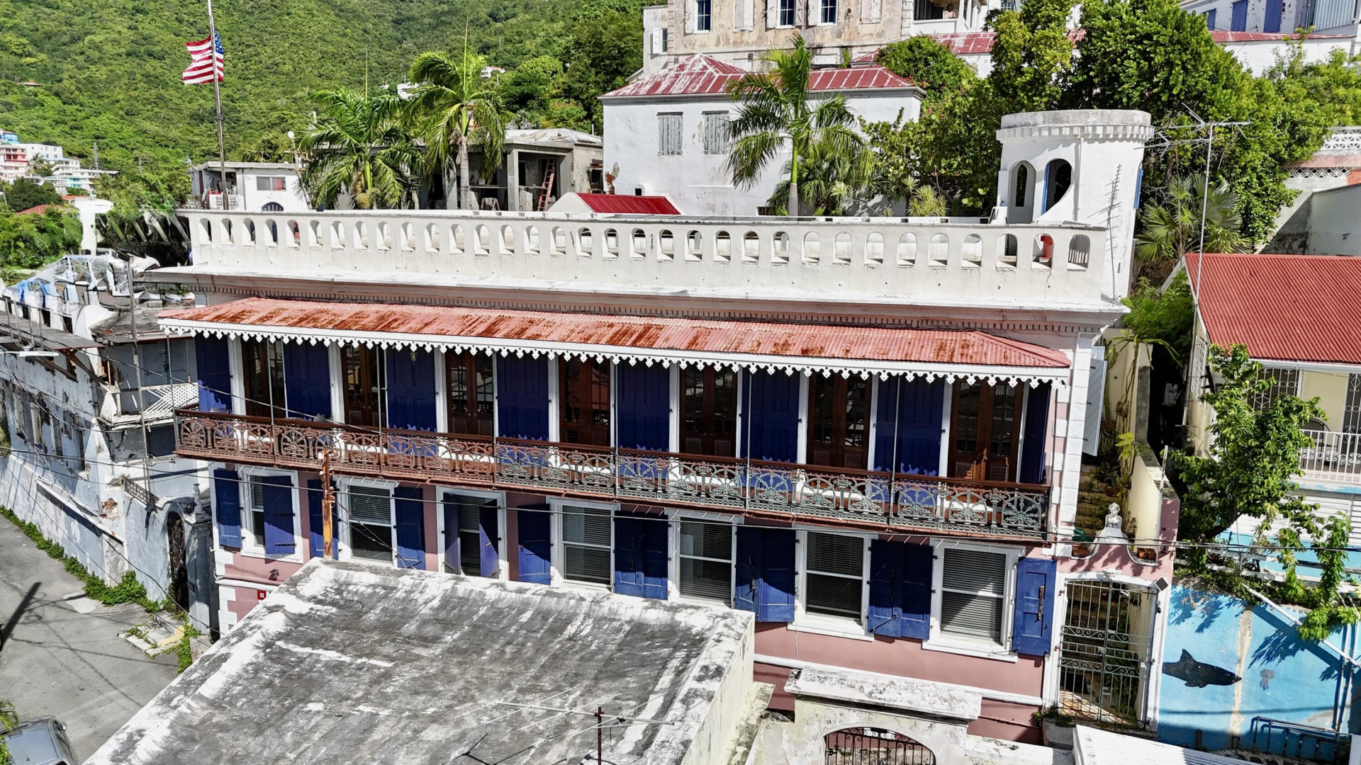 Experience a rare opportunity to own a distinguished piece of Virgin Islands heritage. Originally built in the 1700s, with a recorded deed dating to 1804, this architectural masterpiece seamlessly blends historic grandeur with modern sophistication. Soaring vaulted ceilings, graceful archways, mahogany floors, and intricate ironwork evoke timeless elegance, while solar power, air conditioning, and Starlink internet ensure contemporary comfort. Main residence features three bedrooms, two baths, an entertainment lounge, and a private rooftop terrace. Four beautifully appointed rental suites offer income potential. Perfectly situated in Charlotte Amalie near fine dining, boutiques, and ferries, this storied estate once owned by notable figures--embodies the enduring legacy of island luxury.