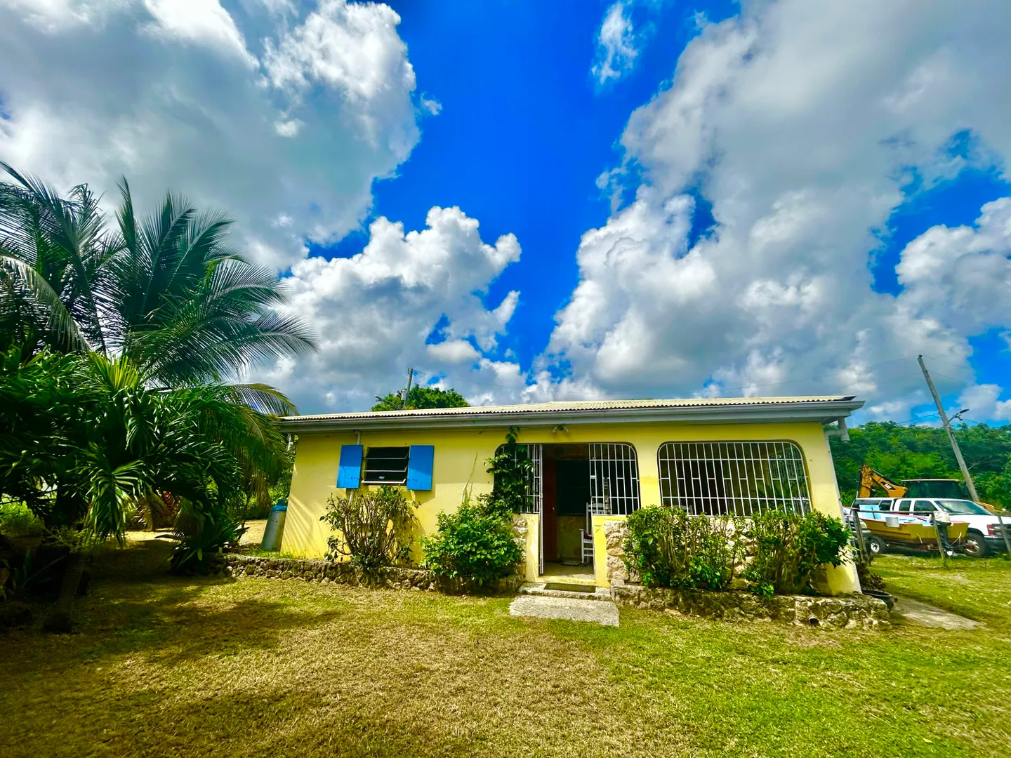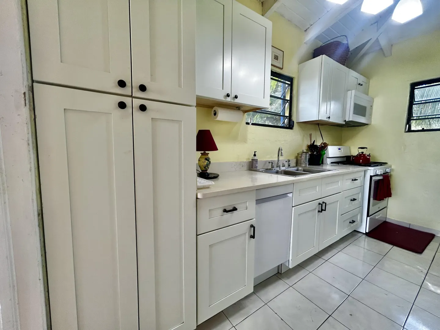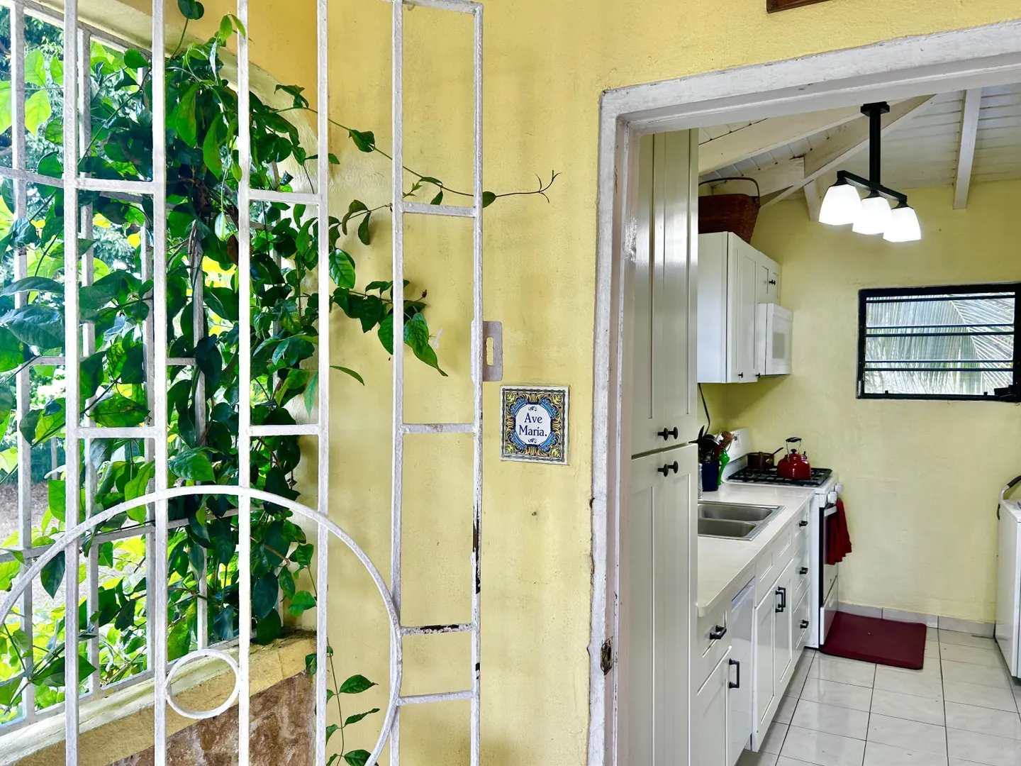Mid Island Oasis. So sweet, so serene in this cozy and solid 2 bedroom/1 bath home with a new galley style kitchen. Quartz countertop, wood cabinets, gas stove, petite dishwasher, washer and dryer, 5.5 kw gas generator. Comfy, secure gallery with cooling tropical breezes. Fully fenced, perfect for pets. Delightful relaxation corner with shade and sitting area and included picnic table. Loads of tropical plantings and fruit trees. Detached workshop/storage.