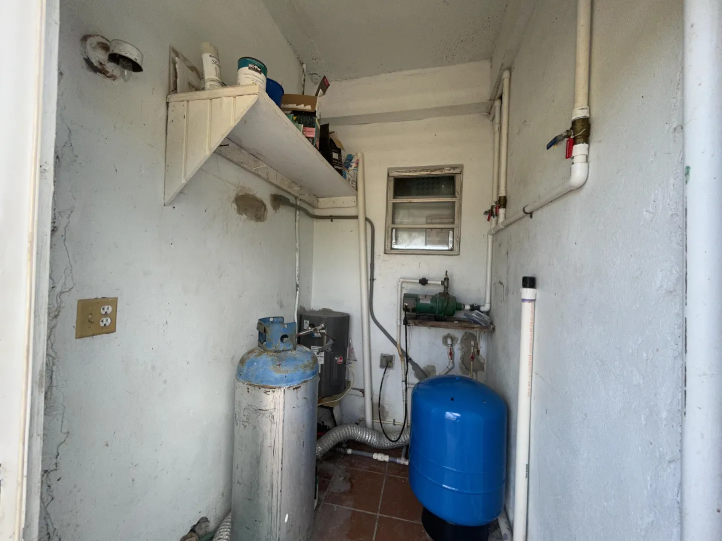 Take a look inside.. you will be rewarded. This spacious 3 bedroom/2 bath home has been very tastefully remodeled. New kitchen with SS appliances and new granite countertops. The hall bathroom is a show stopper. Soaring cathedral ceilings. The fully renovated 2 bedroom/1 bath apartment is a popular Airbnb short term rental with its own private driveway. Former garage is now storage but could easily be converted back. Complete with 3 cisterns, 2 of which have been cleaned and recoated. Situated in the serene Queen Quarter neighborhood, close to Sunny Isle Shopping Center, banking, hospital, doctors, dentists, movie theater, coffee shop, restaurants and a quick drive to some of the best beaches, tennis and golf.