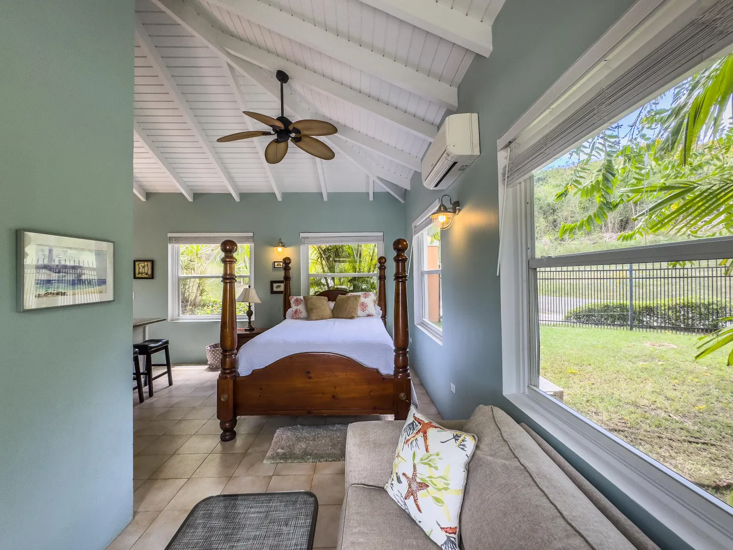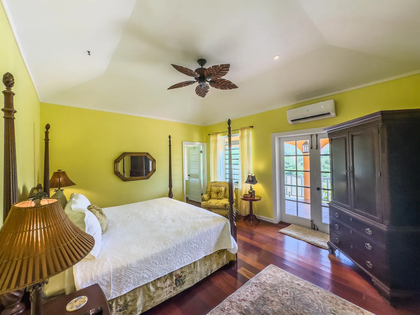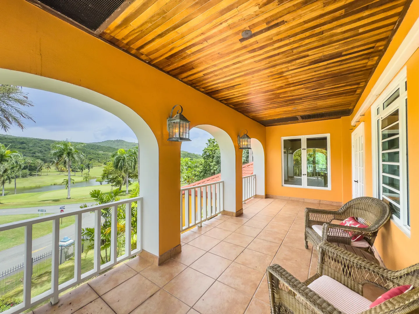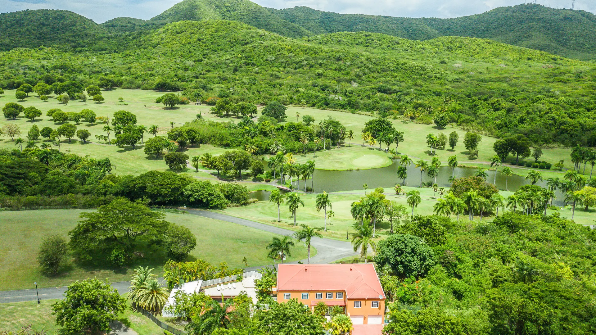 Welcome to Ginger Fancy at 66 Estate River--a stately, fully gated Caribbean retreat offering timeless style, resort-caliber amenities, and breathtaking golf course views. This exceptional estate overlooks the 4th green of the Robert Trent Jones-designed golf course at Carambola Country Golf Club, delivering a serene, picture-perfect backdrop for everyday living and entertaining.The main residence features 4 bedrooms and 4 baths, including a spacious living and dining room, an entertainment/theater room, and a wet bar ideal for hosting. The updated kitchen is supported by a convenient staging area, and the home is thoughtfully designed with a first-floor laundry room and a huge two-car garage with ample extra storage.Upstairs, the primary suite is a true sanctuary with a large private balcony, an oversized bath with his-and-her vanities, a separate shower, and a stand-alone tub. The suite is complemented by a massive, air-conditioned walk-in closet. A guest bedroom also enjoys its own balcony, and additional guest rooms feature walk-in closets for comfort and convenience.