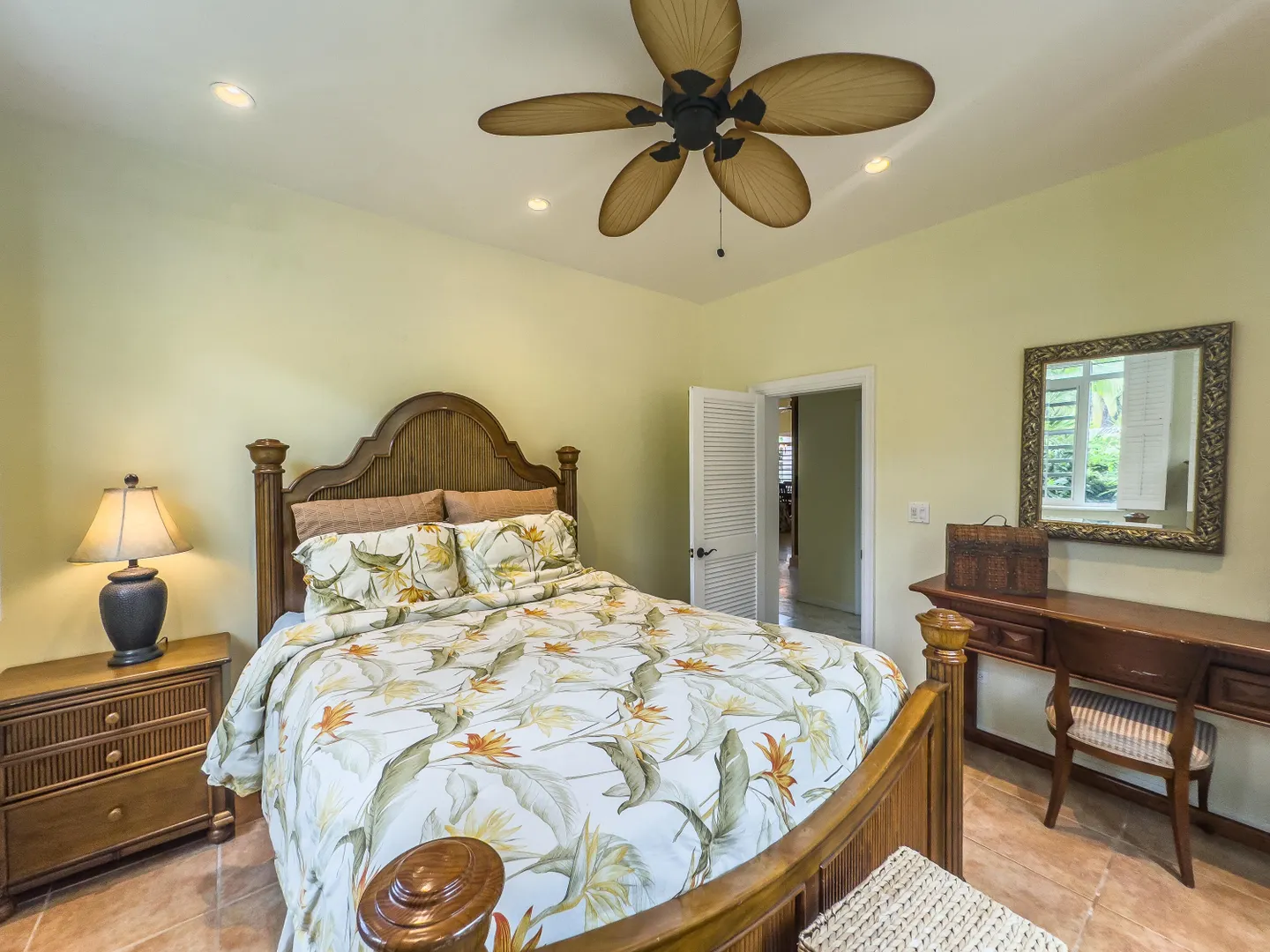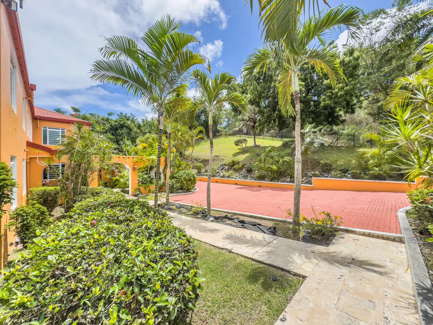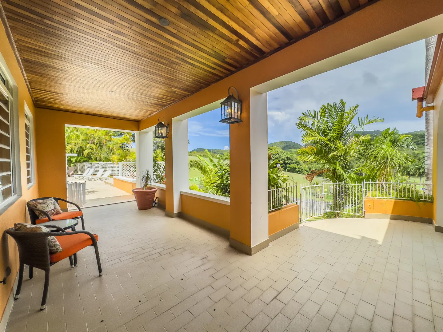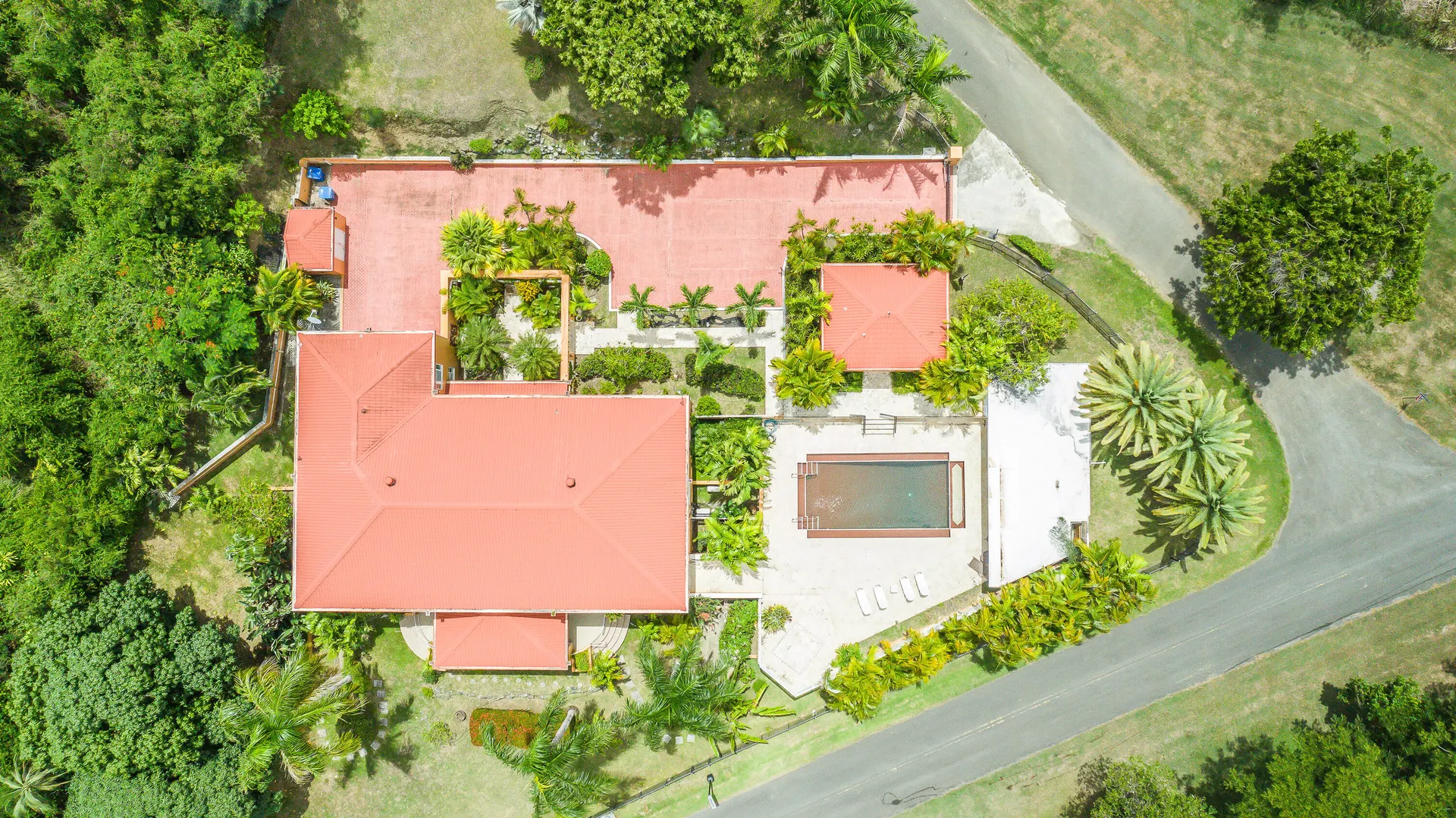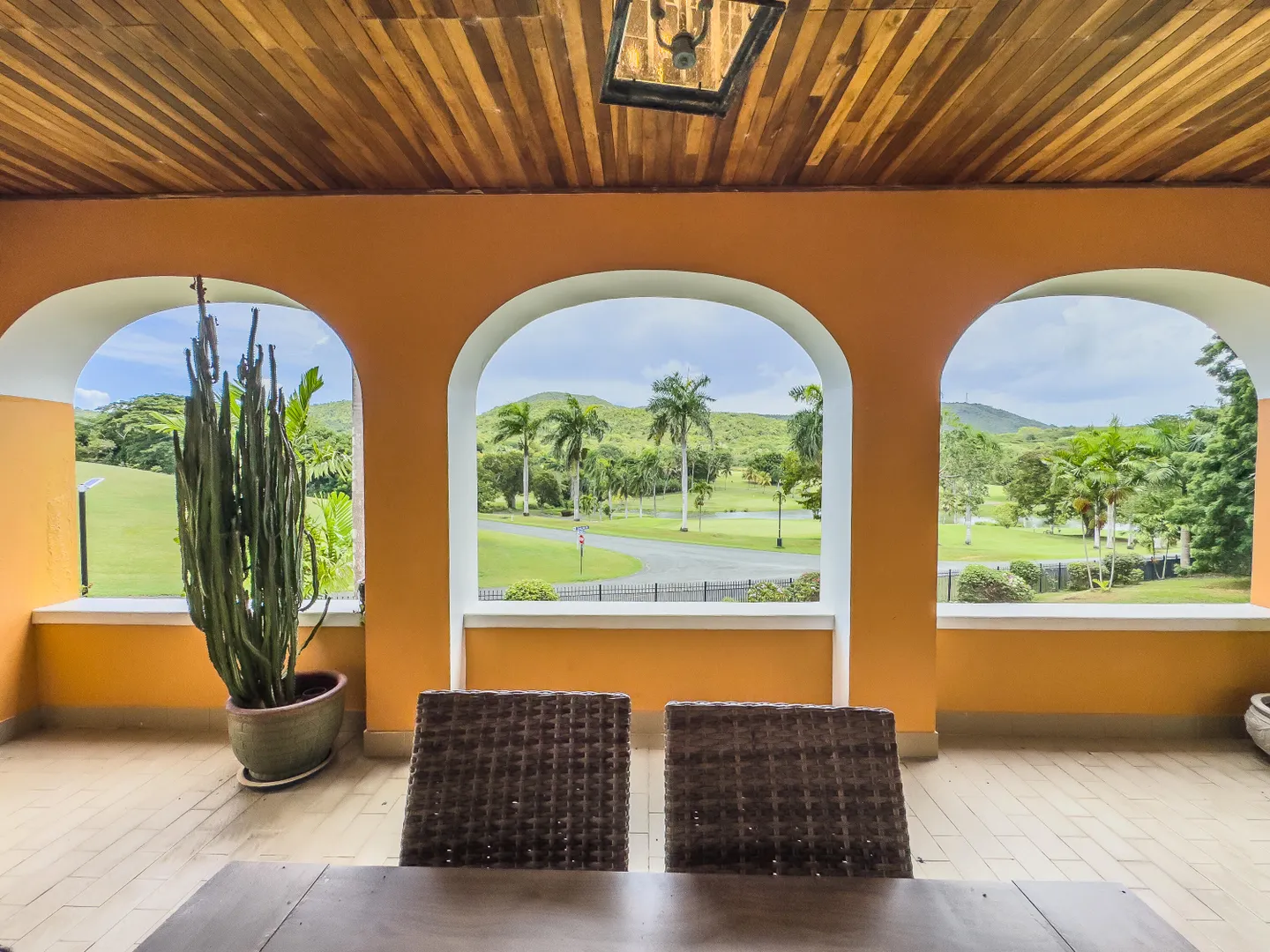 Welcome to Ginger Fancy at 66 Estate River--a stately, fully gated Caribbean retreat offering timeless style, resort-caliber amenities, and breathtaking golf course views. This exceptional estate overlooks the 4th green of the Robert Trent Jones-designed golf course at Carambola Country Golf Club, delivering a serene, picture-perfect backdrop for everyday living and entertaining.The main residence features 4 bedrooms and 4 baths, including a spacious living and dining room, an entertainment/theater room, and a wet bar ideal for hosting. The updated kitchen is supported by a convenient staging area, and the home is thoughtfully designed with a first-floor laundry room and a huge two-car garage with ample extra storage.Upstairs, the primary suite is a true sanctuary with a large private balcony, an oversized bath with his-and-her vanities, a separate shower, and a stand-alone tub. The suite is complemented by a massive, air-conditioned walk-in closet. A guest bedroom also enjoys its own balcony, and additional guest rooms feature walk-in closets for comfort and convenience.