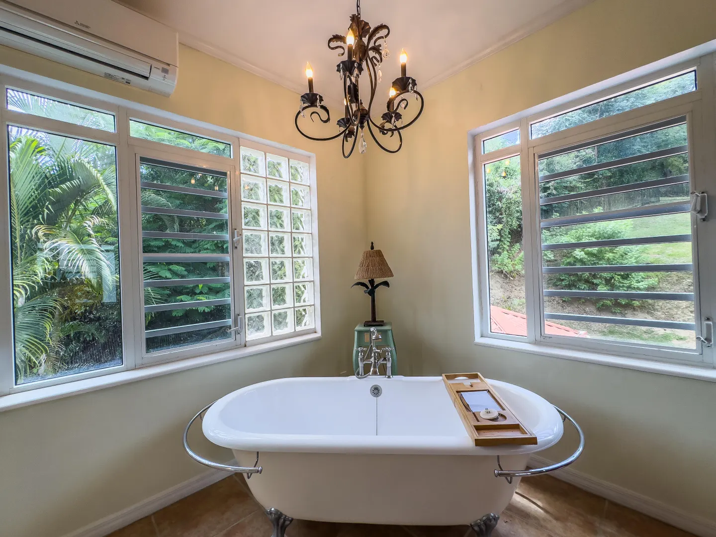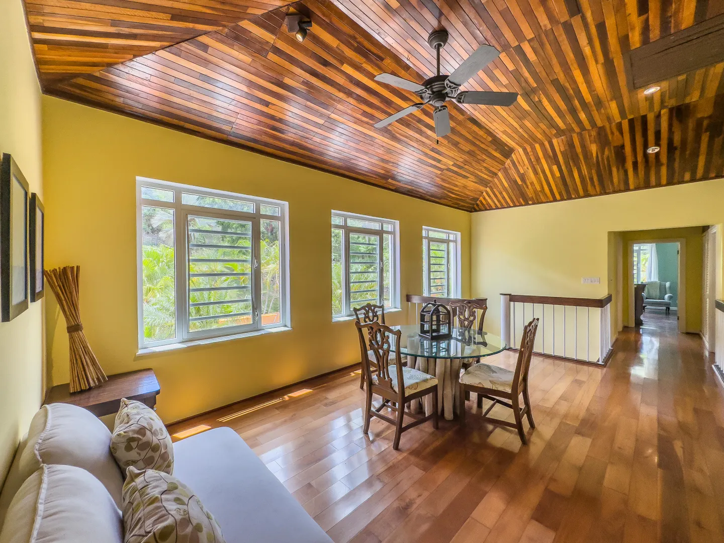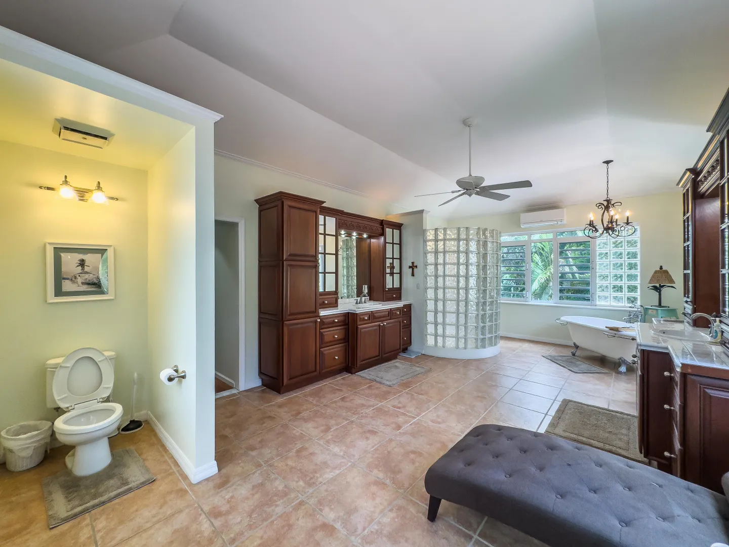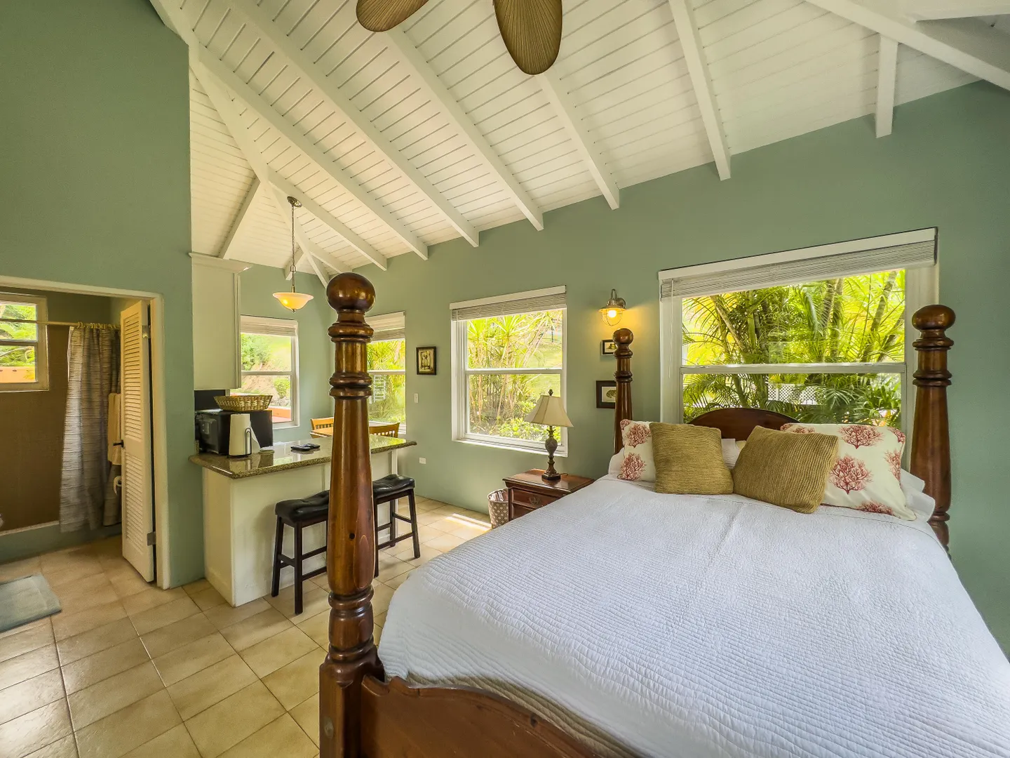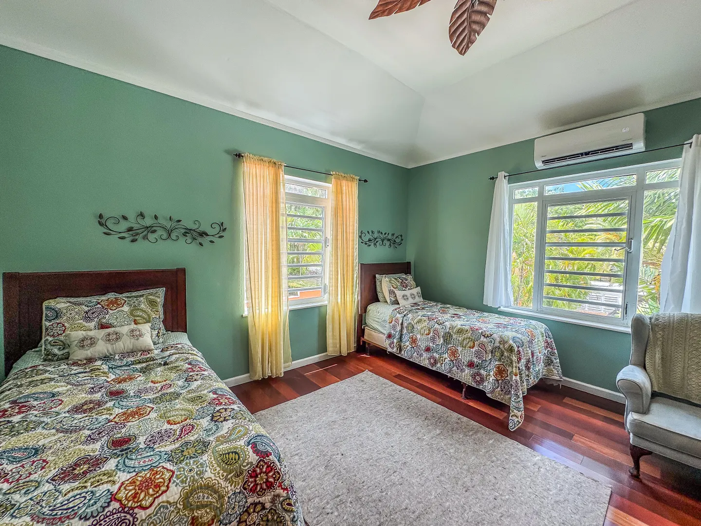 Welcome to Ginger Fancy at 66 Estate River--a stately, fully gated Caribbean retreat offering timeless style, resort-caliber amenities, and breathtaking golf course views. This exceptional estate overlooks the 4th green of the Robert Trent Jones-designed golf course at Carambola Country Golf Club, delivering a serene, picture-perfect backdrop for everyday living and entertaining.The main residence features 4 bedrooms and 4 baths, including a spacious living and dining room, an entertainment/theater room, and a wet bar ideal for hosting. The updated kitchen is supported by a convenient staging area, and the home is thoughtfully designed with a first-floor laundry room and a huge two-car garage with ample extra storage.Upstairs, the primary suite is a true sanctuary with a large private balcony, an oversized bath with his-and-her vanities, a separate shower, and a stand-alone tub. The suite is complemented by a massive, air-conditioned walk-in closet. A guest bedroom also enjoys its own balcony, and additional guest rooms feature walk-in closets for comfort and convenience.