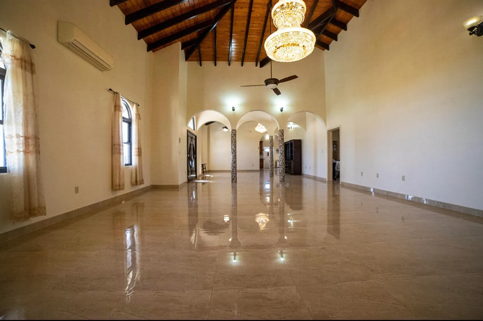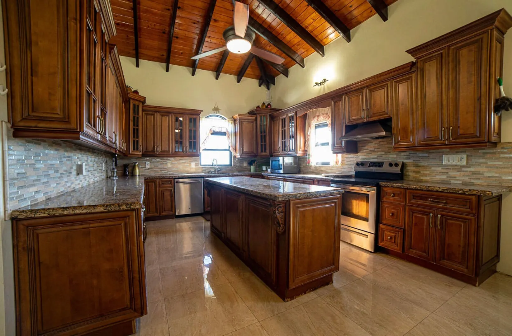 Beautiful residence in a gated beach side neighborhood. Offers custom kitchen, spacious bedrooms, indoor and outdoor living space, and automatic diesel generator. WAPA, Wi-Fi, and landscaping included!