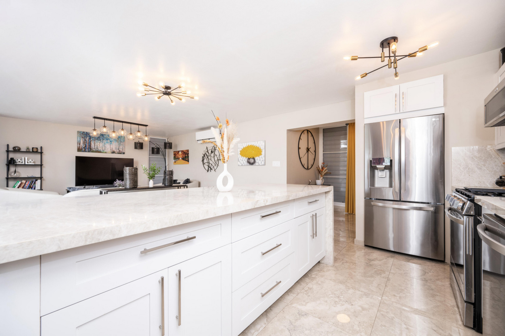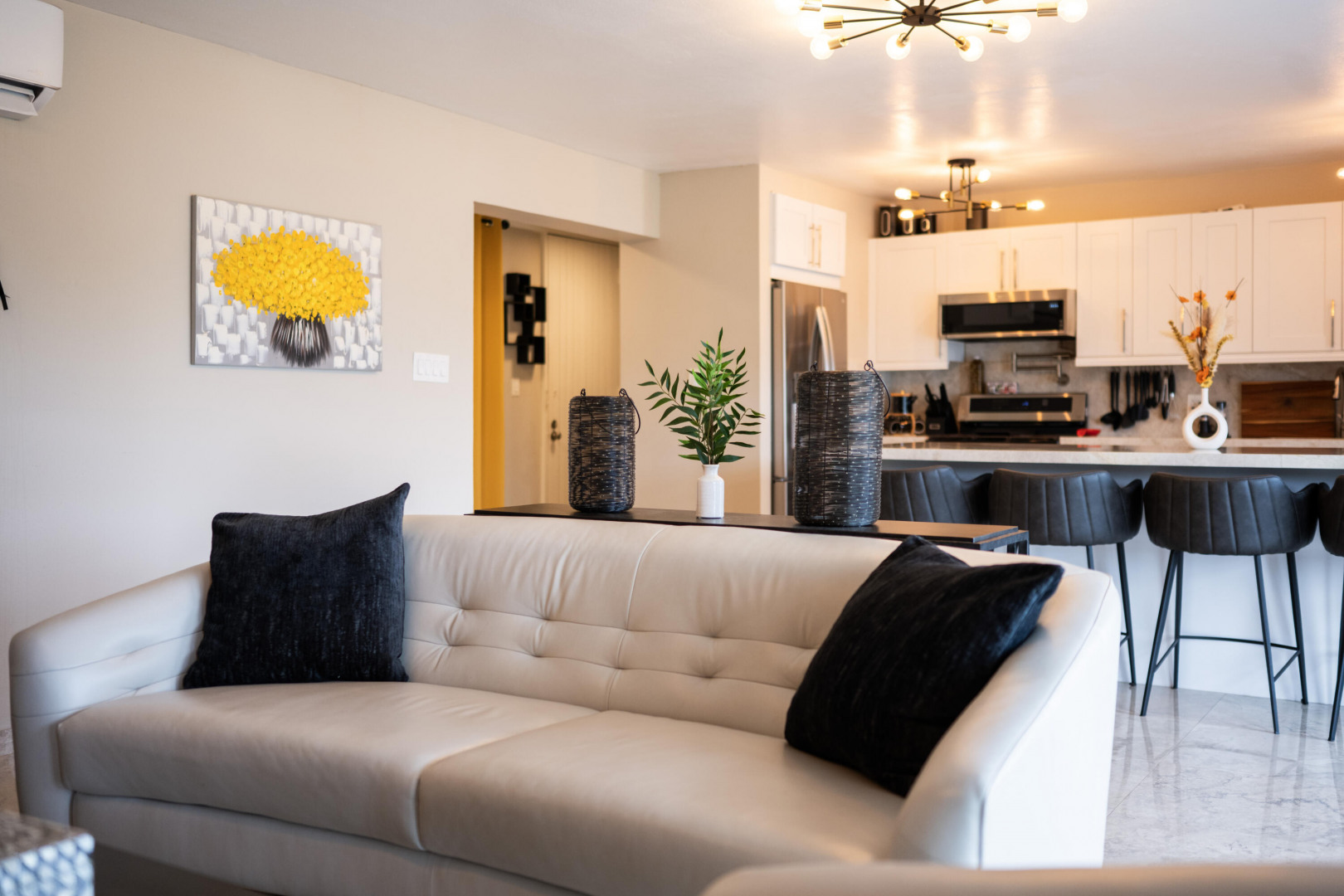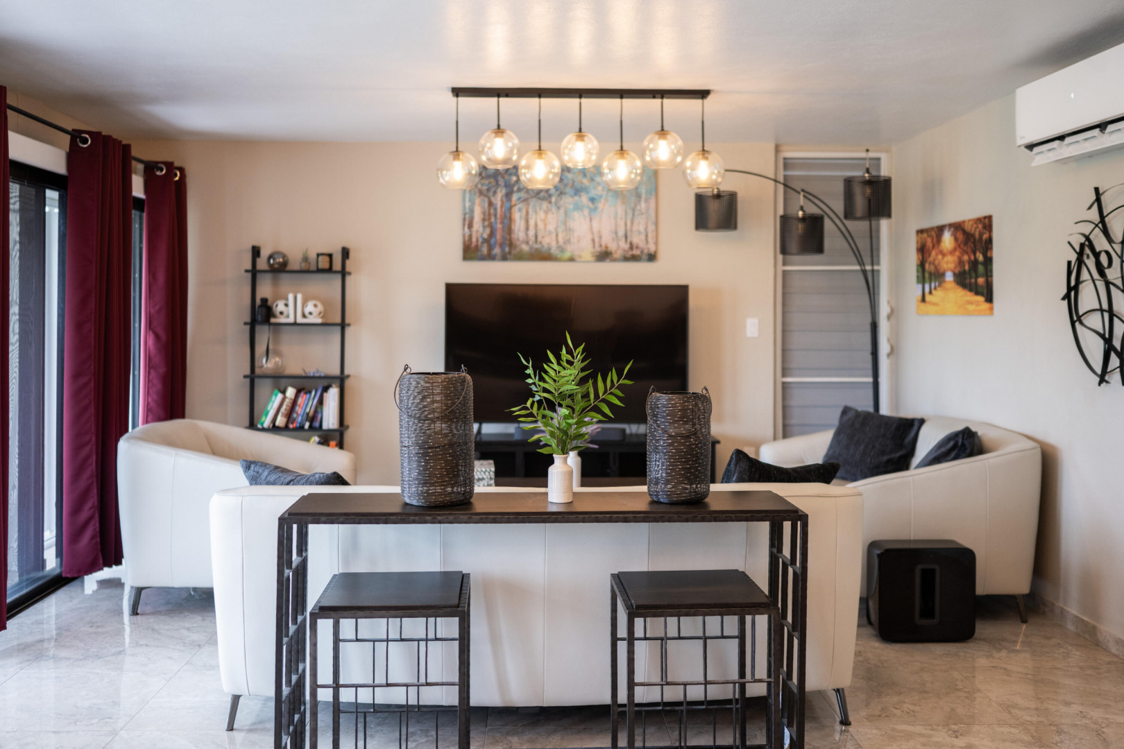 Impeccably designed and move-in ready, this fully furnished 2BR/2BA end-unit condo offers elevated privacy, expanded interior space, and sleek, modern finishes throughout. A professionally enclosed primary bedroom balcony adds valuable square footage and natural light.The gourmet kitchen features waterfall-edge quartz countertops, a pot filler, custom cabinetry, and unused stainless steel appliances, including a gas range and built-in microwave with air filtration. The open layout flows seamlessly into the living and dining areas, complete with curated furnishings, smart tech integration, and a Dreame X30 robot vacuum for effortless maintenance.Both bedrooms include Elfa modular closet systems, and the bathrooms showcase rainfall showers and spa-like finishes. Enjoy Sonos surroundsound, Wi-Fi-enabled smart switches, split A/C units, a 3-stage water filter, and touchscreen dimmers throughout.