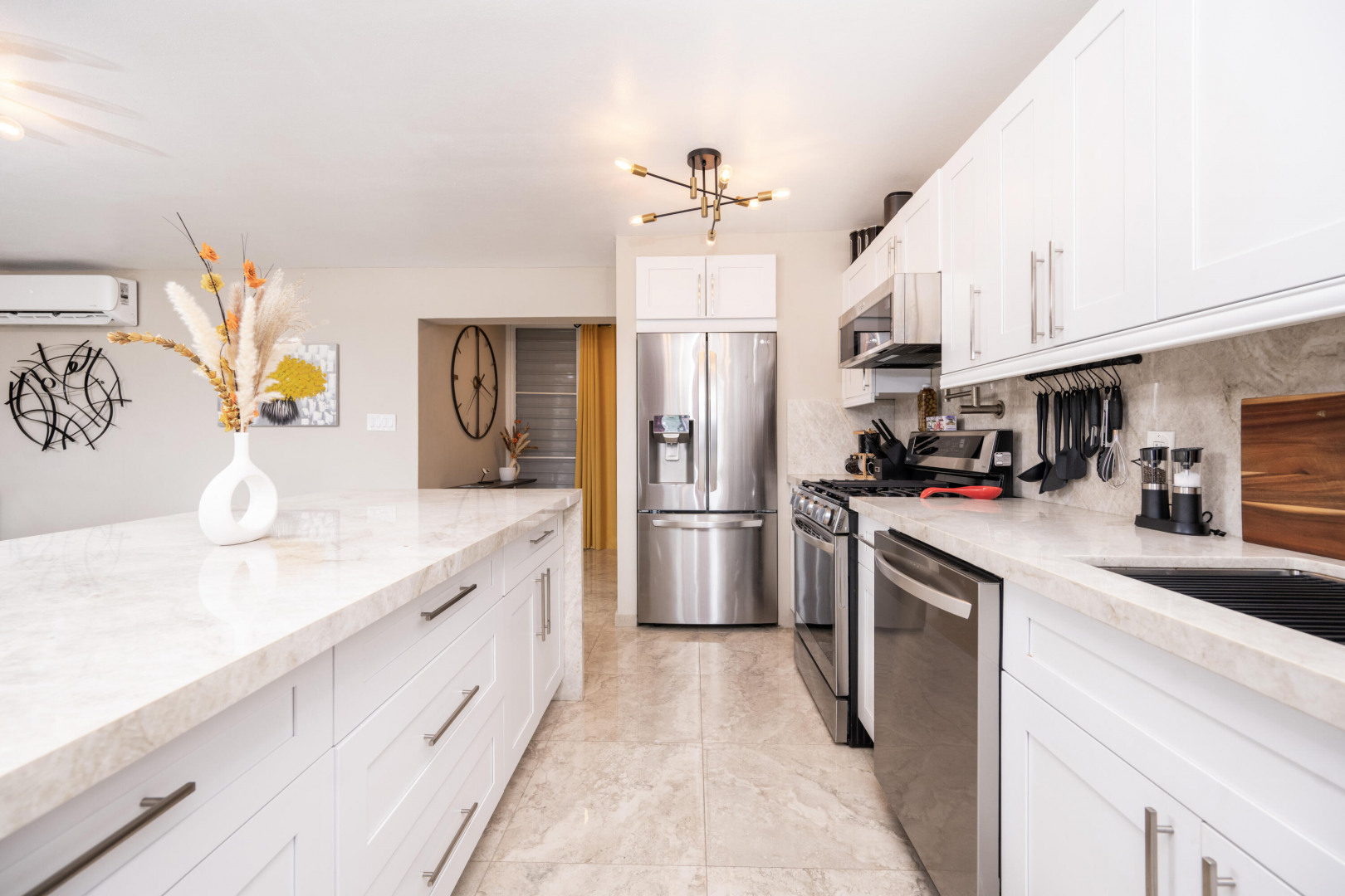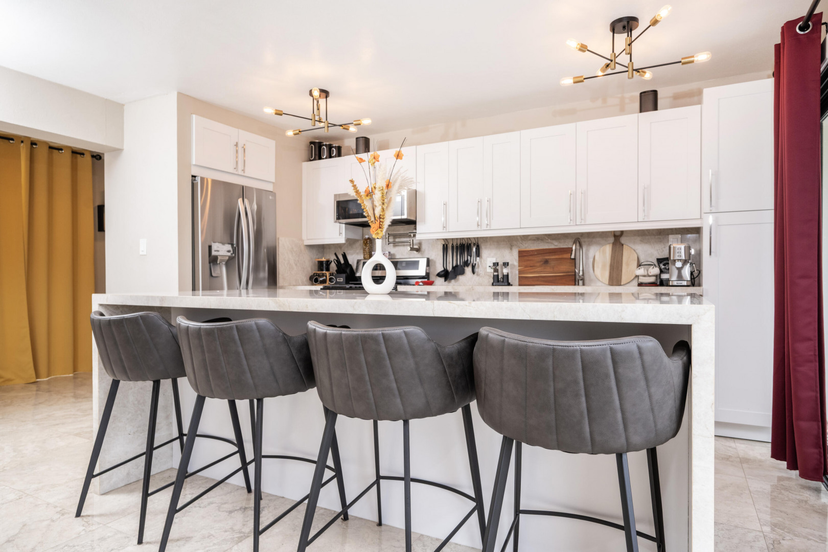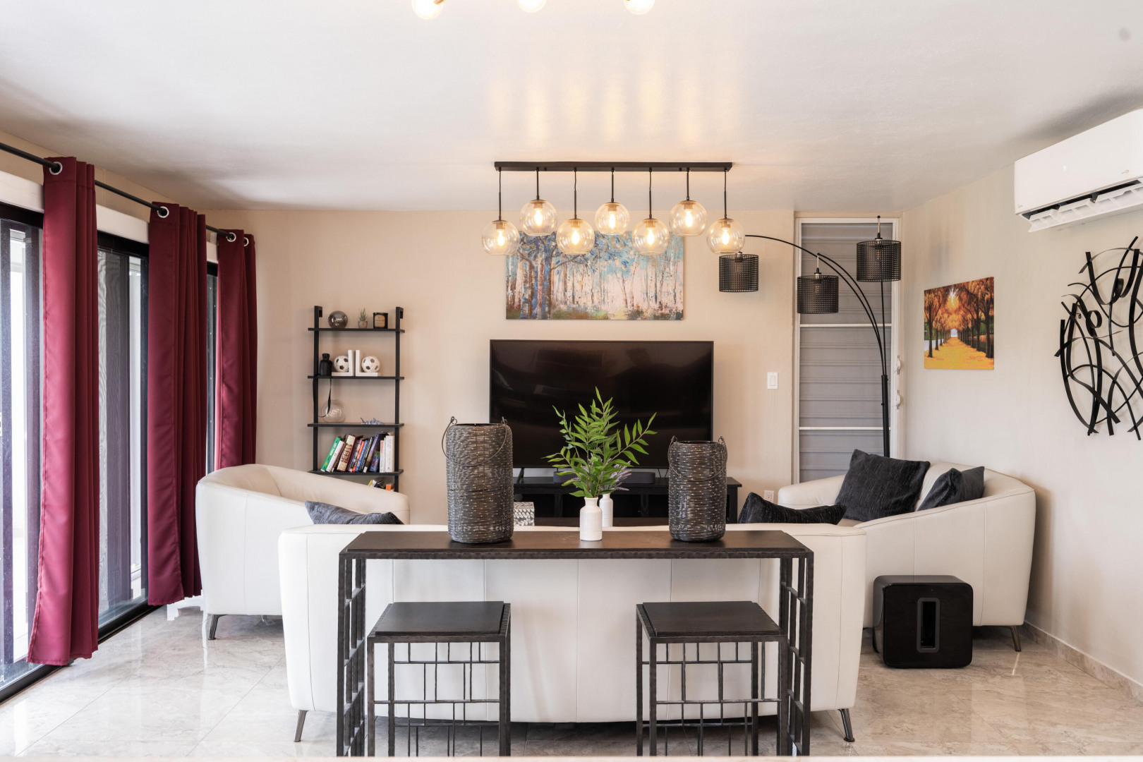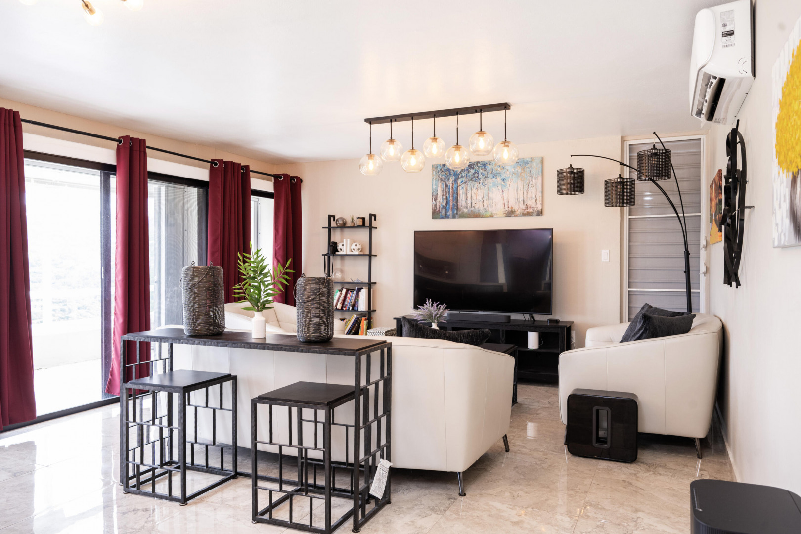 Impeccably designed and move-in ready, this fully furnished 2BR/2BA end-unit condo offers elevated privacy, expanded interior space, and sleek, modern finishes throughout. A professionally enclosed primary bedroom balcony adds valuable square footage and natural light.The gourmet kitchen features waterfall-edge quartz countertops, a pot filler, custom cabinetry, and unused stainless steel appliances, including a gas range and built-in microwave with air filtration. The open layout flows seamlessly into the living and dining areas, complete with curated furnishings, smart tech integration, and a Dreame X30 robot vacuum for effortless maintenance.Both bedrooms include Elfa modular closet systems, and the bathrooms showcase rainfall showers and spa-like finishes. Enjoy Sonos surroundsound, Wi-Fi-enabled smart switches, split A/C units, a 3-stage water filter, and touchscreen dimmers throughout.