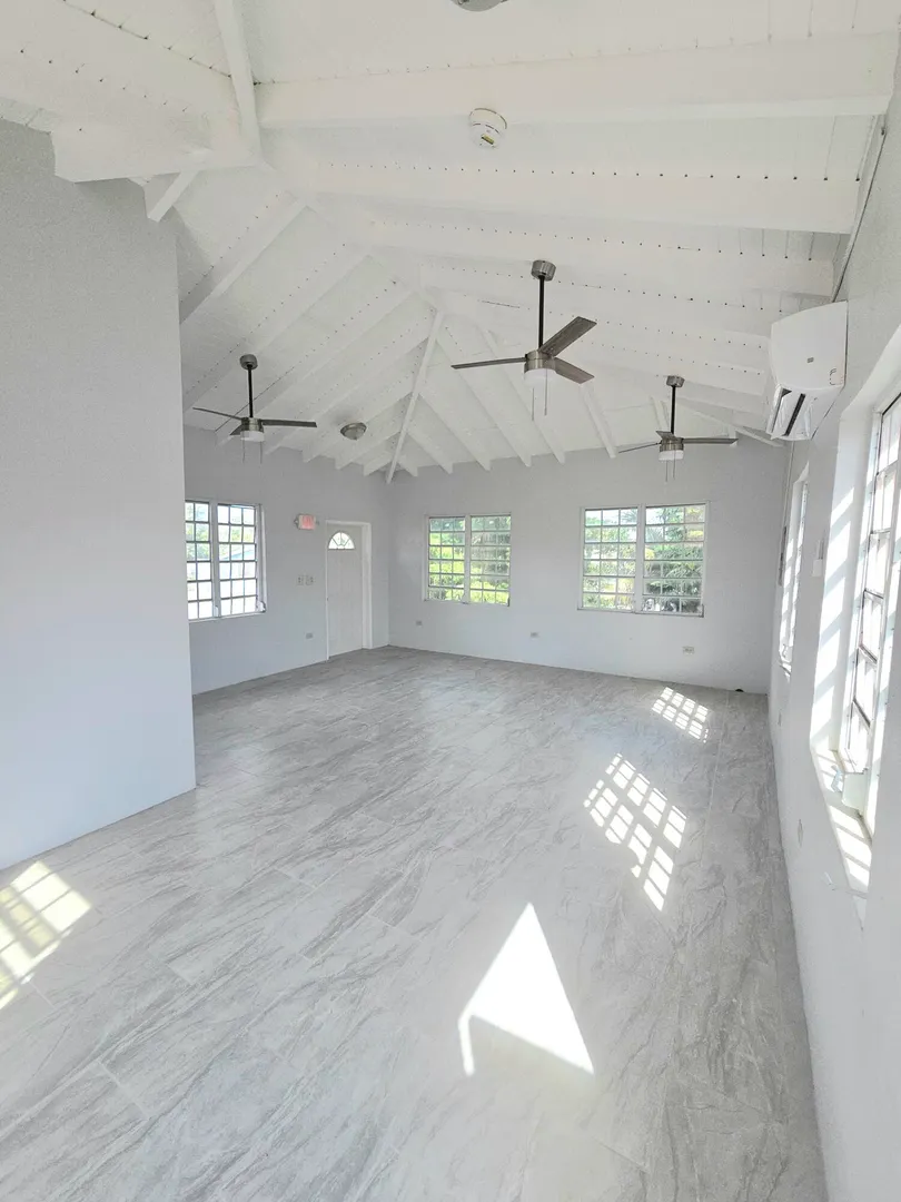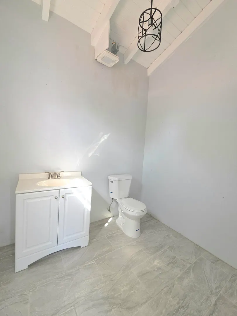 This upper-level commercial space offers a comfortable and functional environment ideal for a variety of business uses. The unit is outfitted with a mini-split air conditioning system and ceiling fans to ensure year-round comfort, along with a spacious full bathroom for added convenience. Centrally located with ample on-site parking, this unit is well suited for professional offices, creative studios, or similar business operations seeking both practicality and accessibility.