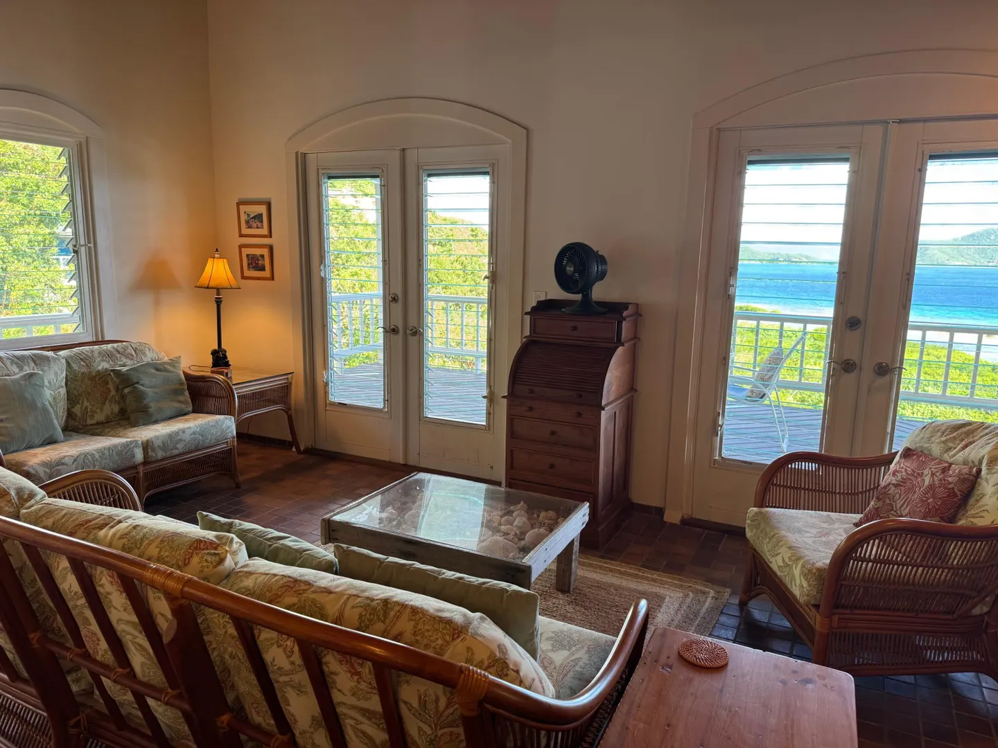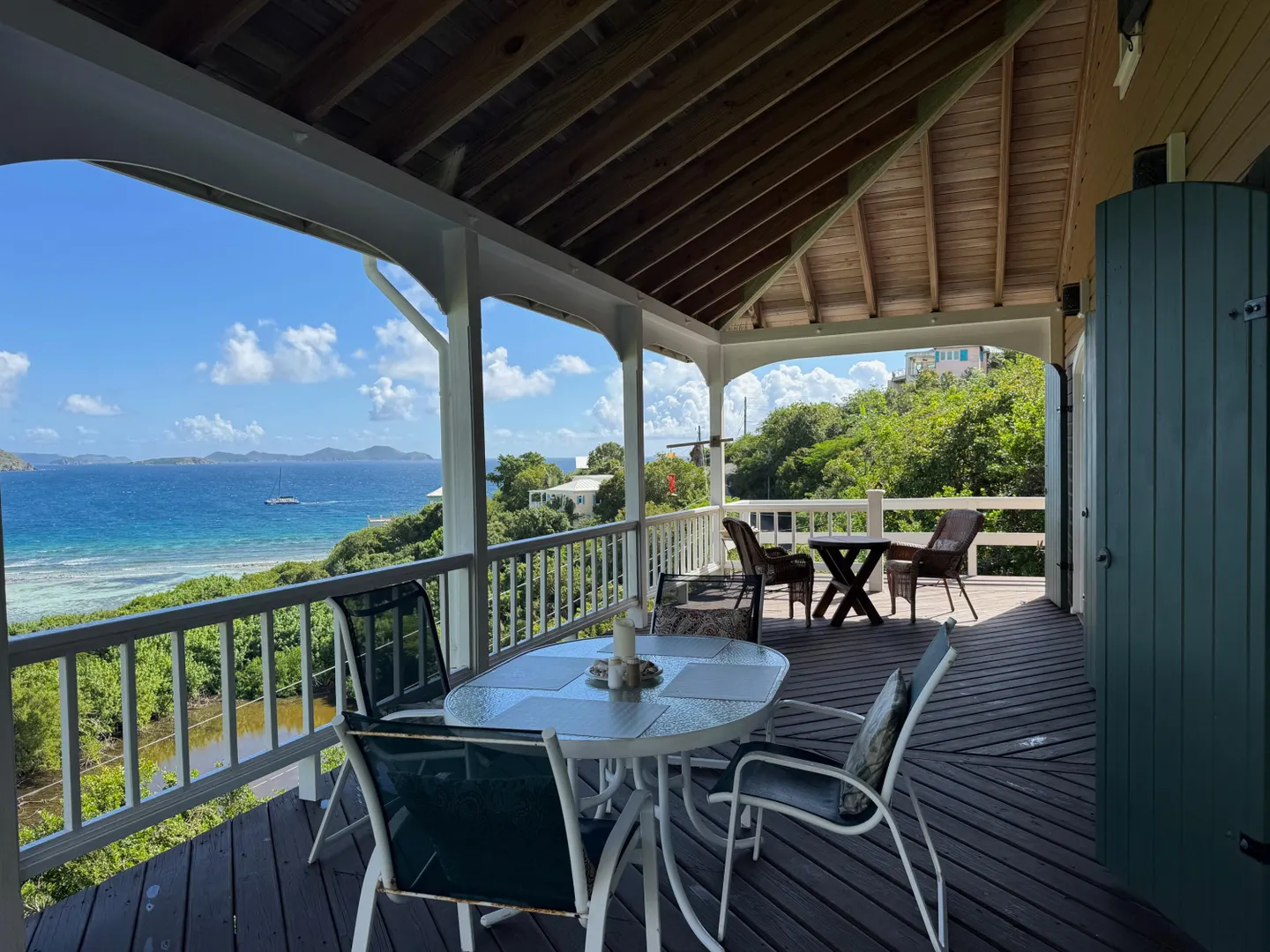 Ananas is a beautifully maintained and well loved owner occupied Caribbean style home perched above Johnsons Reef in the Johnson & Friis Bay area. Ananas enjoys easterly breezes and views toward Haulover, East End and the BVI's while being soothed by the sounds of the surf. Every room enjoys water views & breezes. The level driveway brings you to the front door, and inside are the great room, kitchen and primary bedroom & bath and a very large covered porch. The stairs to the lower level takes you to the additional two bedroom & bath and large covered porch. The ample size pool has a wrap around uncovered deck area. The gardens are mature and beautifully landscaped and attended to. The property is a must see to appreciate .Deeded access to Johnson Bay Beach via private access.