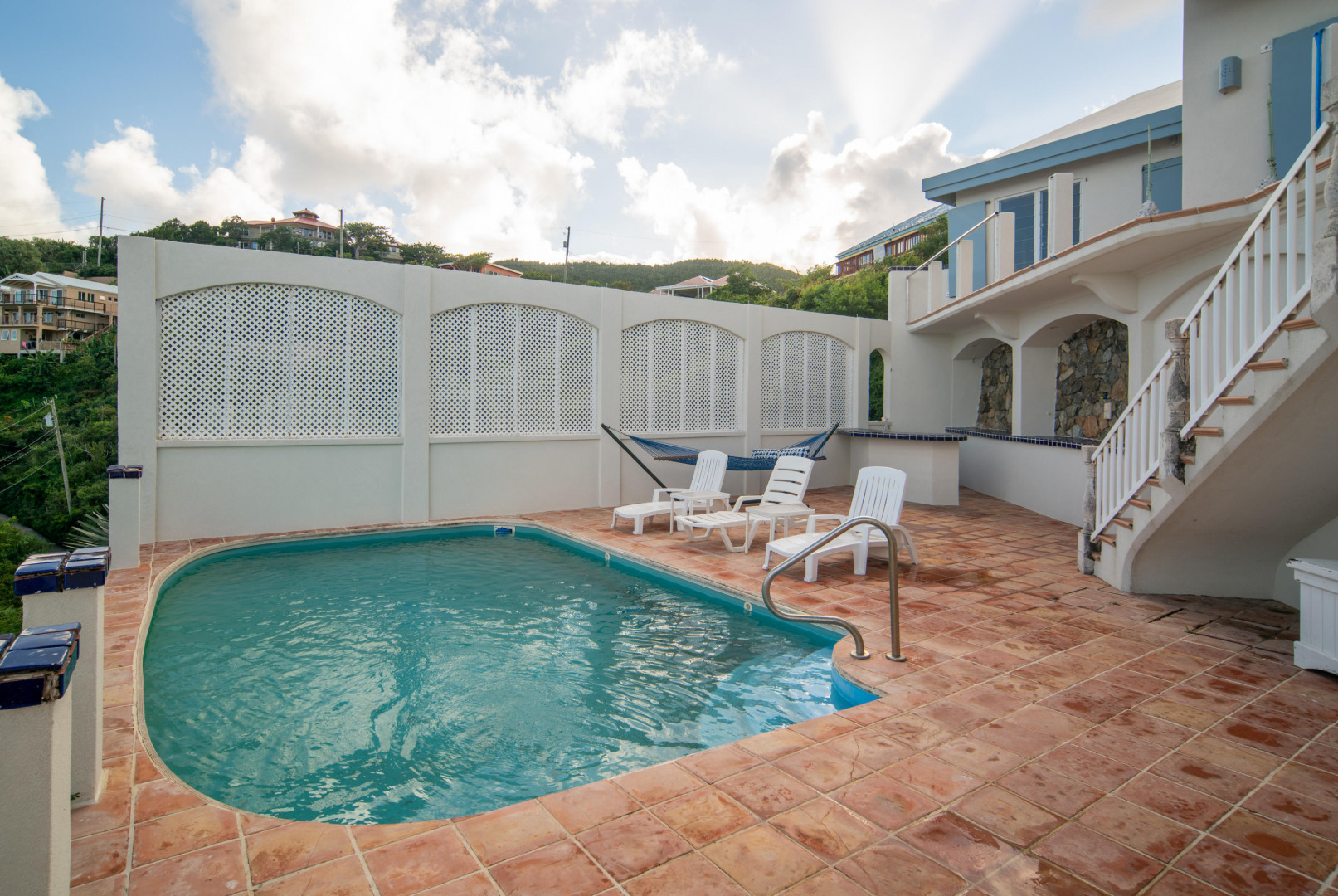 Enjoy the quiet side of St.John! This newly remodeled family home or seasonal residence, is located in St.Quacco & Zimmerman. Just 10 minutes from Coral Bay you can enjoy mesmerizing views overlooking Friss Bay, the East End, LeDuck and BVI islands in a peaceful neighborhood setting.The upper level features a main living pod and two adjoining bedroom pods. The lower level is an independent apartment, with a wonderful new kitchen, washer/dryer and private driveway. A new spacious concrete deck w/ cable railing provides for an outdoor living area to enjoy the consistent breeze and views. Masonry pool and wet bar are perfect for entertaining!