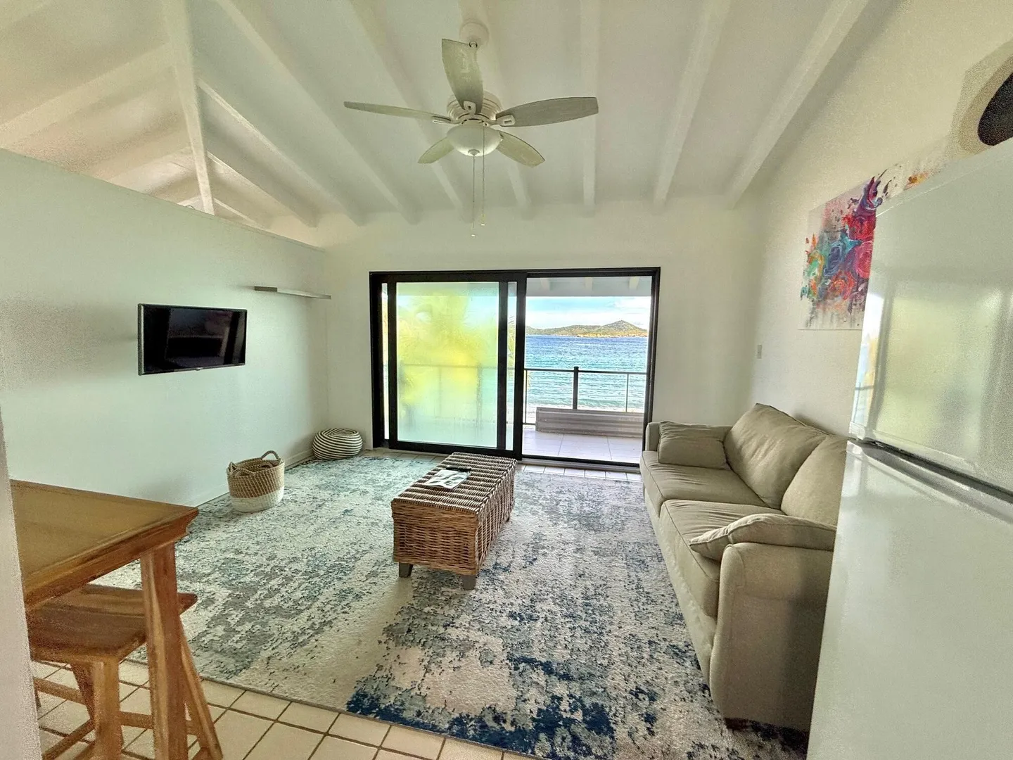 Check out this remodeled studio with cathedral ceilings that makes it feel spacious. A door separates the living area from the bedroom making it truly feel like a 1 bedroom and offering privacy when needed. Approximately 675 square feet of bright and airy living space, Enjoy breathtaking ocean views and the calming sound of the waves from your own private balcony. It's the perfect spot for sipping morning coffee or relaxing after a day of island adventures. Located on a serene, rocky beach, Cabrita By the Sea offers a quiet coastal lifestyle while being just a short drive to all the vibrant attractions and conveniences that St. Thomas has to offer.Don't miss this chance to own a slice of paradise with unbeatable views, affordable HOA fees and a prime waterfront location.