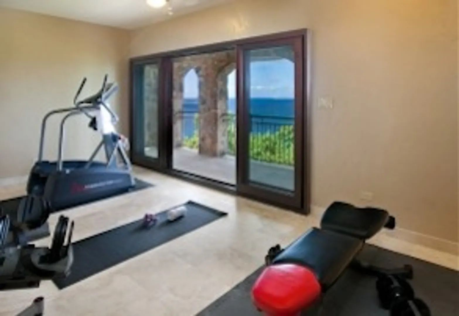 Air-conditioned exercise gym with full bathroom and laundry room can easily be converted in to an additional bedroom suite.