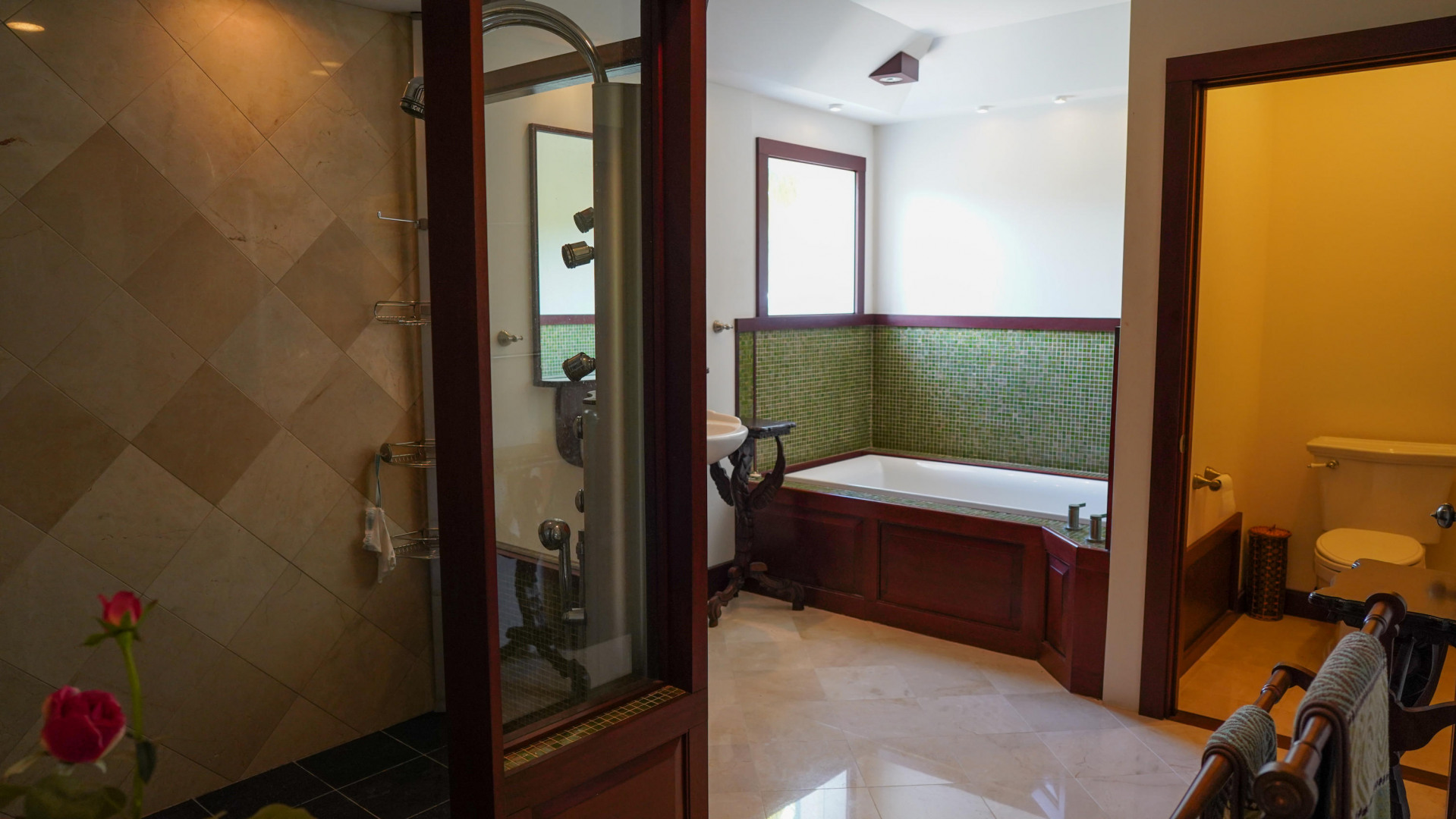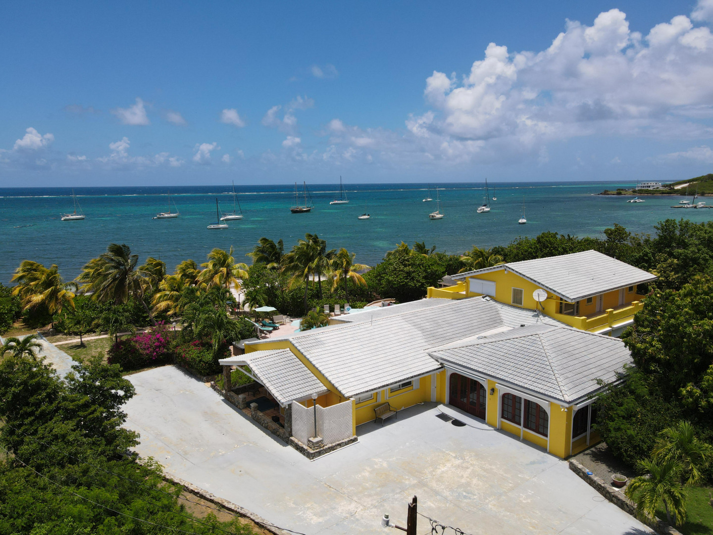 A rare offering. A private compound consisting of three homes and maintenance facility on 4.55 acres with sandy beachfront Teague Bay to the north and road frontage to the south. A total of 13 bedrooms, 4 kitchens, two swimming pools and a dock. Buck Island feels close enough to touch. Ample room to develop additional homes. Each home has total privacy from its counterparts. A stones throw from The yacht Club. The compound boasts a staggering list of amenities including a reverse osmosis plant, wine cellar, game room, gym, dive room, waterspouts storage room to name a few. See individual properties for a full details and videos.
