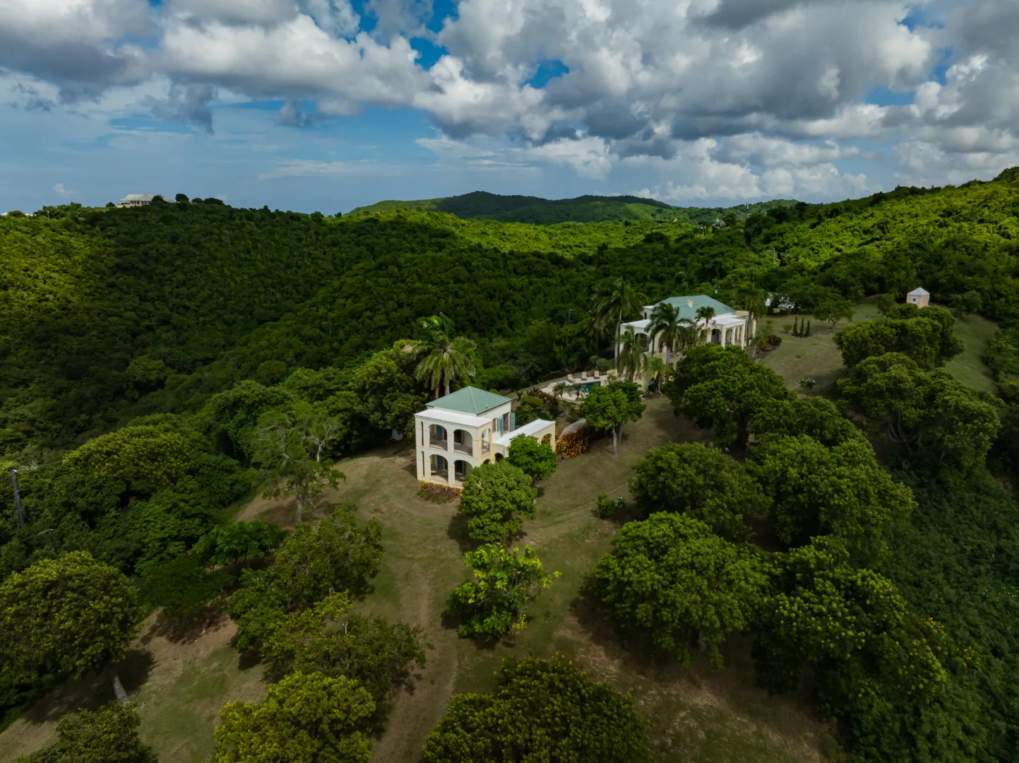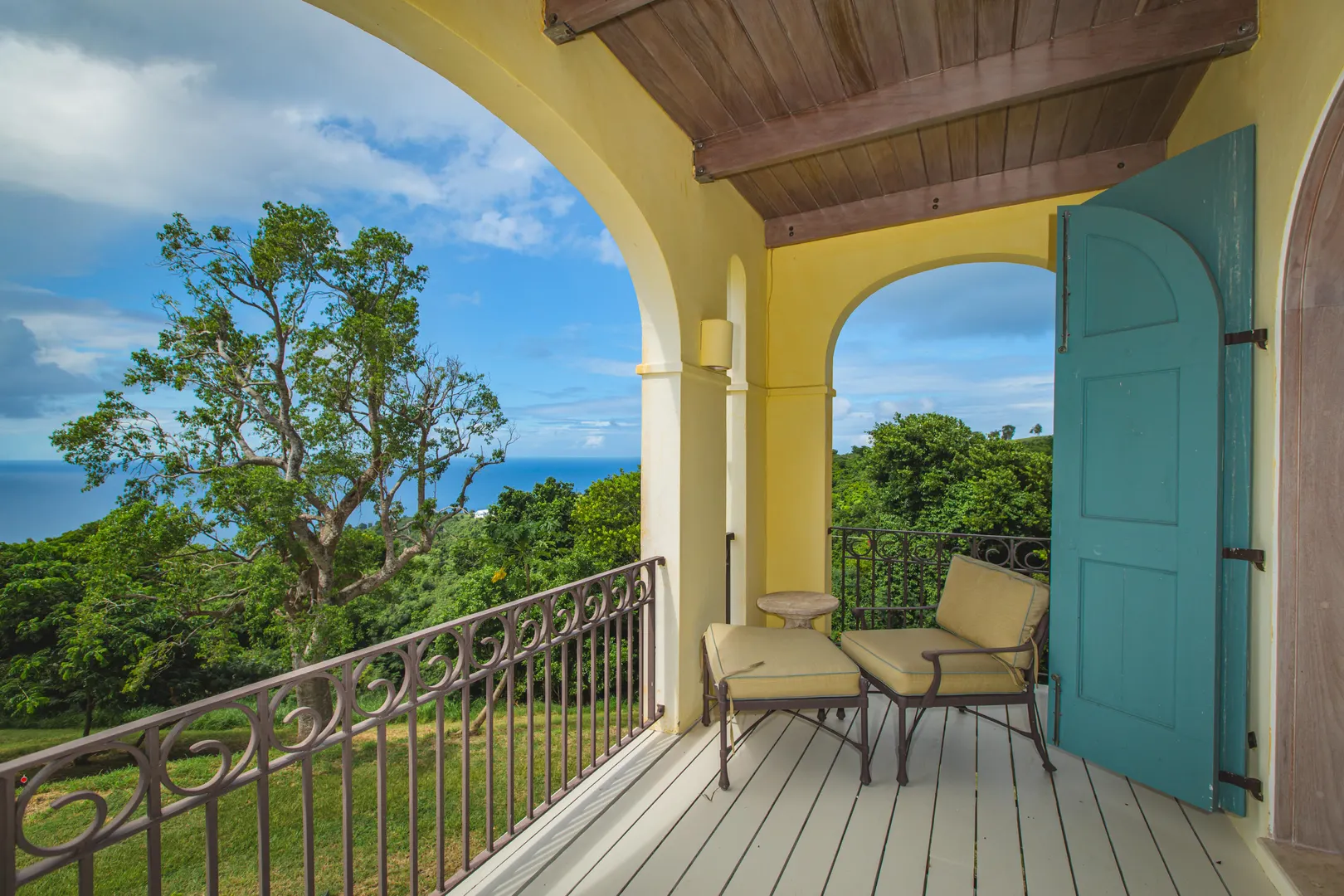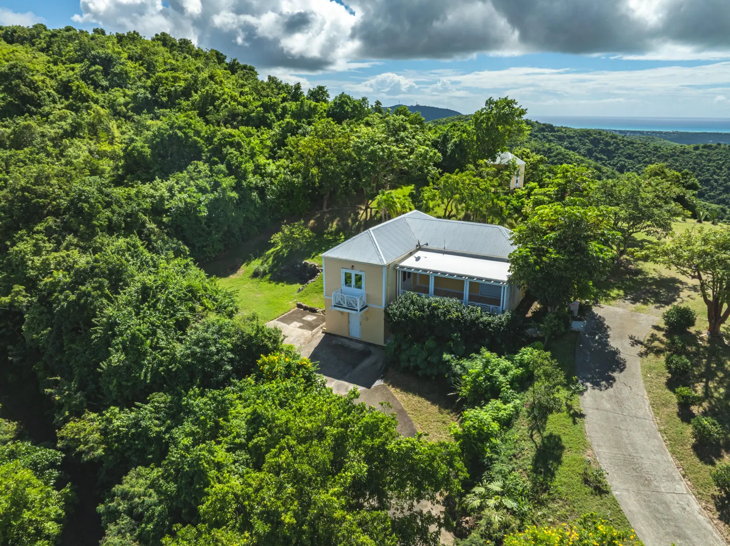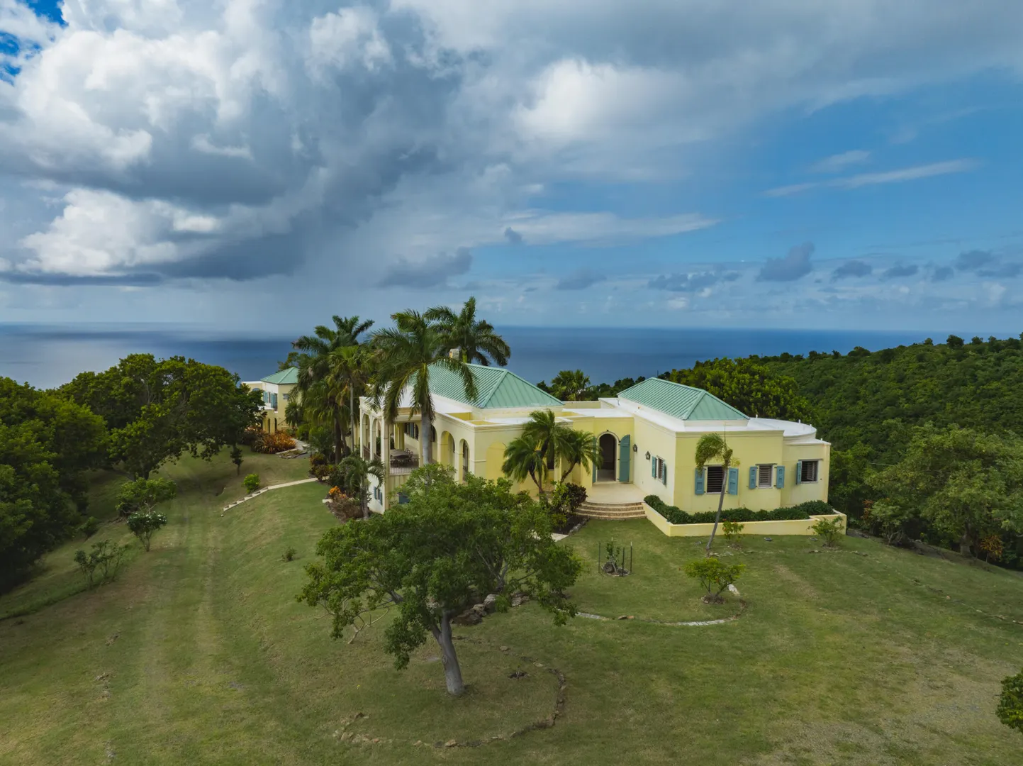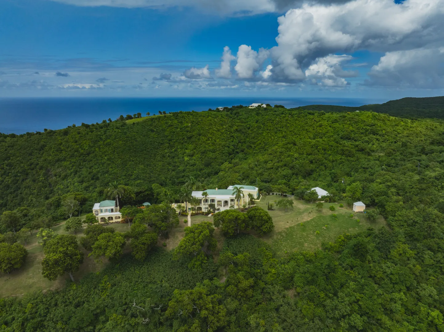 Perched at an elevation of 660 feet on the exclusive, gated roads of Washington Hill, this exquisite estate epitomizes timeless craftsmanship and offers unparalleled ocean views, encompassing Frederiksted pier, Puerto Rico, Vieques, and Culebra.Designed by the esteemed George Hascup, former Director of Design at Cornell University's School of Architecture, this remarkable residence was constructed between 1997 and 2000. It features a robust exterior of poured, steel-reinforced concrete and elegant cement block interiors, all set upon over 8 expansive hilltop acres. Every element of woodwork, from the grand four-poster beds to the gracefully arched windows and doors, is crafted from luxurious mahogany, culminating in a breathtaking mahogany cathedral ceiling.The exquisite millwork and treated metal finishes were all installed by Walsh Metal Works.