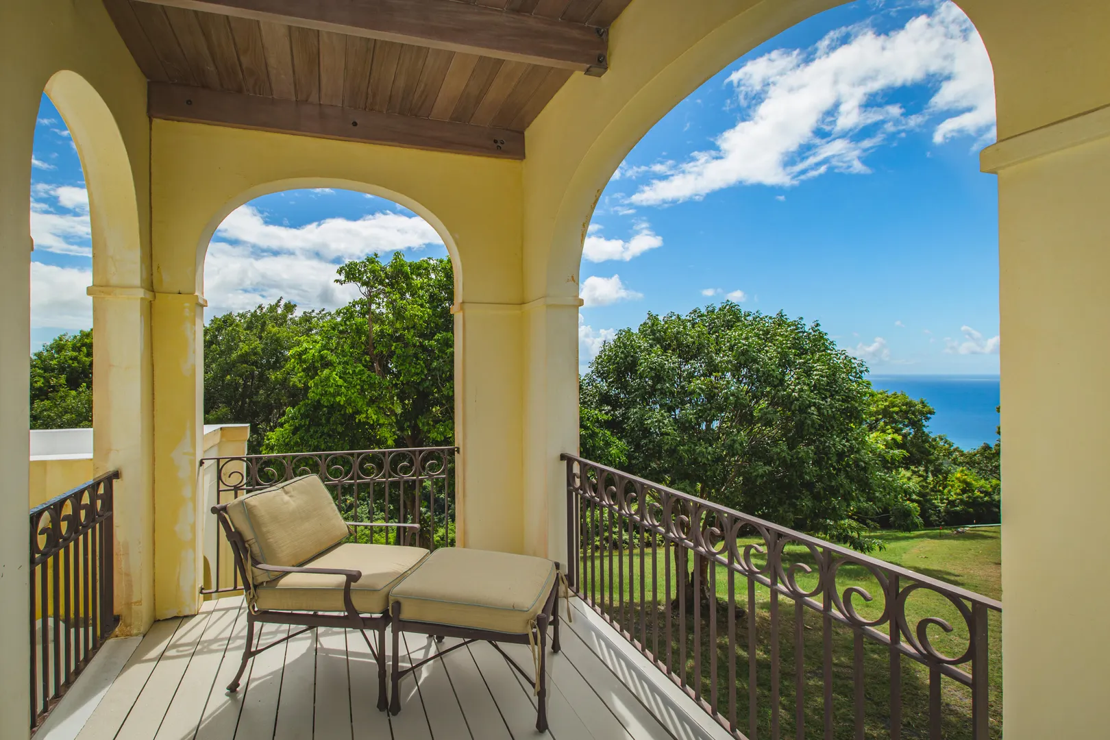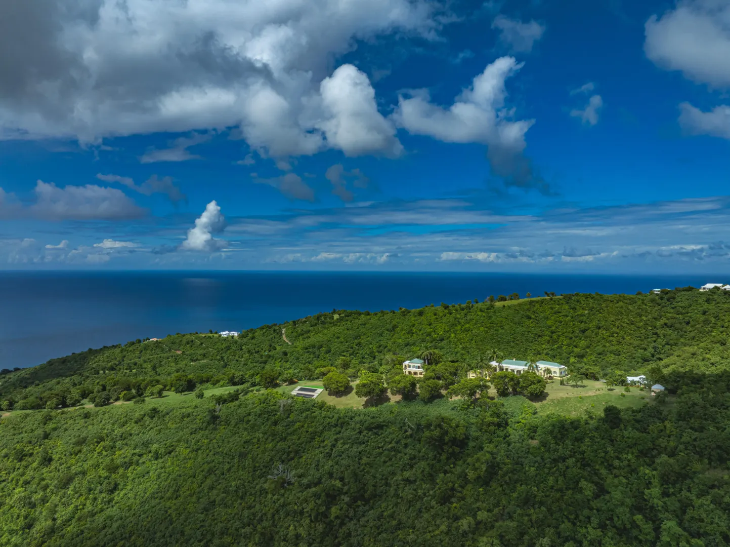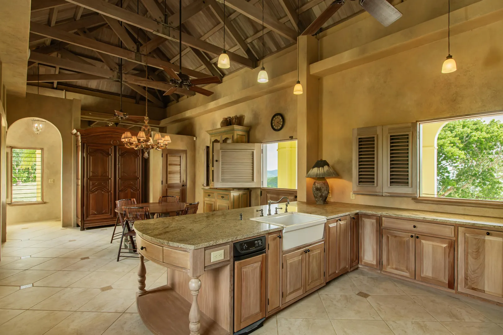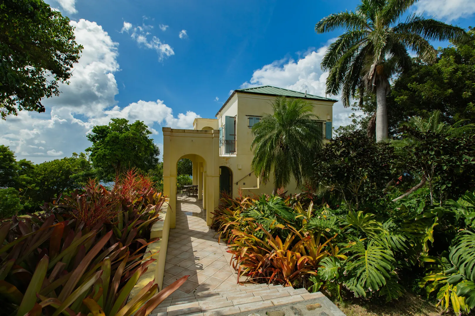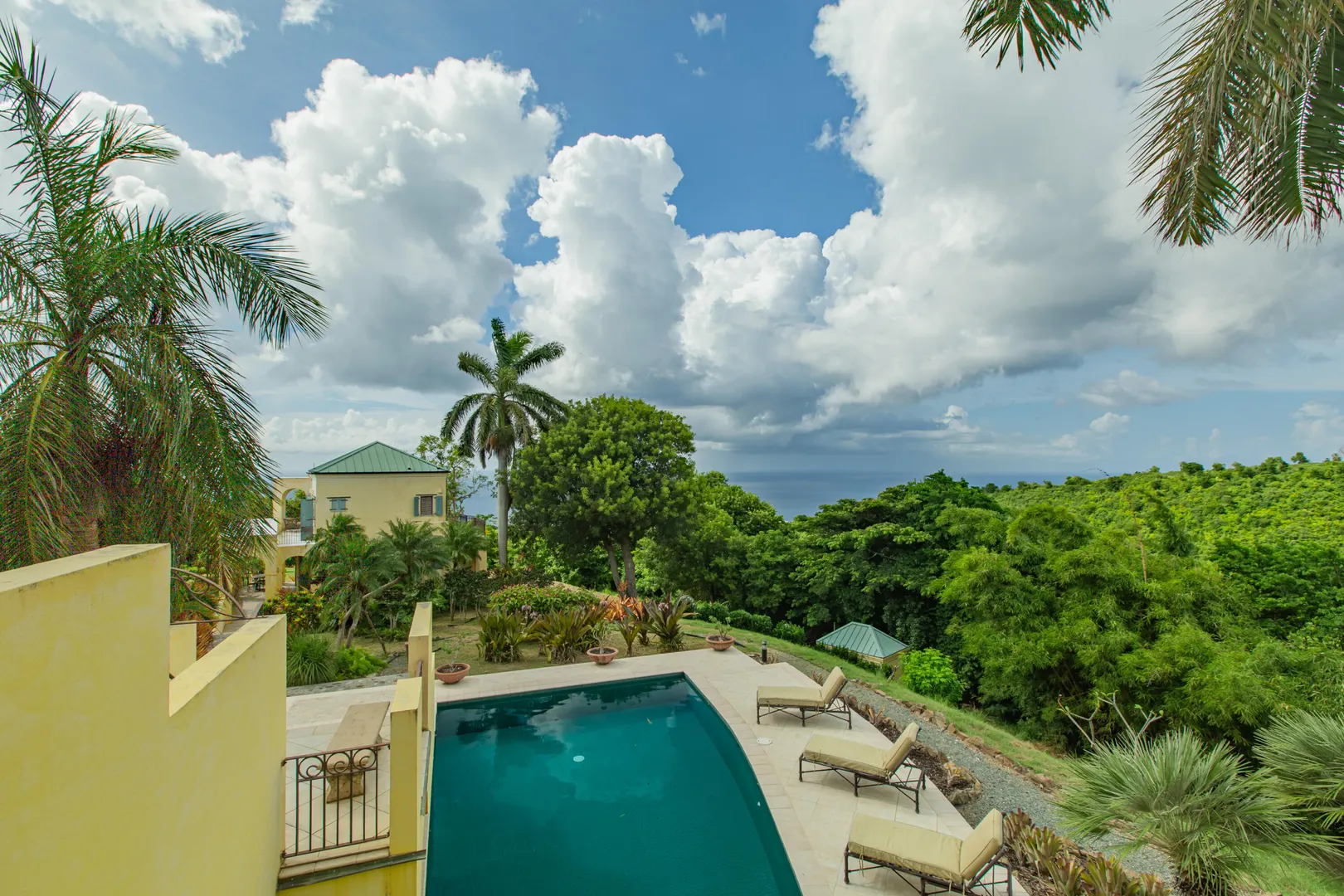Perched at an elevation of 660 feet on the exclusive, gated roads of Washington Hill, this exquisite estate epitomizes timeless craftsmanship and offers unparalleled ocean views, encompassing Frederiksted pier, Puerto Rico, Vieques, and Culebra.Designed by the esteemed George Hascup, former Director of Design at Cornell University's School of Architecture, this remarkable residence was constructed between 1997 and 2000. It features a robust exterior of poured, steel-reinforced concrete and elegant cement block interiors, all set upon over 8 expansive hilltop acres. Every element of woodwork, from the grand four-poster beds to the gracefully arched windows and doors, is crafted from luxurious mahogany, culminating in a breathtaking mahogany cathedral ceiling.The exquisite millwork and treated metal finishes were all installed by Walsh Metal Works.