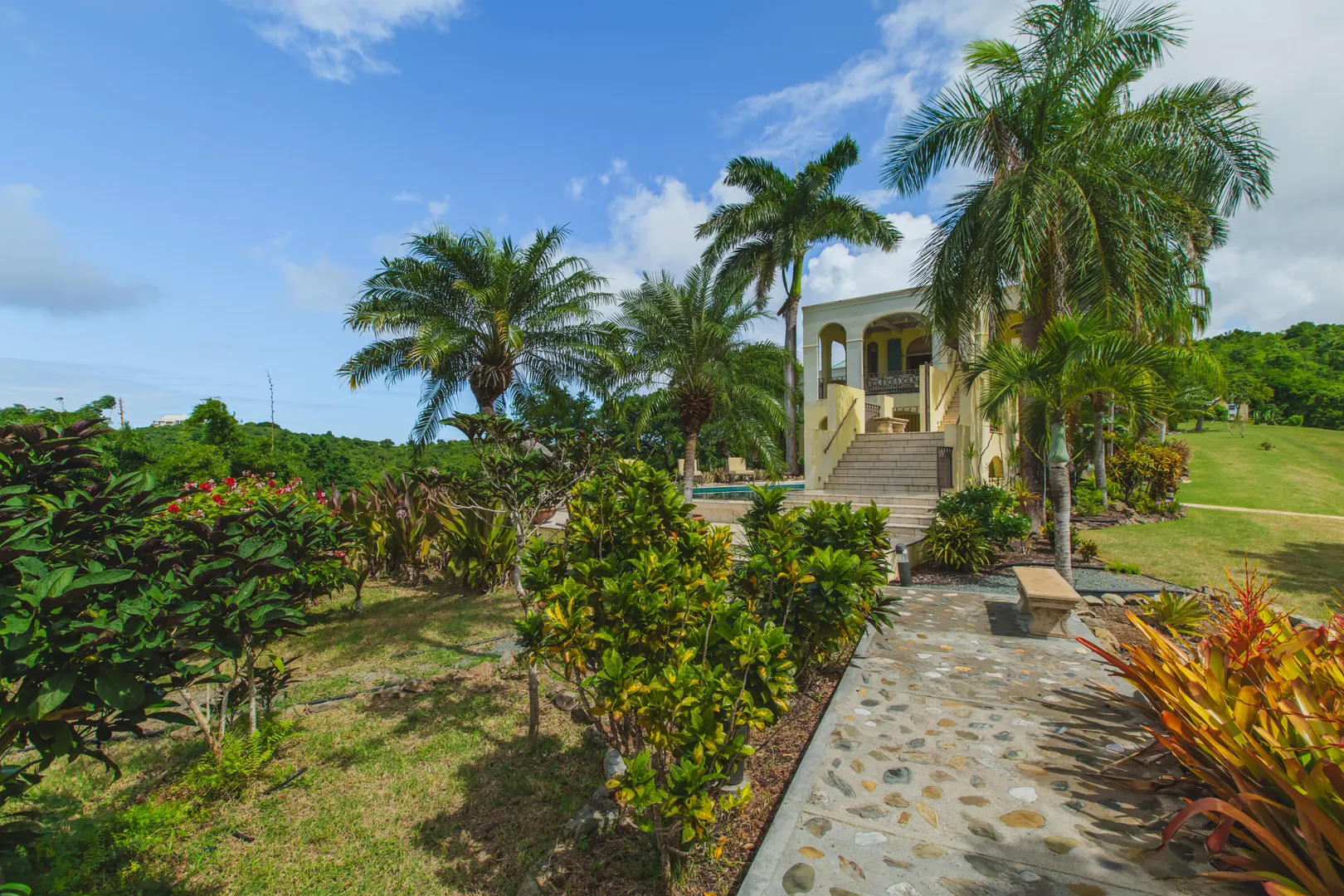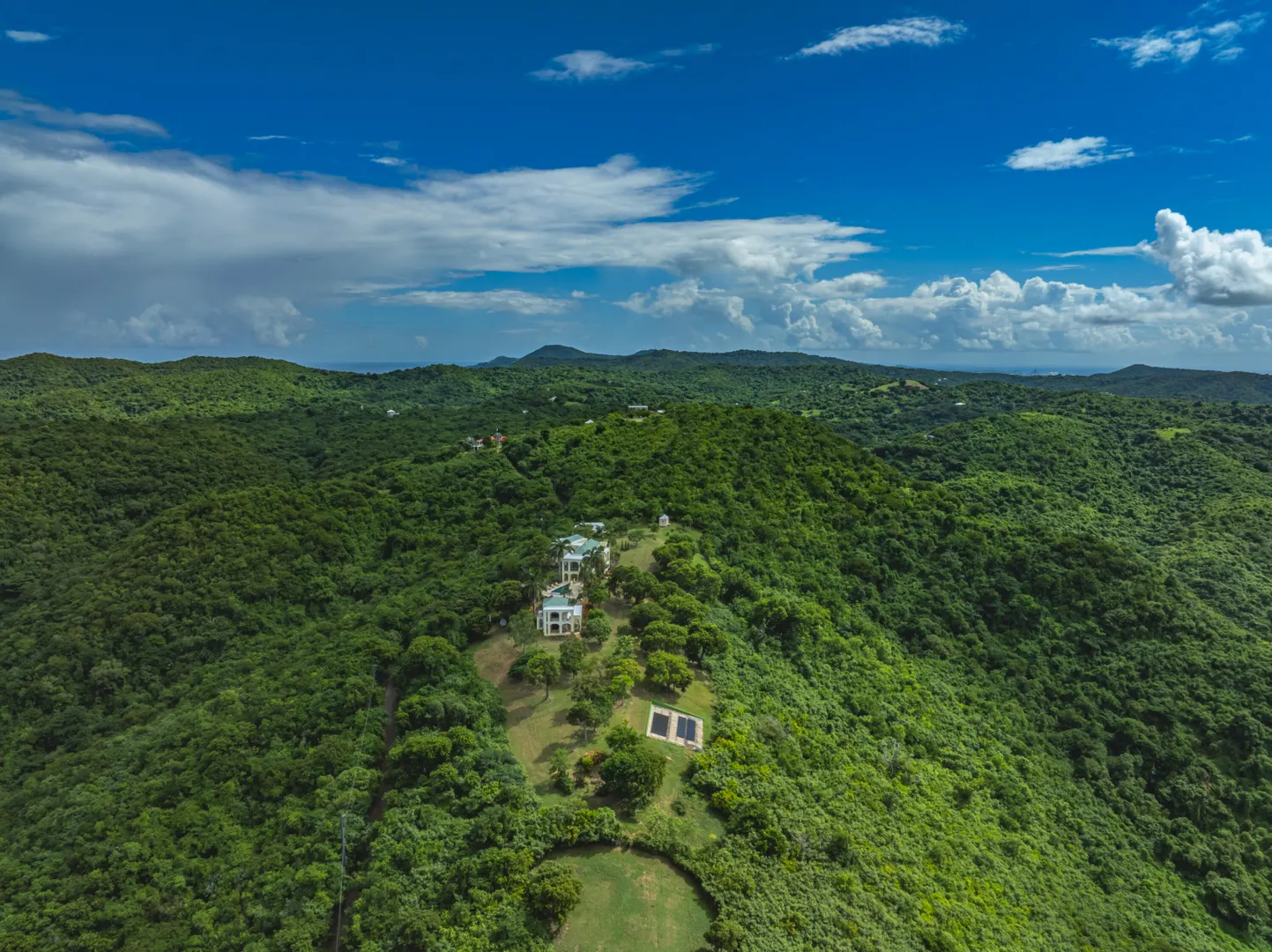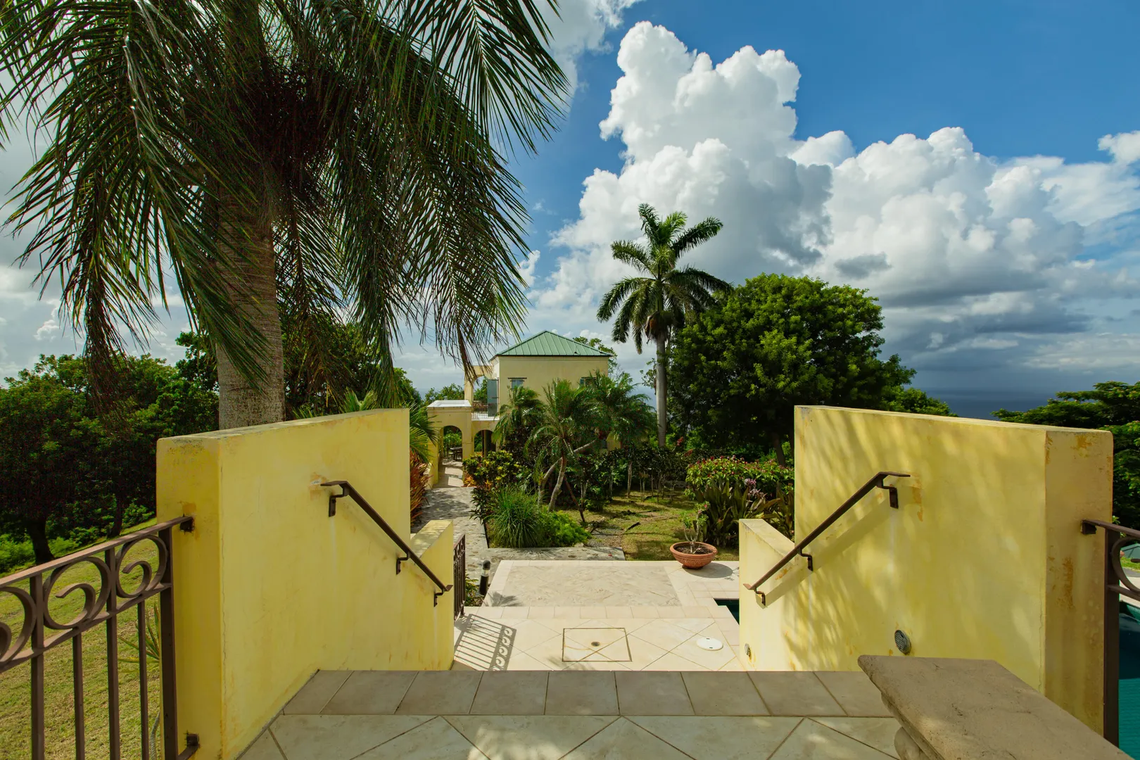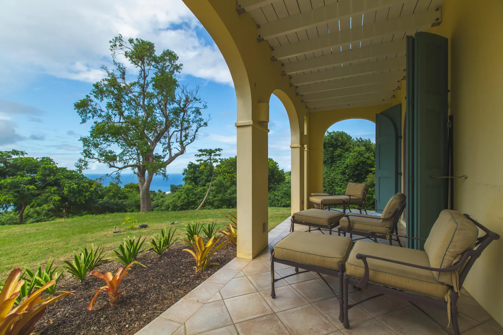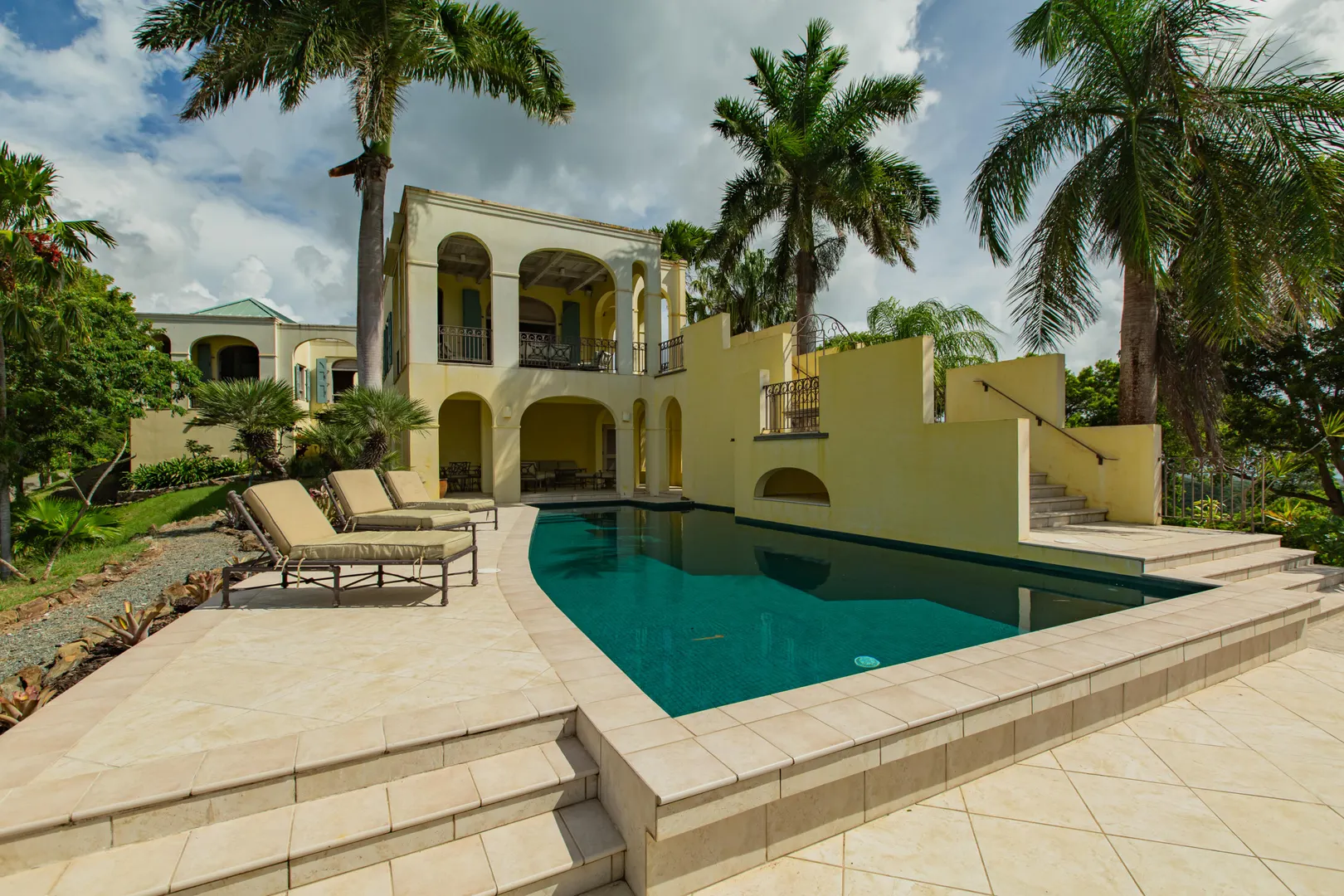 Perched at an elevation of 660 feet on the exclusive, gated roads of Washington Hill, this exquisite estate epitomizes timeless craftsmanship and offers unparalleled ocean views, encompassing Frederiksted pier, Puerto Rico, Vieques, and Culebra.Designed by the esteemed George Hascup, former Director of Design at Cornell University's School of Architecture, this remarkable residence was constructed between 1997 and 2000. It features a robust exterior of poured, steel-reinforced concrete and elegant cement block interiors, all set upon over 8 expansive hilltop acres. Every element of woodwork, from the grand four-poster beds to the gracefully arched windows and doors, is crafted from luxurious mahogany, culminating in a breathtaking mahogany cathedral ceiling.The exquisite millwork and treated metal finishes were all installed by Walsh Metal Works.