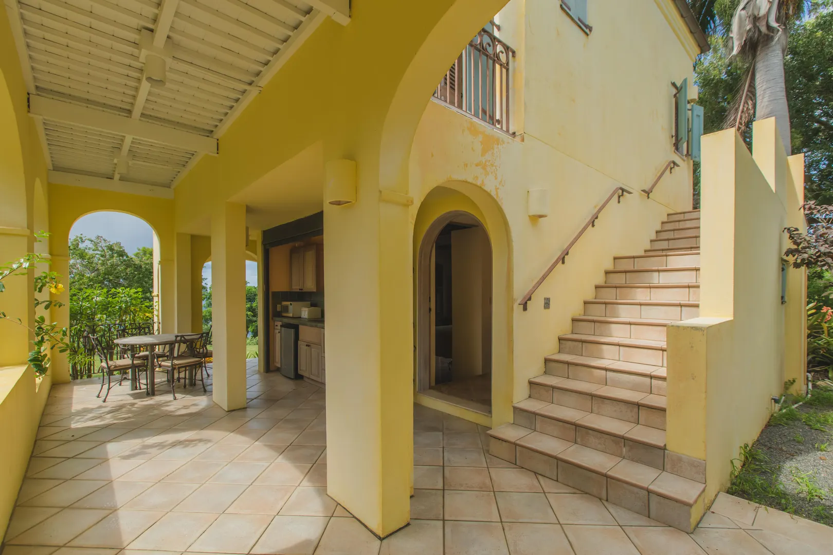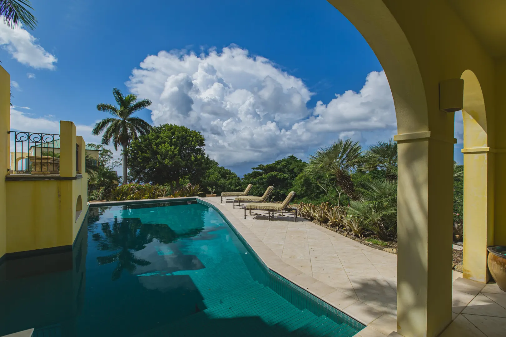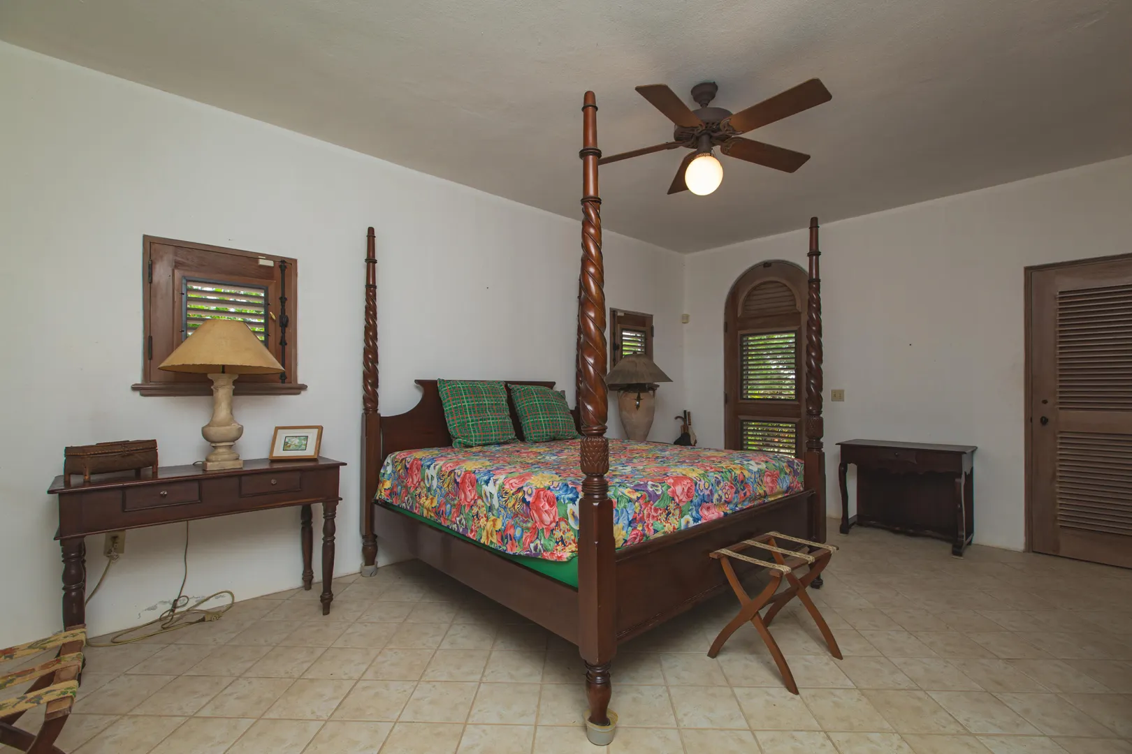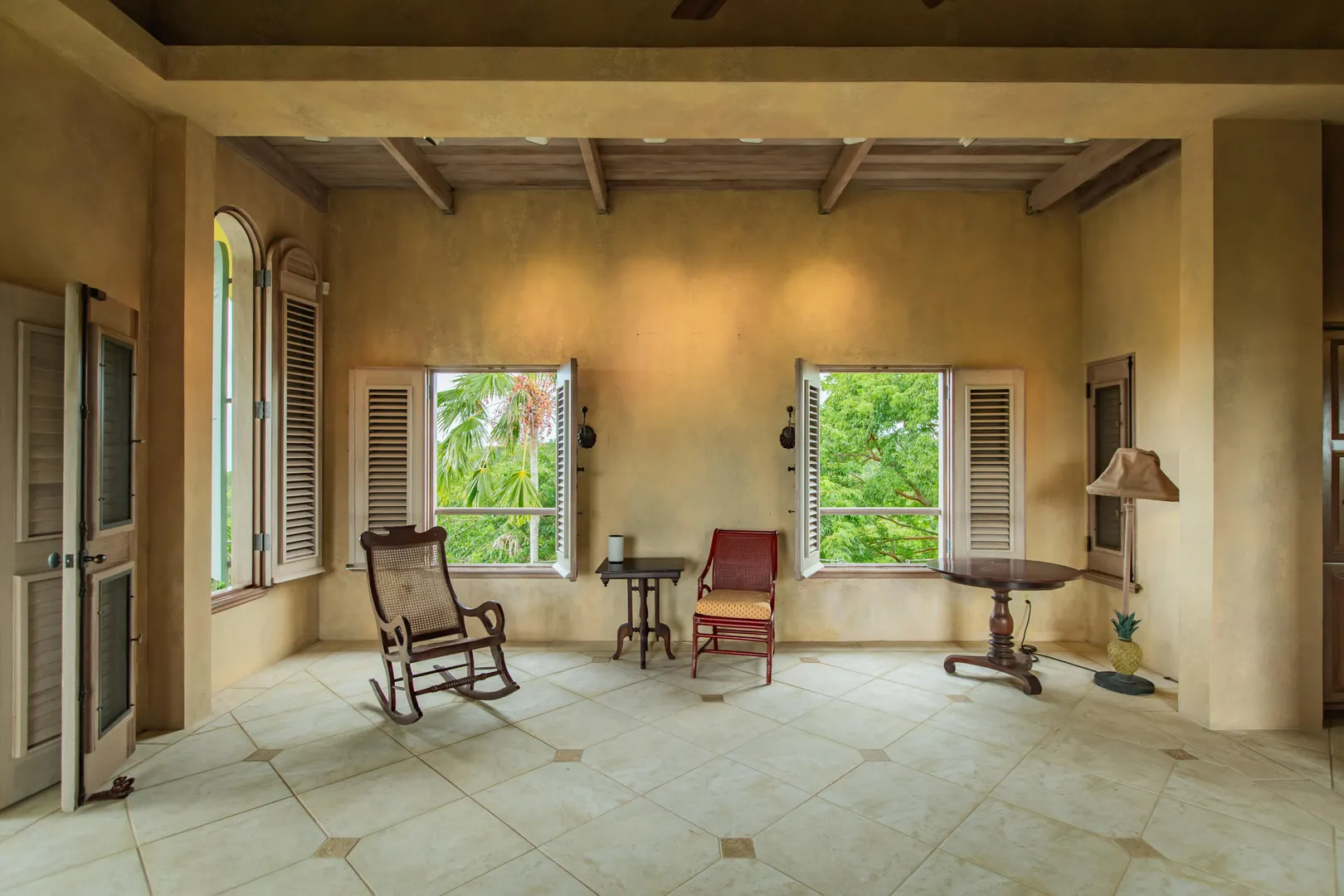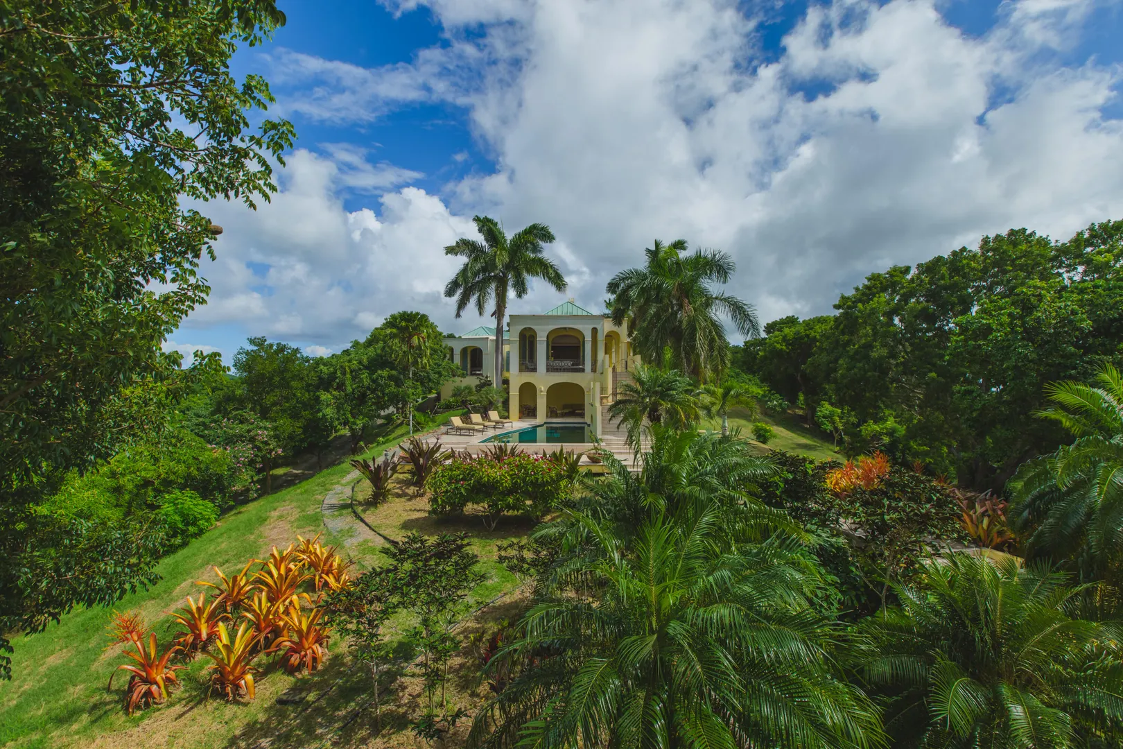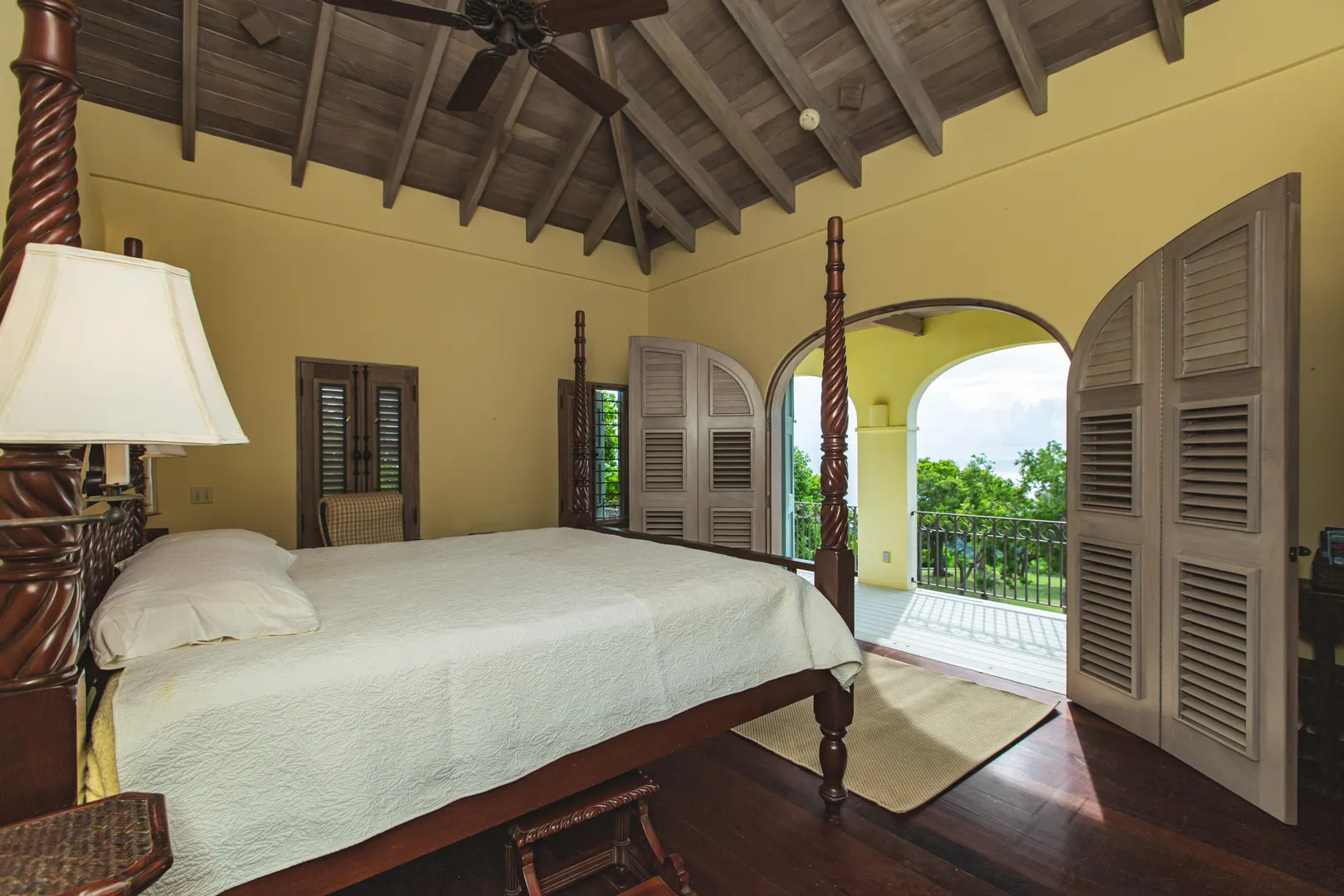 Perched at an elevation of 660 feet on the exclusive, gated roads of Washington Hill, this exquisite estate epitomizes timeless craftsmanship and offers unparalleled ocean views, encompassing Frederiksted pier, Puerto Rico, Vieques, and Culebra.Designed by the esteemed George Hascup, former Director of Design at Cornell University's School of Architecture, this remarkable residence was constructed between 1997 and 2000. It features a robust exterior of poured, steel-reinforced concrete and elegant cement block interiors, all set upon over 8 expansive hilltop acres. Every element of woodwork, from the grand four-poster beds to the gracefully arched windows and doors, is crafted from luxurious mahogany, culminating in a breathtaking mahogany cathedral ceiling.The exquisite millwork and treated metal finishes were all installed by Walsh Metal Works.