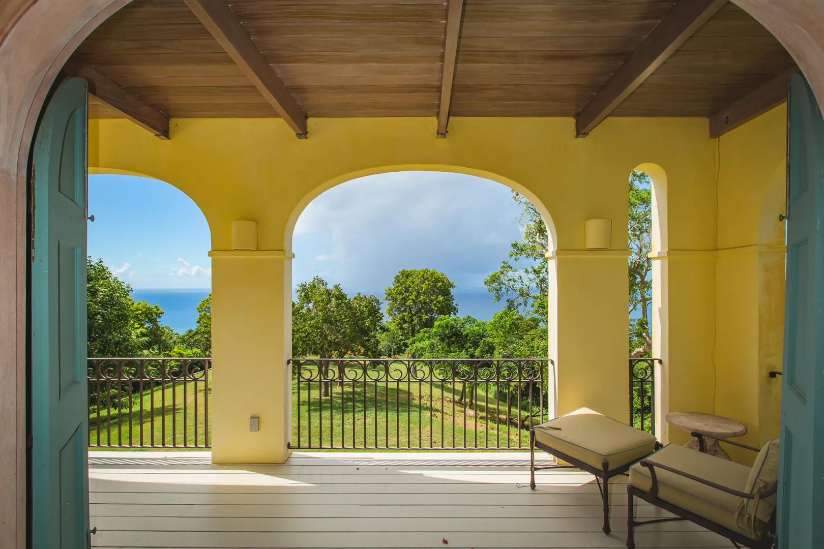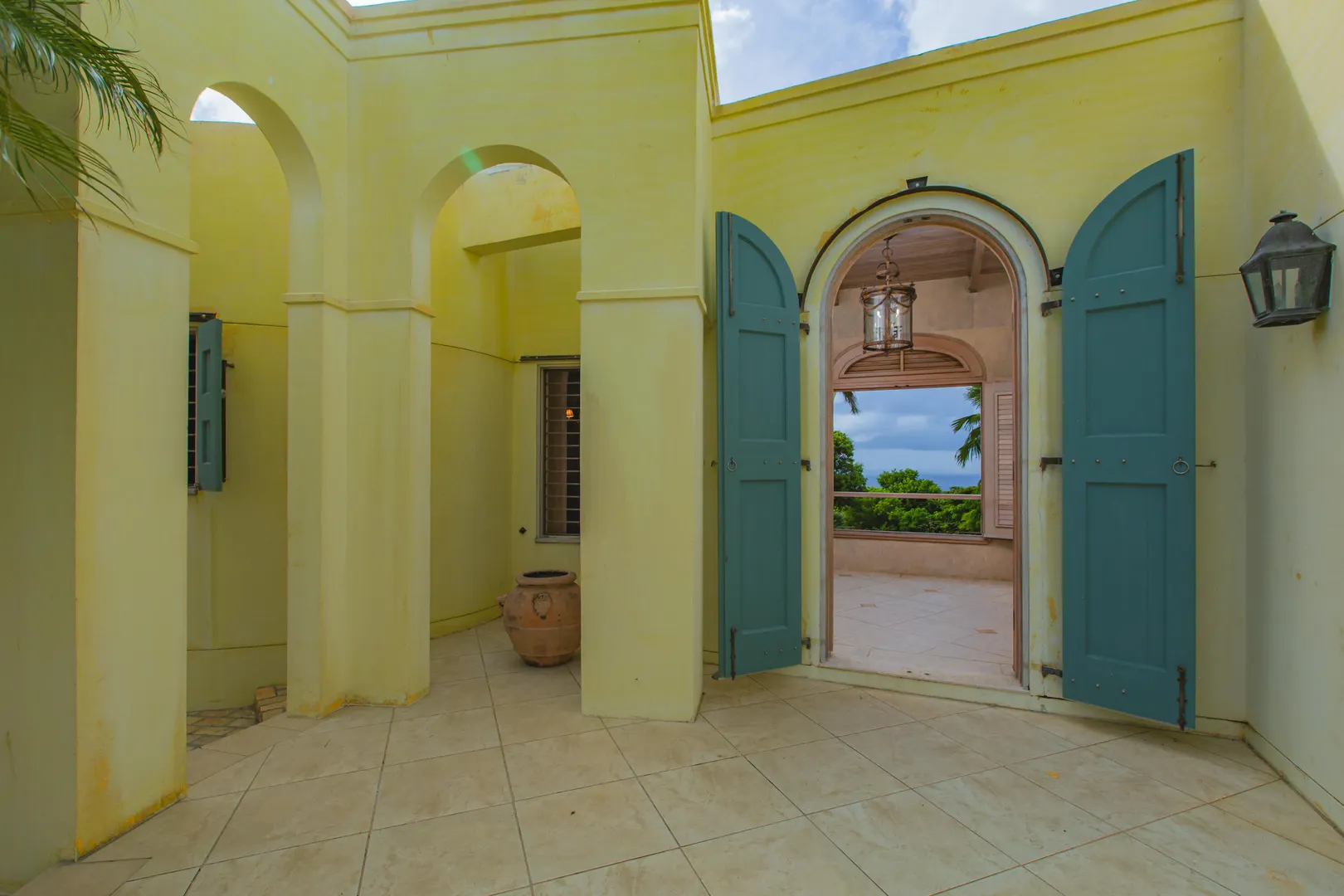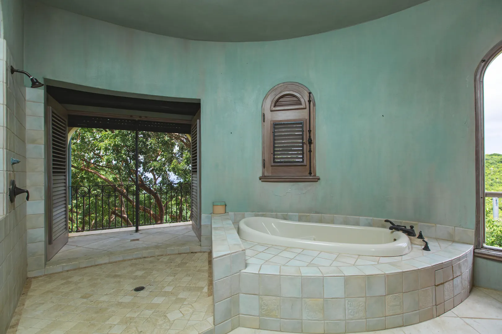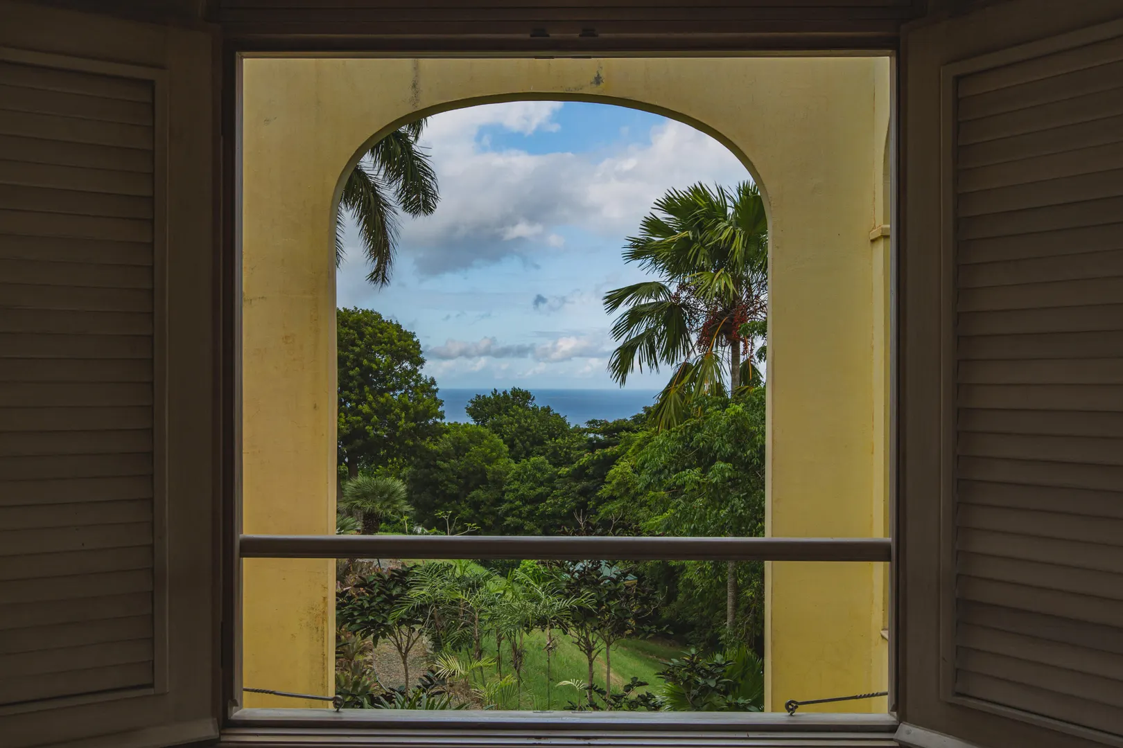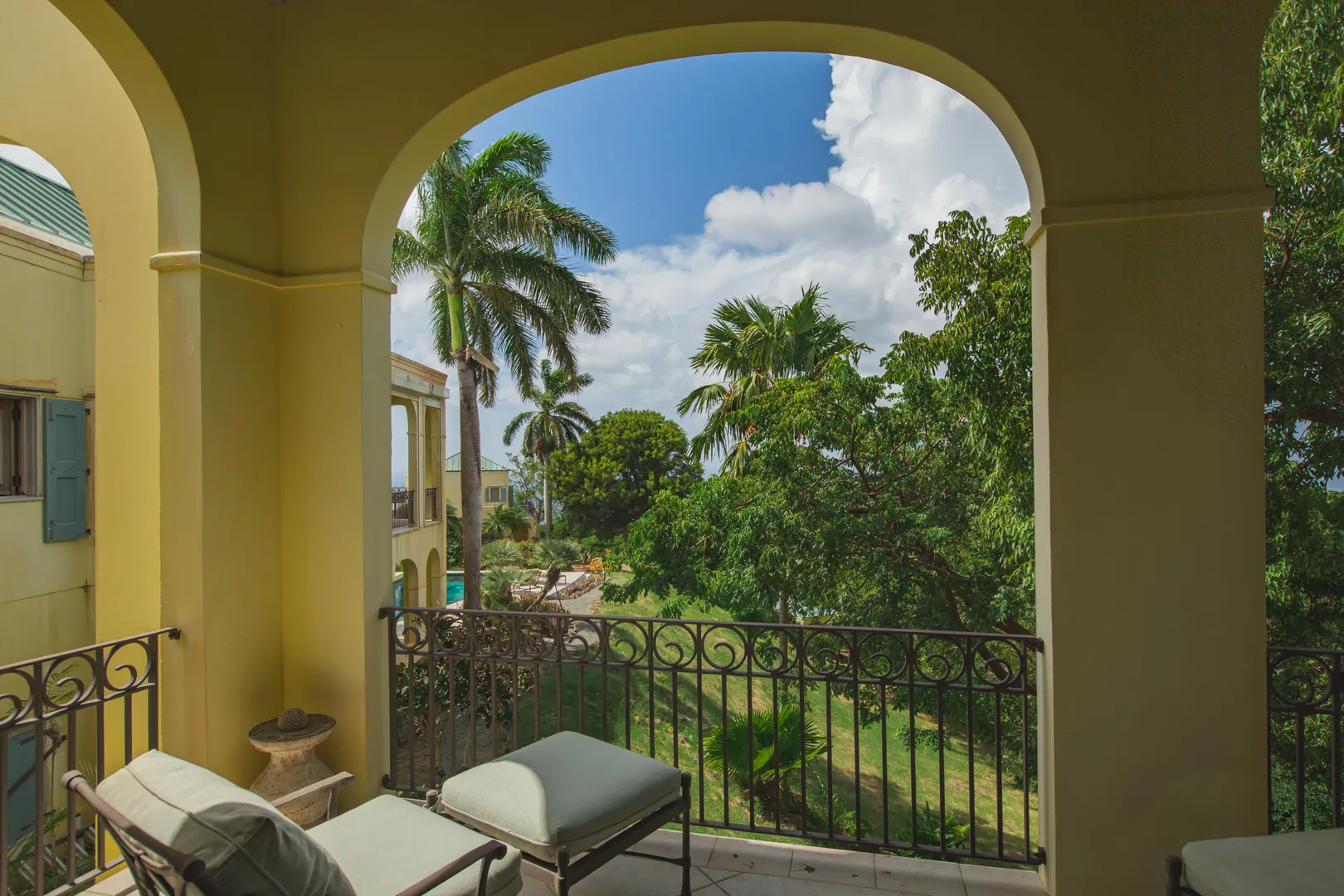 Perched at an elevation of 660 feet on the exclusive, gated roads of Washington Hill, this exquisite estate epitomizes timeless craftsmanship and offers unparalleled ocean views, encompassing Frederiksted pier, Puerto Rico, Vieques, and Culebra.Designed by the esteemed George Hascup, former Director of Design at Cornell University's School of Architecture, this remarkable residence was constructed between 1997 and 2000. It features a robust exterior of poured, steel-reinforced concrete and elegant cement block interiors, all set upon over 8 expansive hilltop acres. Every element of woodwork, from the grand four-poster beds to the gracefully arched windows and doors, is crafted from luxurious mahogany, culminating in a breathtaking mahogany cathedral ceiling.The exquisite millwork and treated metal finishes were all installed by Walsh Metal Works.
