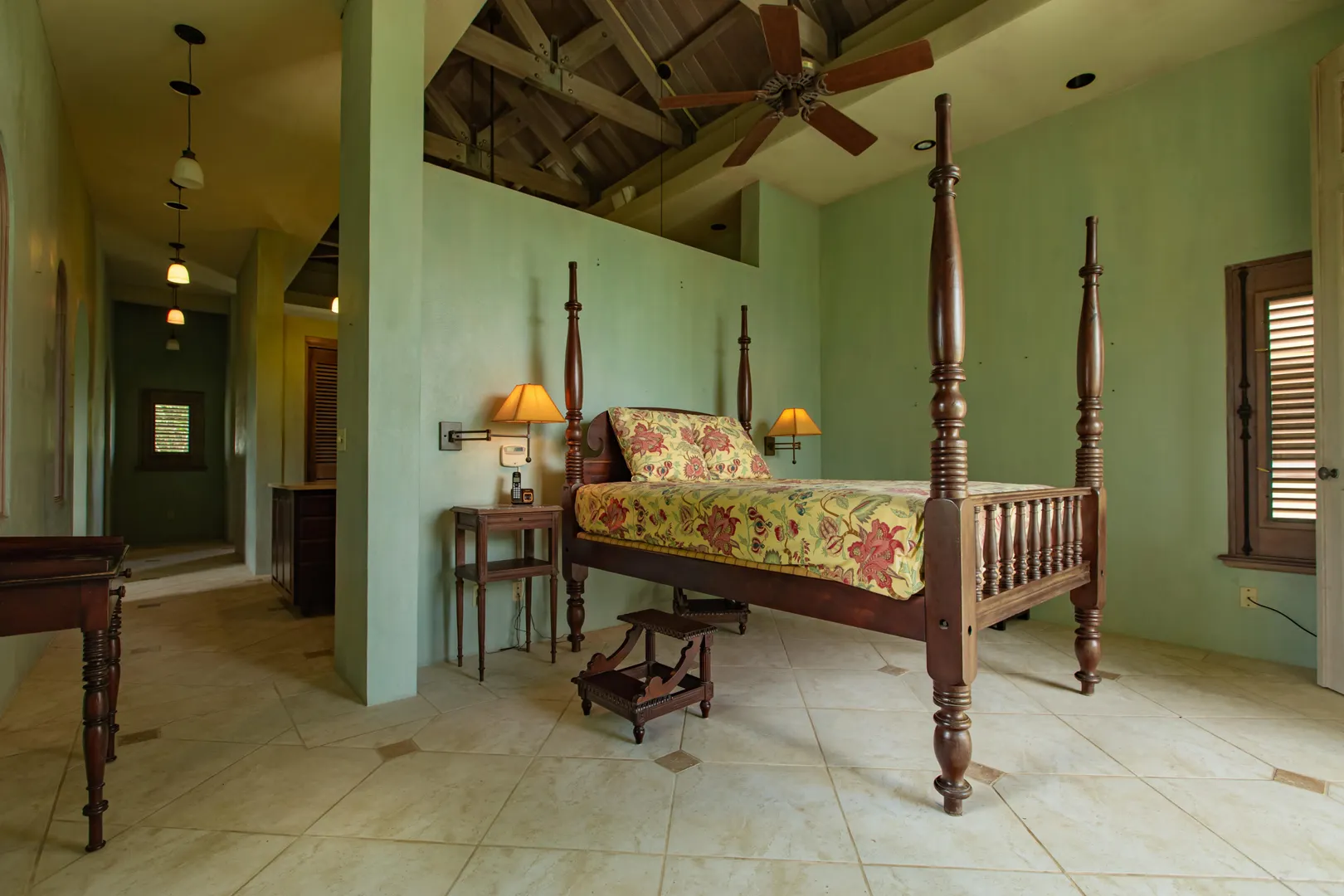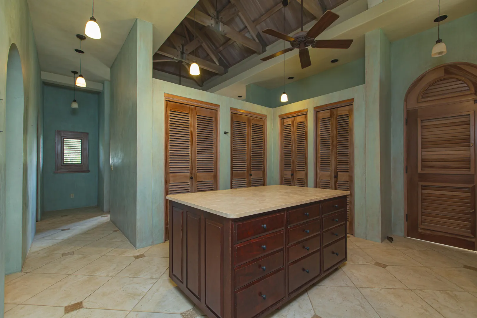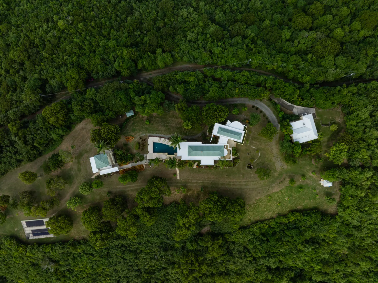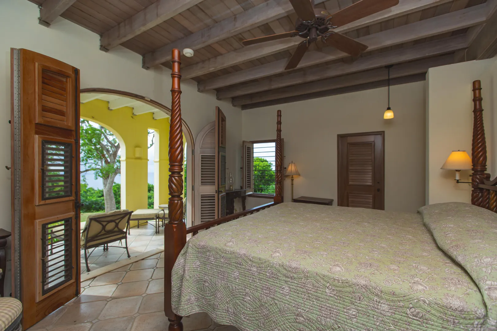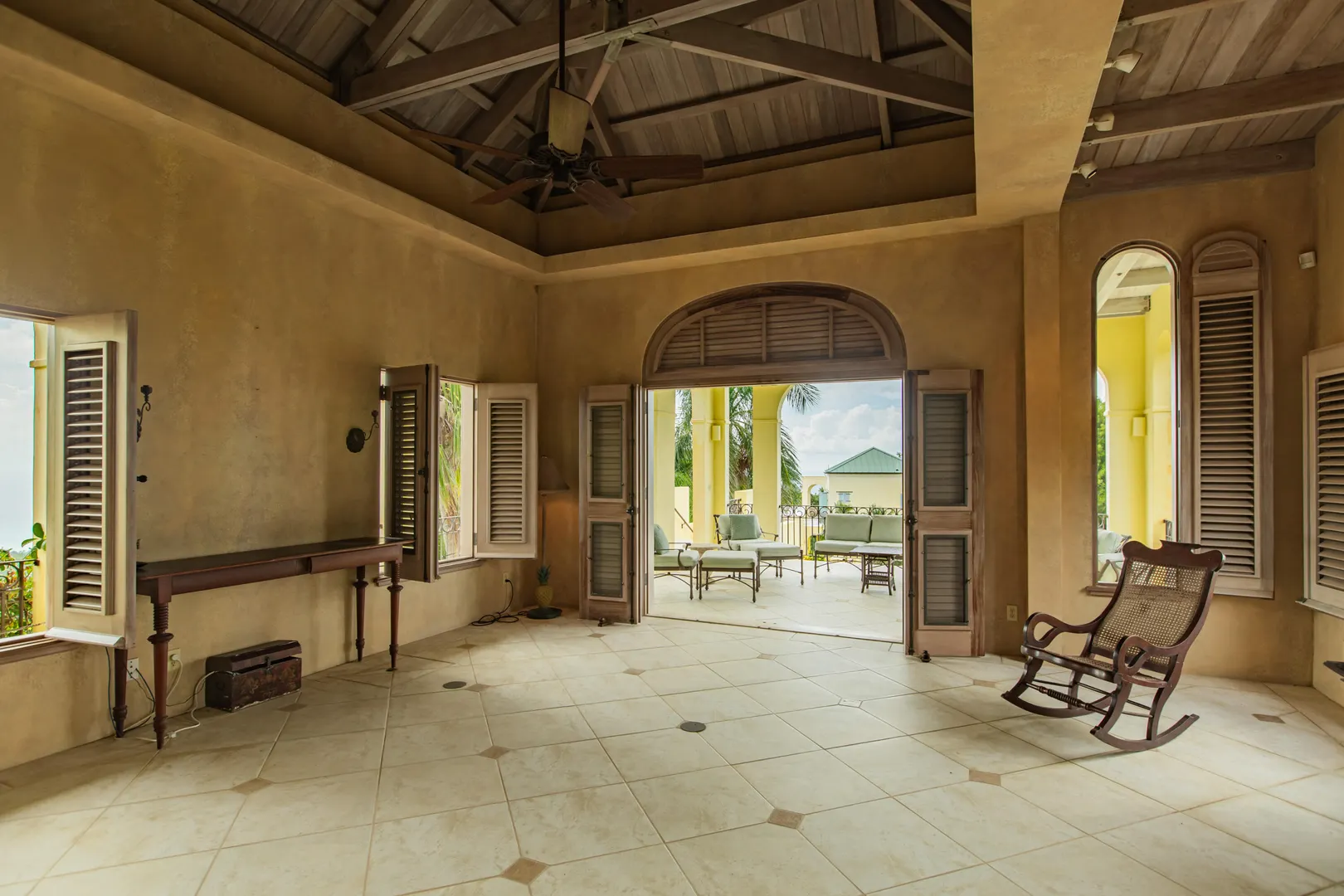 Perched at an elevation of 660 feet on the exclusive, gated roads of Washington Hill, this exquisite estate epitomizes timeless craftsmanship and offers unparalleled ocean views, encompassing Frederiksted pier, Puerto Rico, Vieques, and Culebra.Designed by the esteemed George Hascup, former Director of Design at Cornell University's School of Architecture, this remarkable residence was constructed between 1997 and 2000. It features a robust exterior of poured, steel-reinforced concrete and elegant cement block interiors, all set upon over 8 expansive hilltop acres. Every element of woodwork, from the grand four-poster beds to the gracefully arched windows and doors, is crafted from luxurious mahogany, culminating in a breathtaking mahogany cathedral ceiling.The exquisite millwork and treated metal finishes were all installed by Walsh Metal Works.