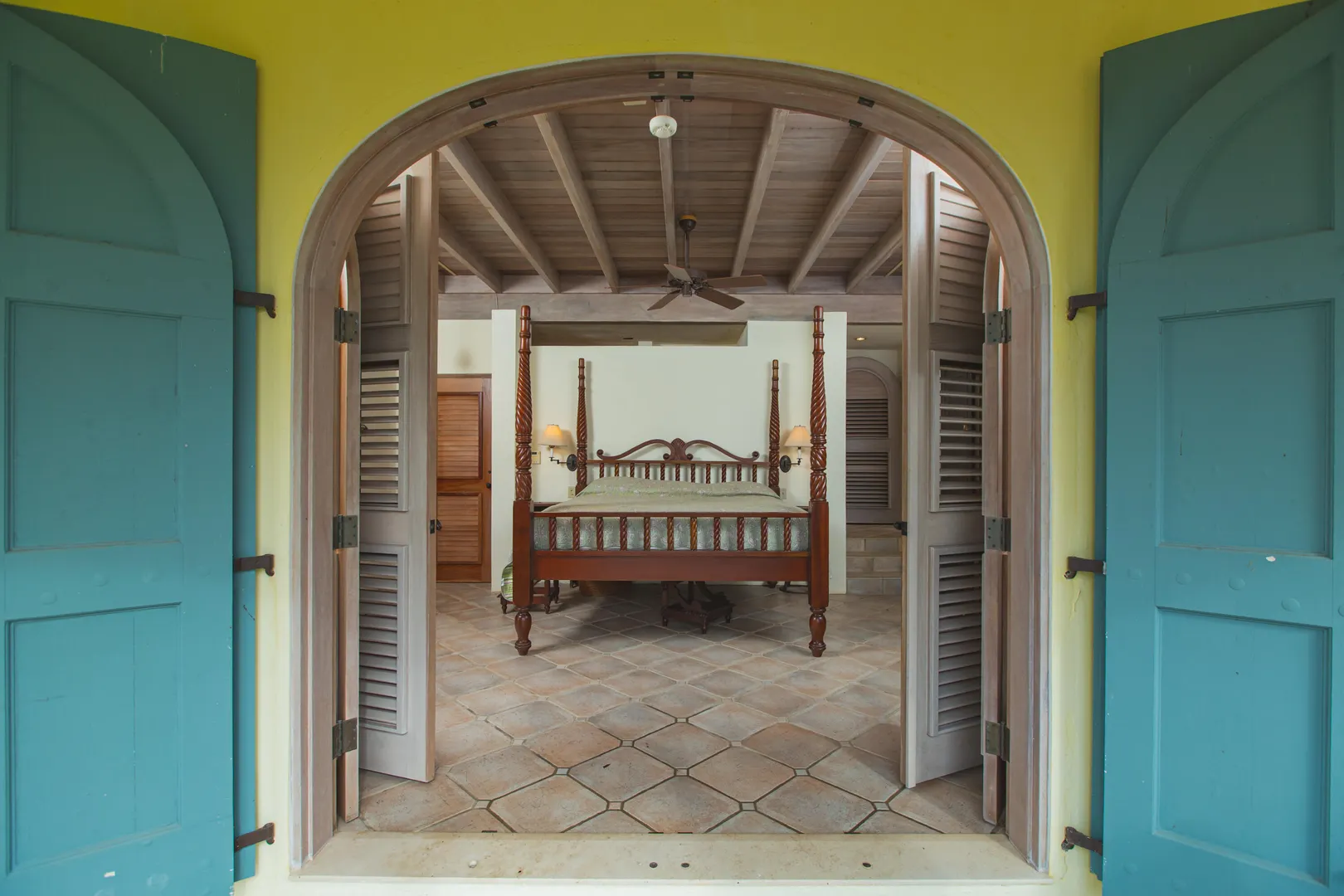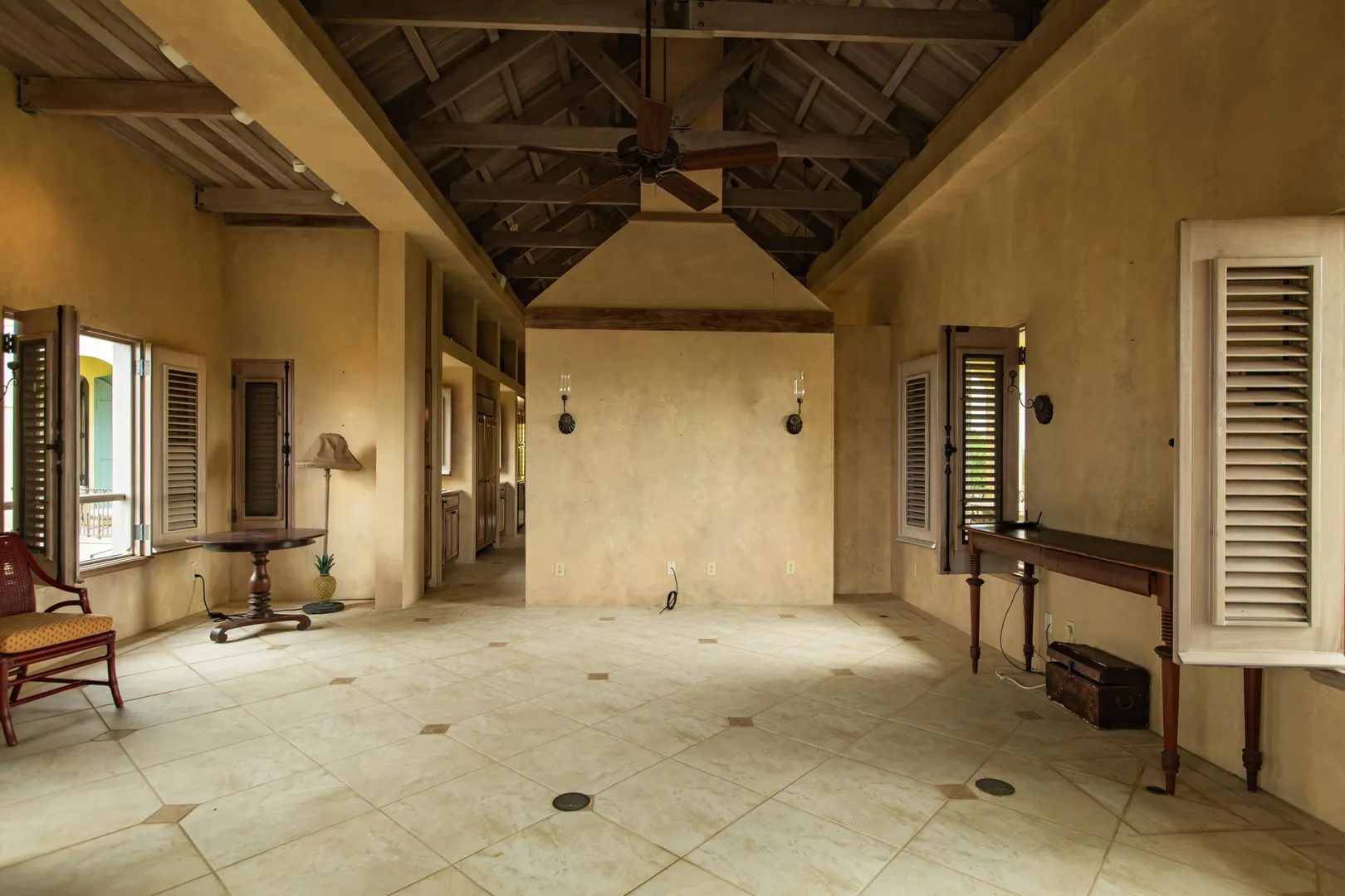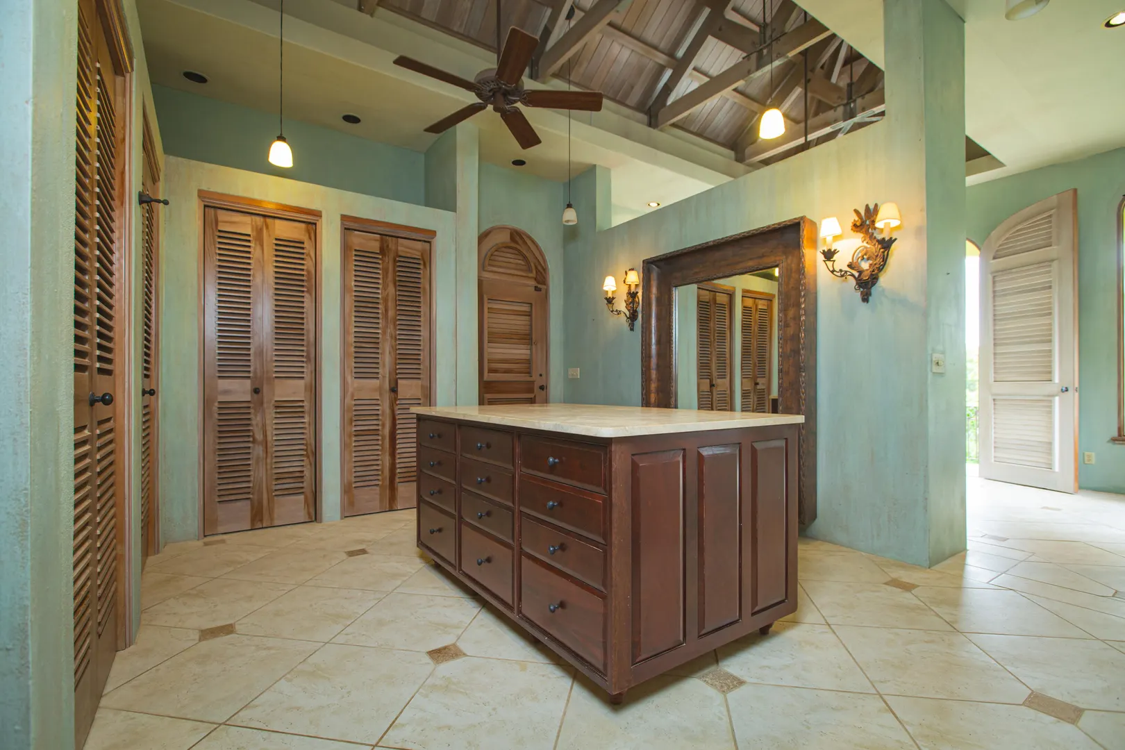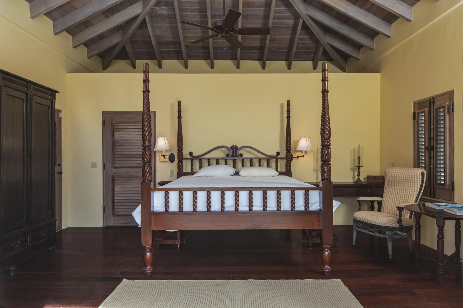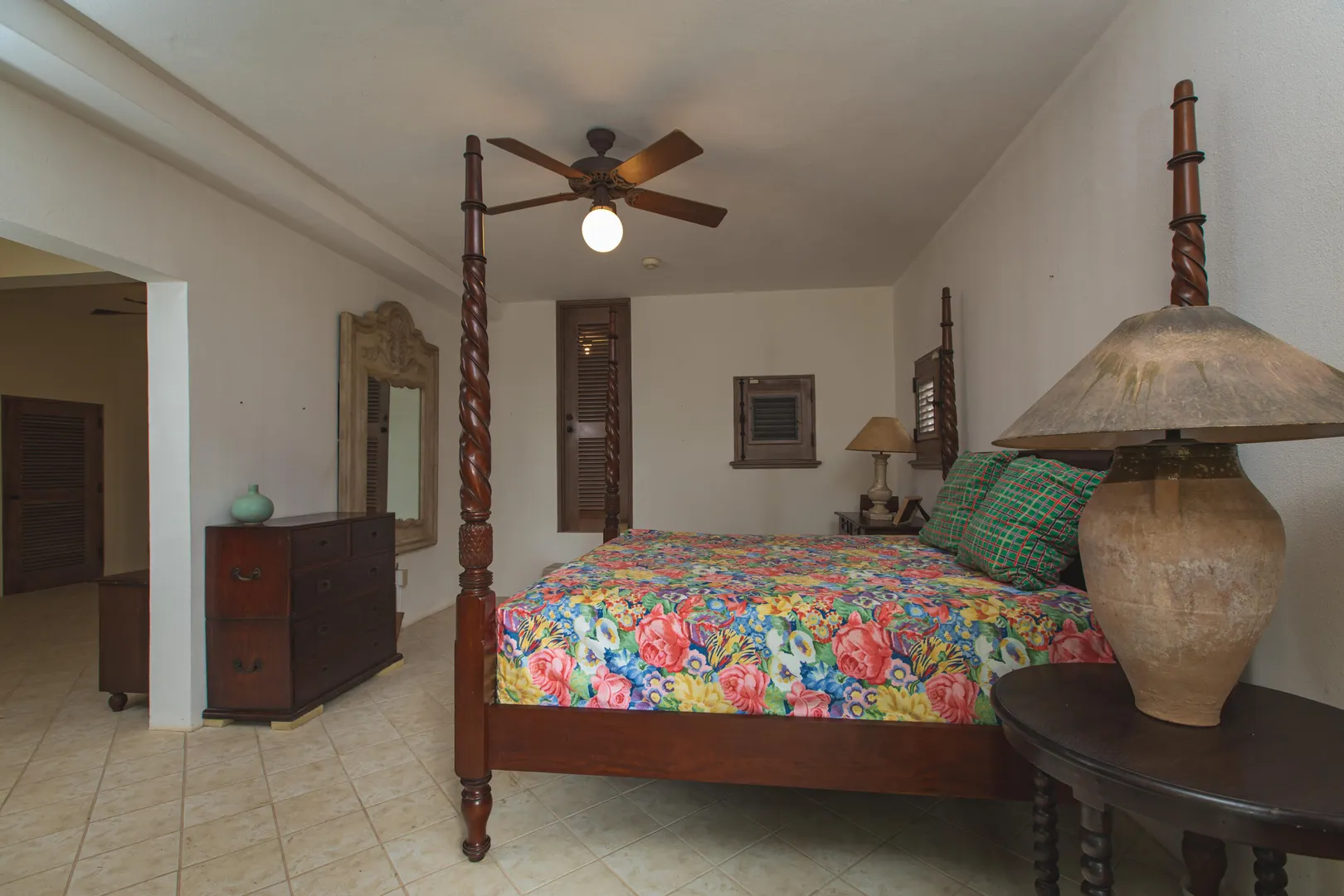 Perched at an elevation of 660 feet on the exclusive, gated roads of Washington Hill, this exquisite estate epitomizes timeless craftsmanship and offers unparalleled ocean views, encompassing Frederiksted pier, Puerto Rico, Vieques, and Culebra.Designed by the esteemed George Hascup, former Director of Design at Cornell University's School of Architecture, this remarkable residence was constructed between 1997 and 2000. It features a robust exterior of poured, steel-reinforced concrete and elegant cement block interiors, all set upon over 8 expansive hilltop acres. Every element of woodwork, from the grand four-poster beds to the gracefully arched windows and doors, is crafted from luxurious mahogany, culminating in a breathtaking mahogany cathedral ceiling.The exquisite millwork and treated metal finishes were all installed by Walsh Metal Works.